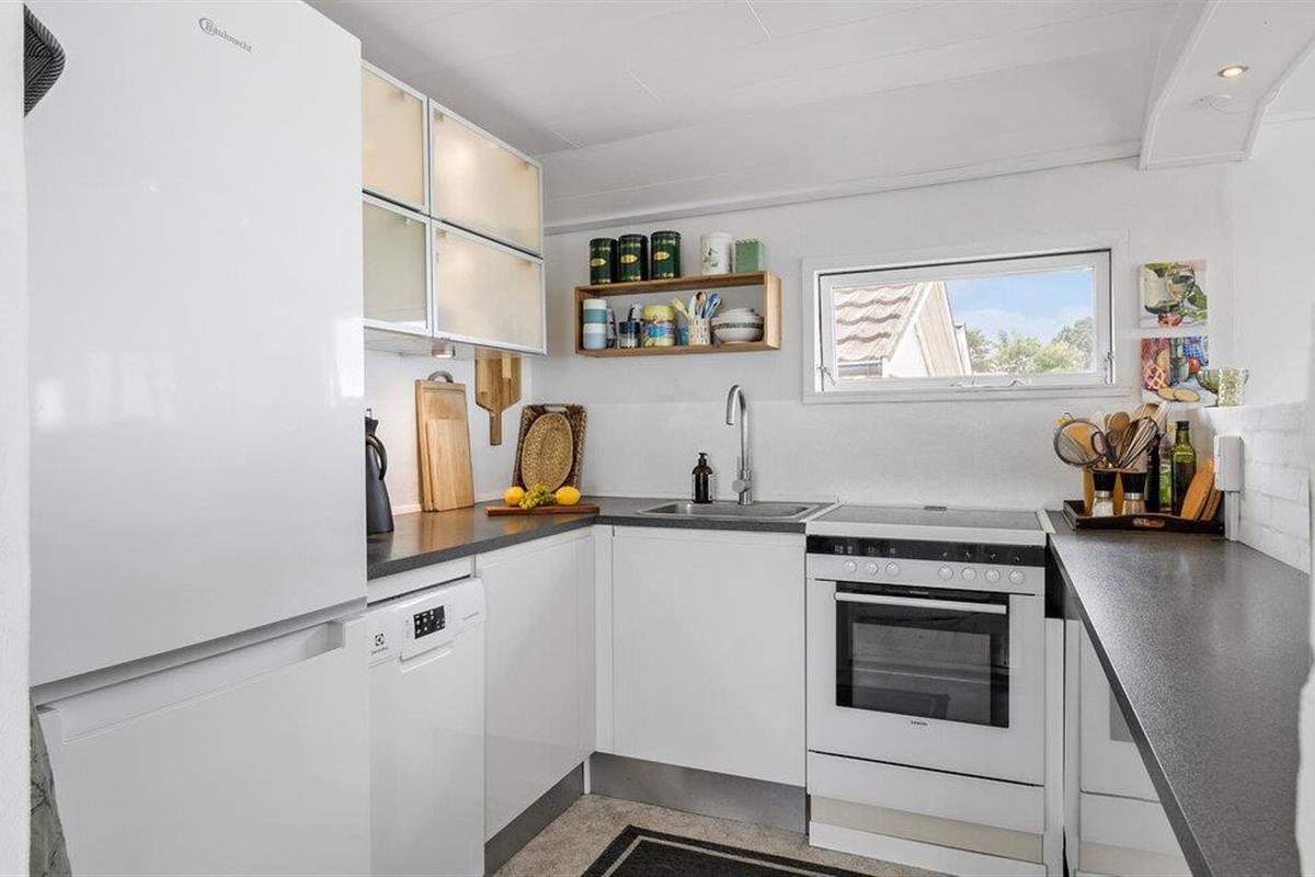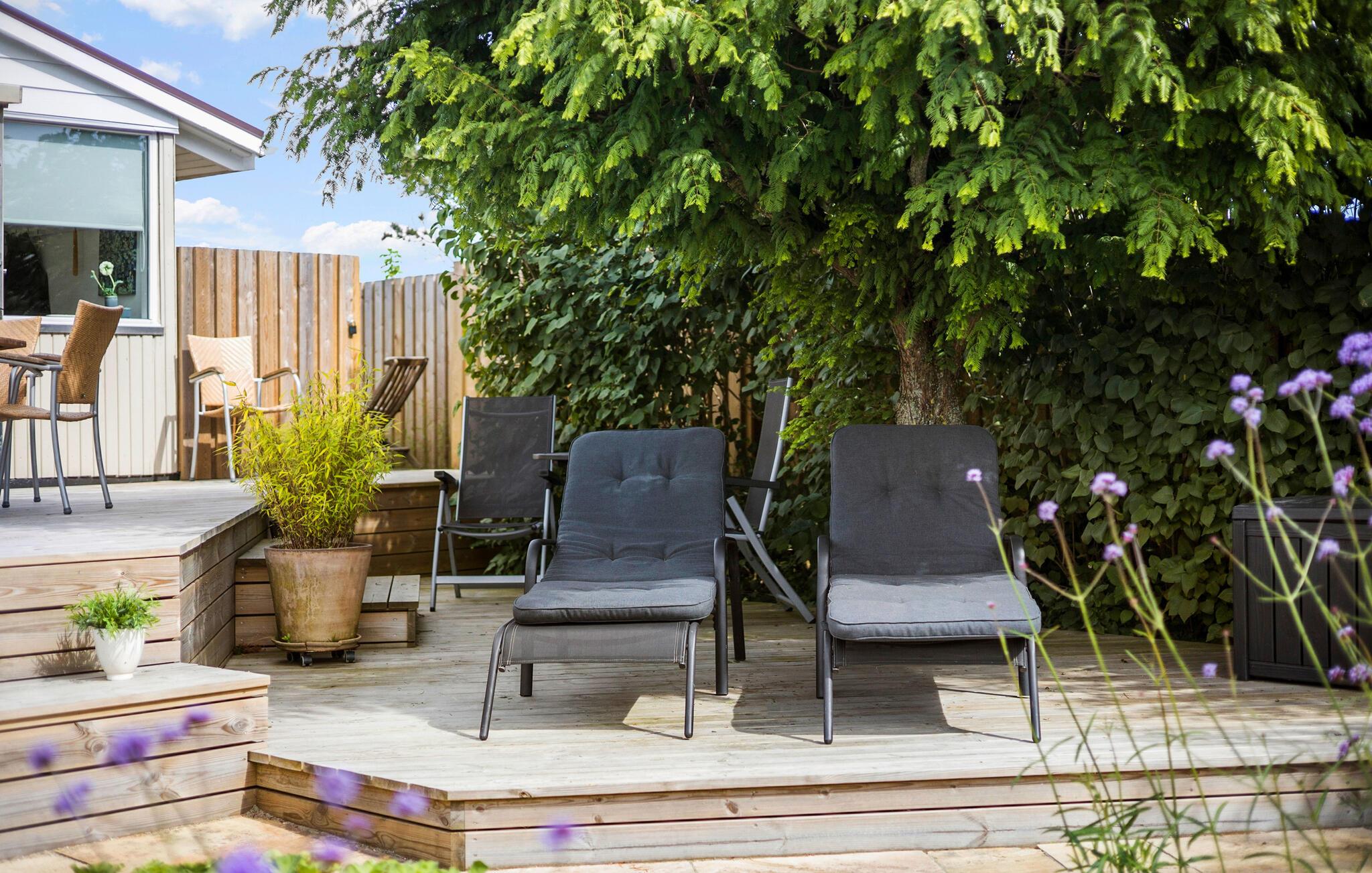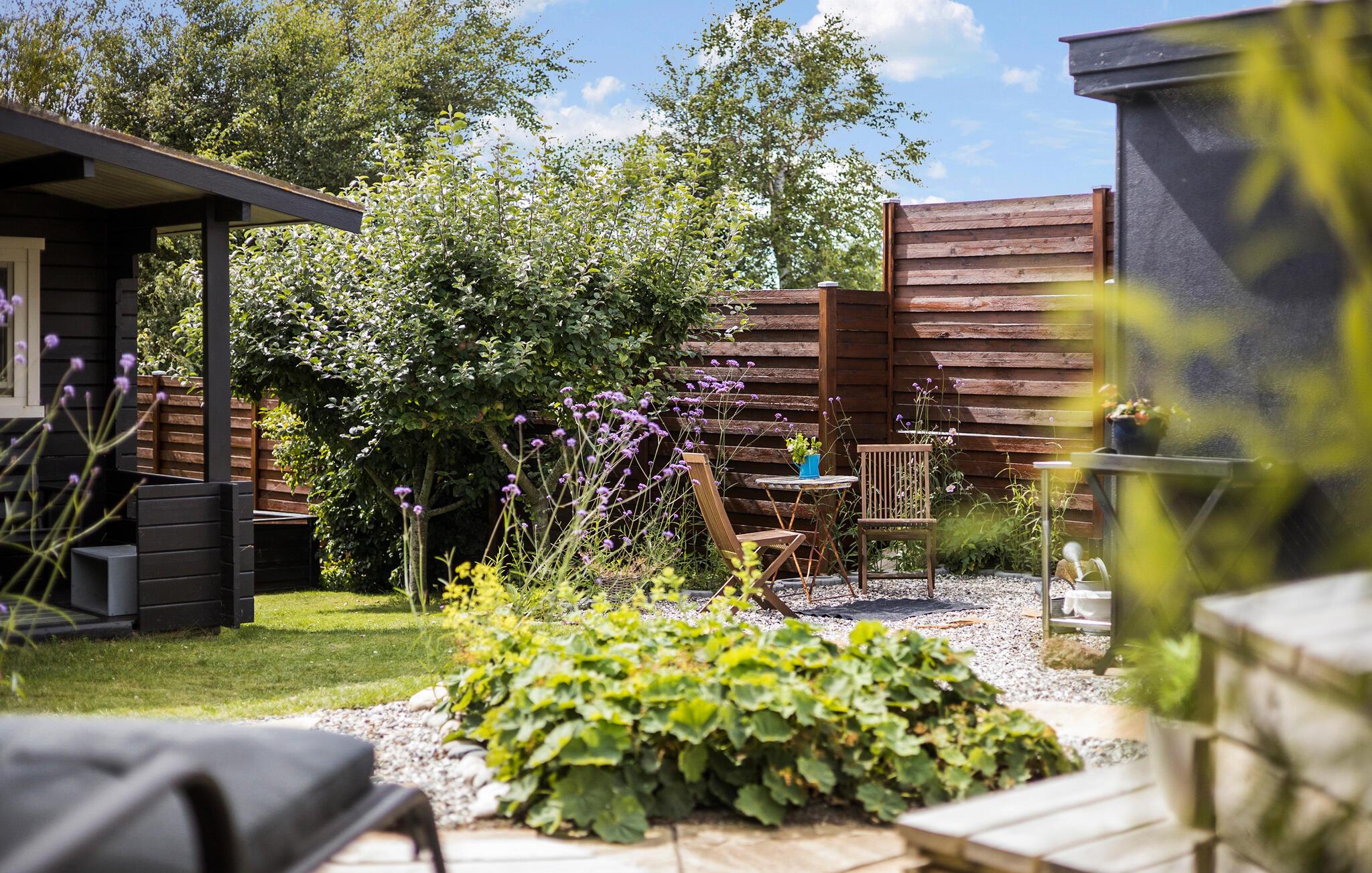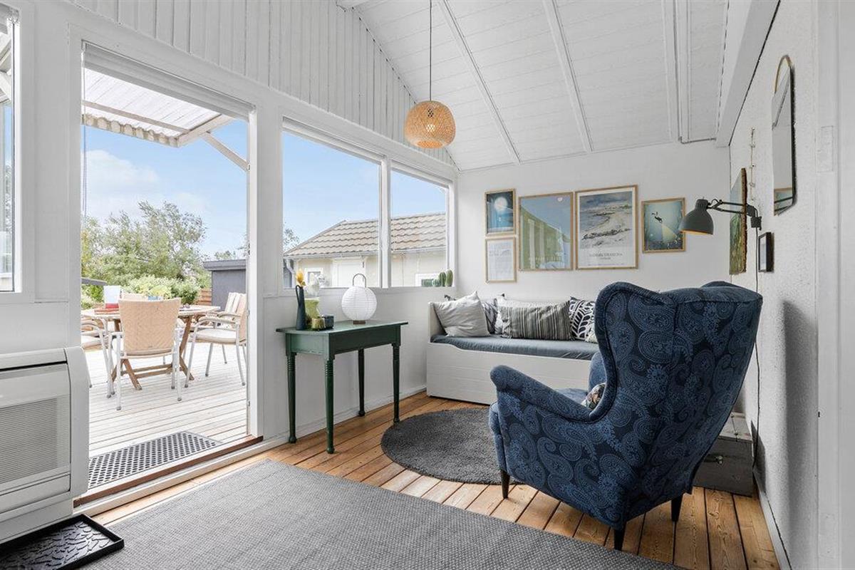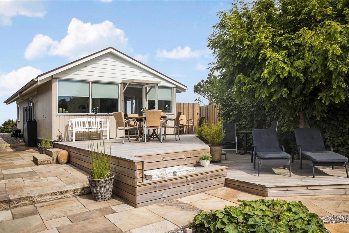 Geniet van een idyllisch vakantiehuis direct aan het strand van Hasmark met panoramisch zeezicht en een privé tuin.