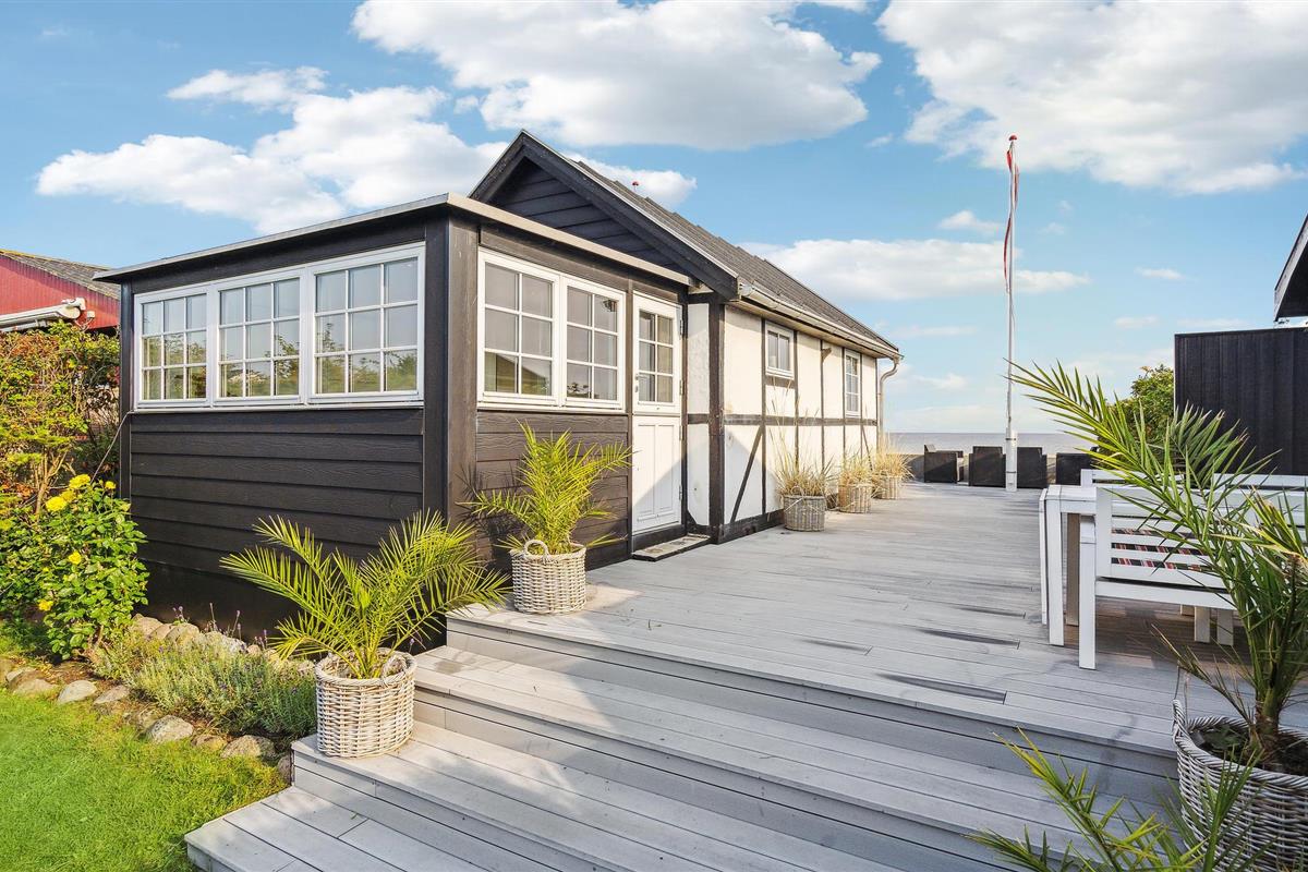 Geniet van een charmant vakantiehuis aan Hasmark Strand met prachtig uitzicht op zee en comfortabele voorzieningen.