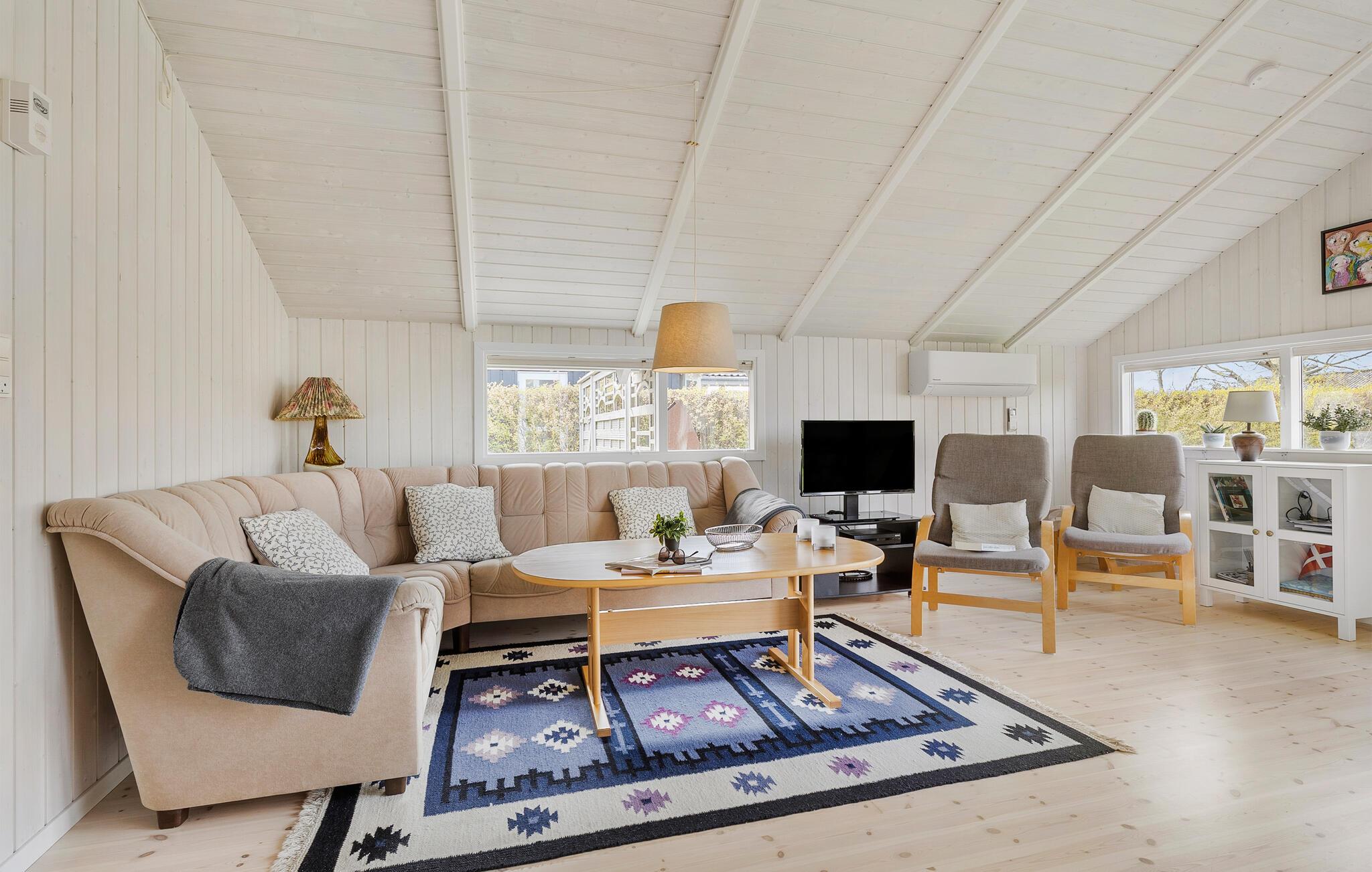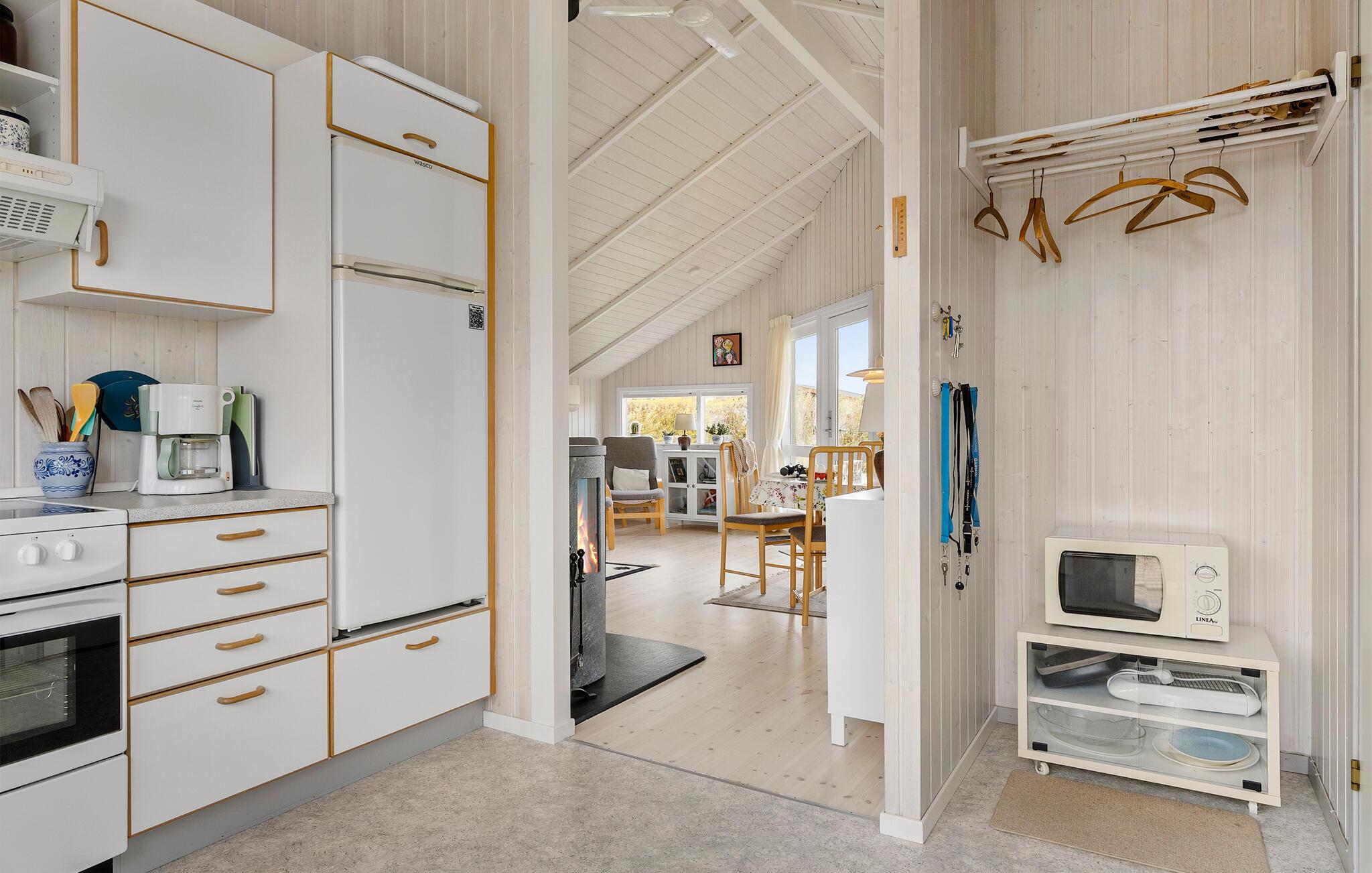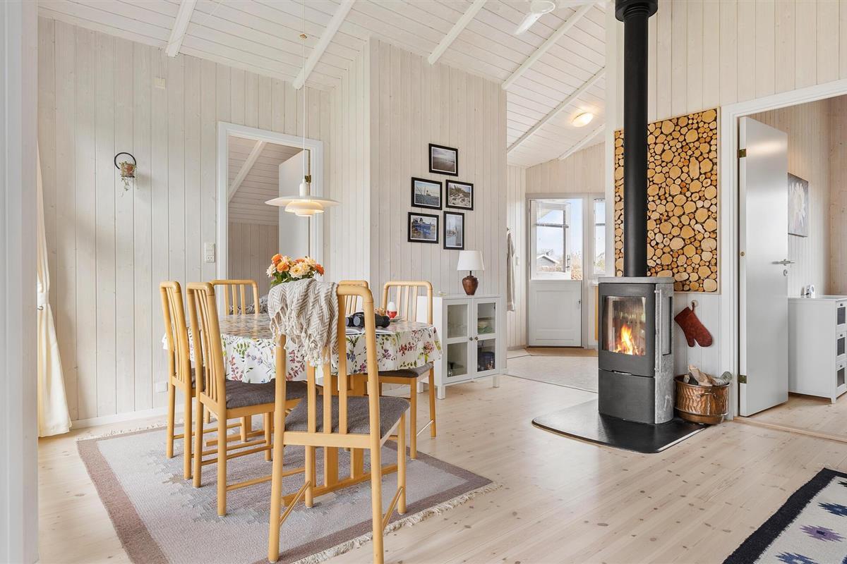 Dit charmante vakantiehuis bij Hasmark Strand biedt een lichte inrichting, houtkachel en direct toegang tot een kindvriendelijk strand.