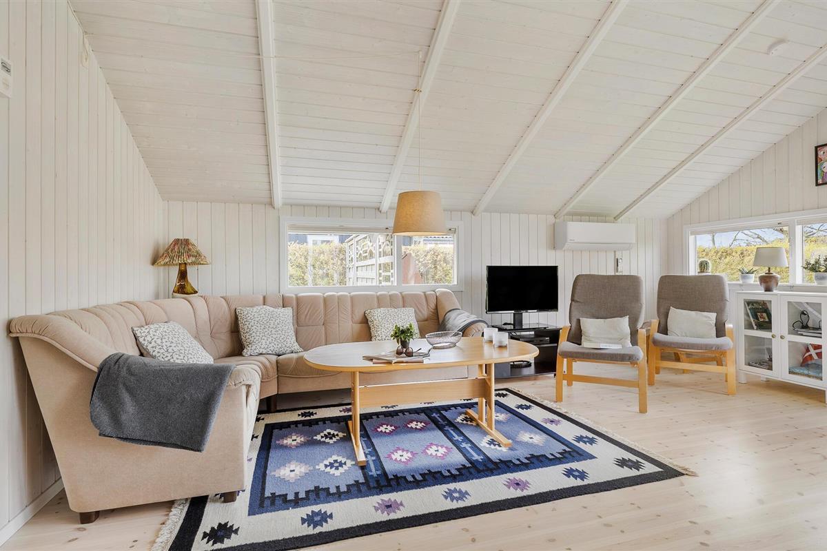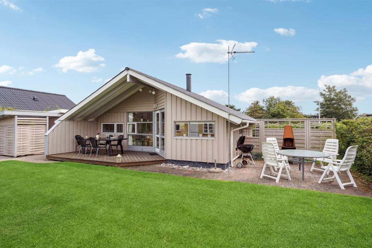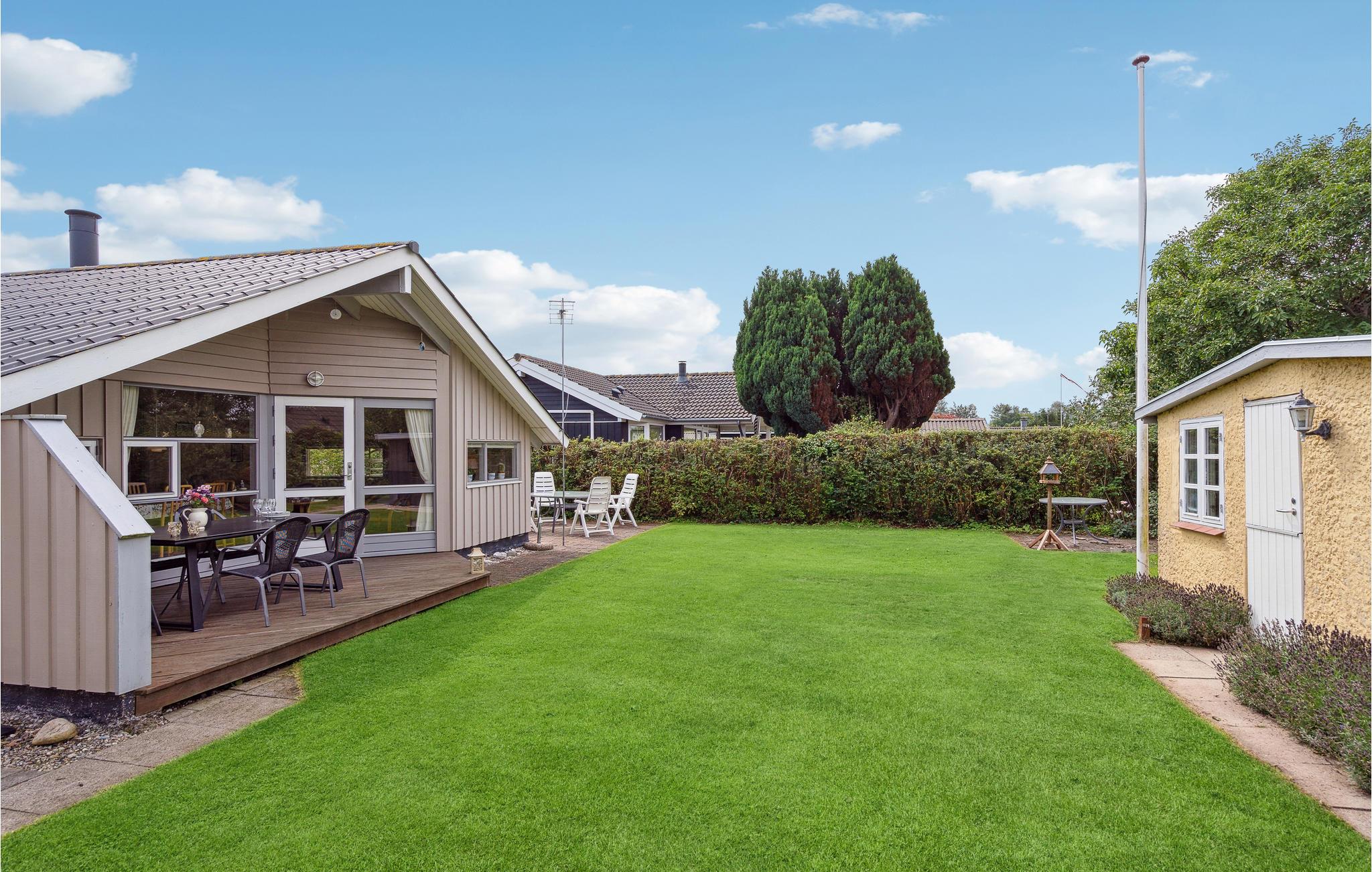 Dit charmante vakantiehuis bij Hasmark Strand biedt een lichte inrichting, houtkachel en direct toegang tot een kindvriendelijk strand.