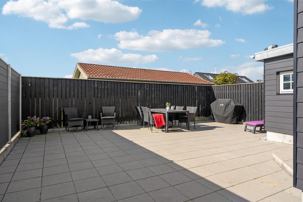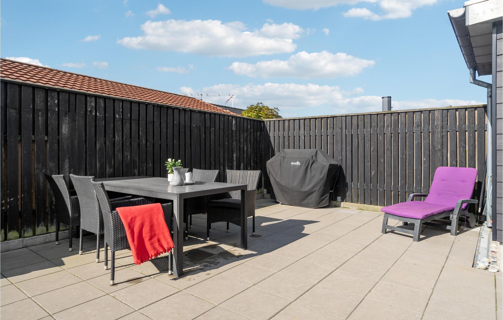 Modern vakantiehuis in tweede rij van Hasmark strand met omheinde tuin en moderne faciliteiten.