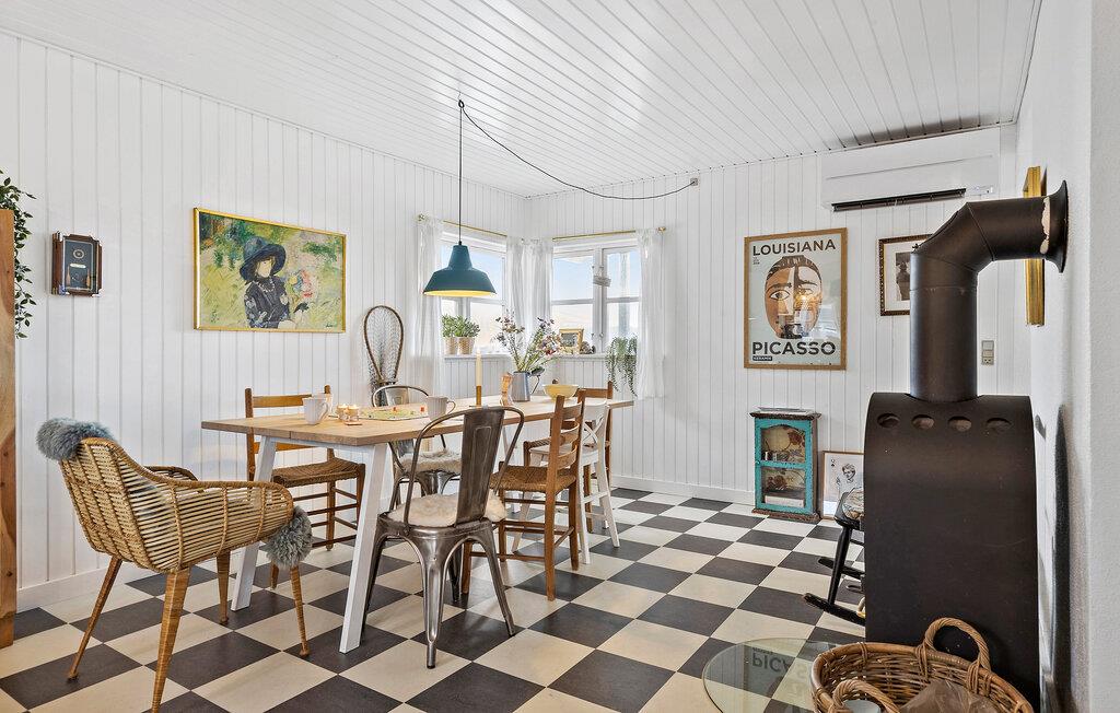 Dit huis ligt op slechts een steenworp afstand van het populaire Hasmark-strand op Noord-Funen en biedt de ideale omgeving voor een ontspannen vakantie met familie of vrienden. Het smaakvol ingerichte vakantiehuis nodigt je uit om te vertoeven in de lichte kamers en de gezellige woonkamer. Maak het jezelf gemakkelijk op de gezellige banken en geniet van het natuurlijke licht dat binnenstroomt door de grote ramen. Een houtkachel zorgt voor gezellige warmte op koelere dagen. Neem plaats aan de eettafel in de ruime keuken en geniet samen van de maaltijden. De stijlvolle mix van moderne en rustieke elementen geeft het huis een uitnodigende sfeer.