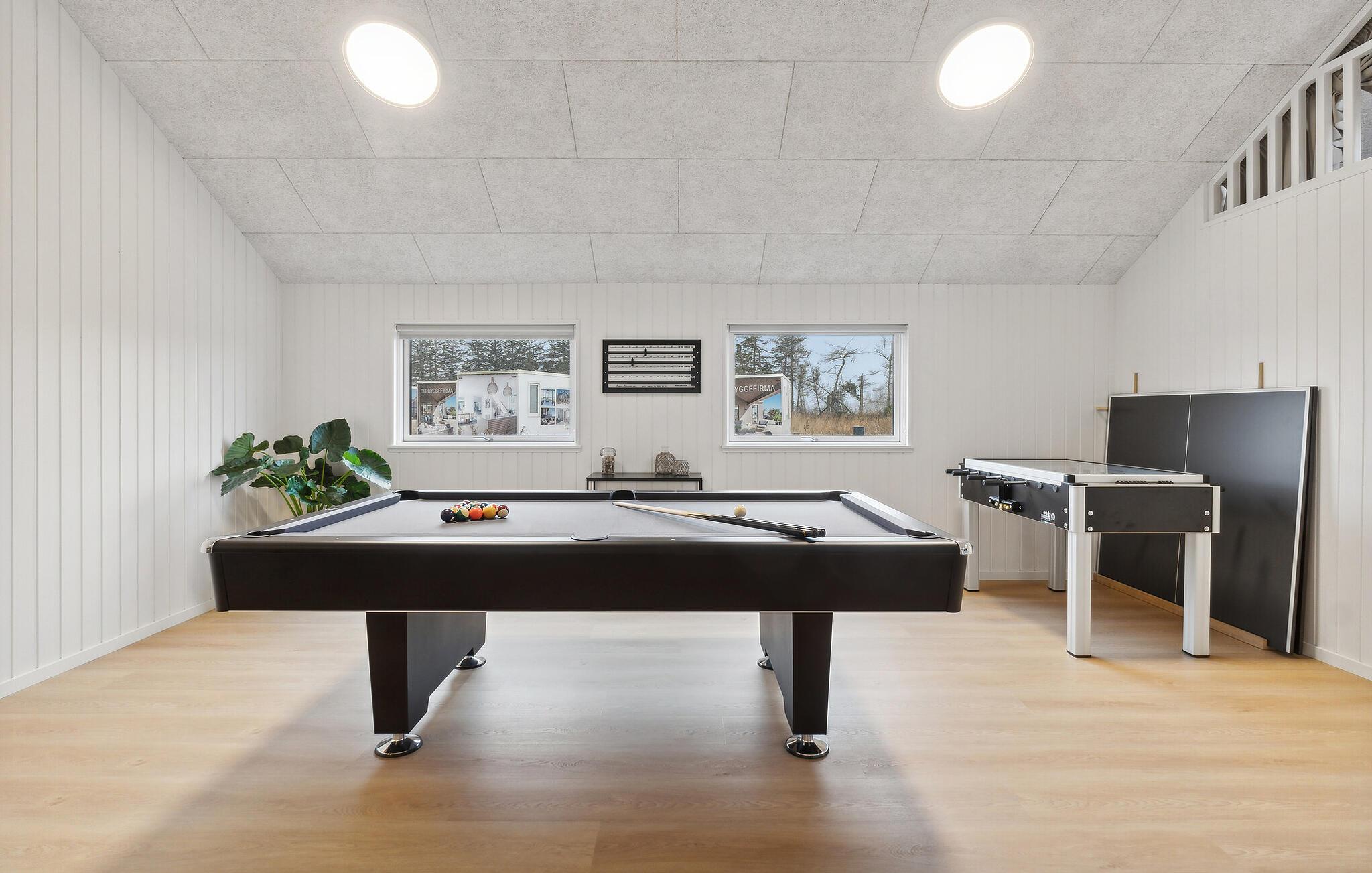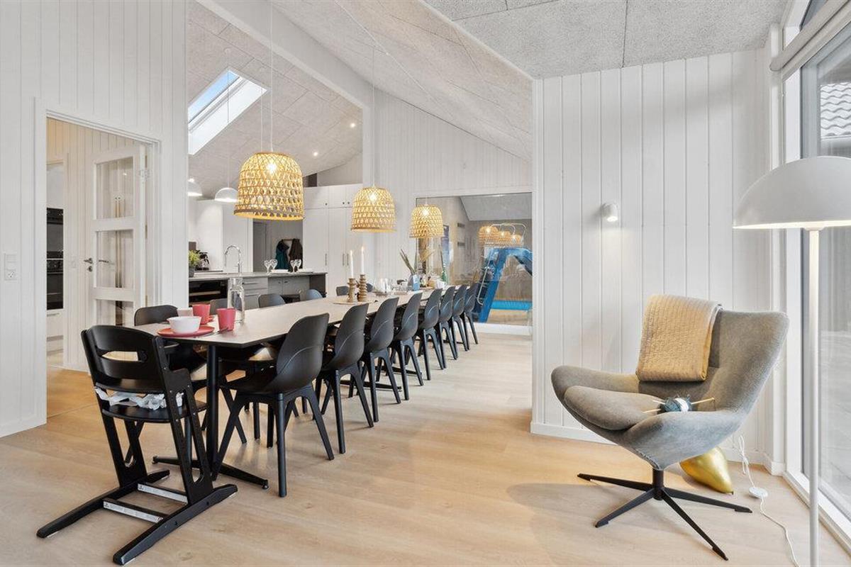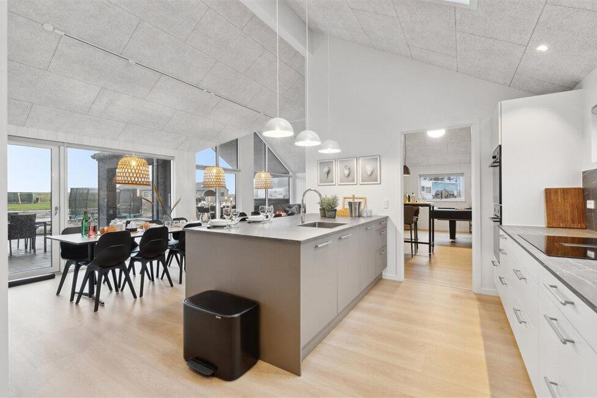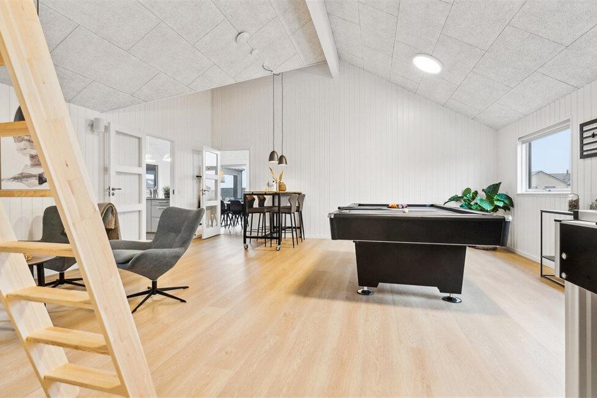 Laat je inspireren door het luxe interieur, dat van je vakantie met vrienden of uitgebreide familie een bijzondere ervaring maakt. Hier is speciale nadruk gelegd op een goed ruimtelijk concept zodat je je kunt concentreren op gedeelde ervaringen. Breng samen tijd door in het zwemgedeelte met zwembad en waterglijbaan, ontspan in de sauna of daag jezelf uit met tafeltennis, biljart of tafelvoetbal. Kook in de moderne, volledig uitgeruste keuken met veel bergruimte en geniet van je maaltijden in de ruime, lichte eethoek.