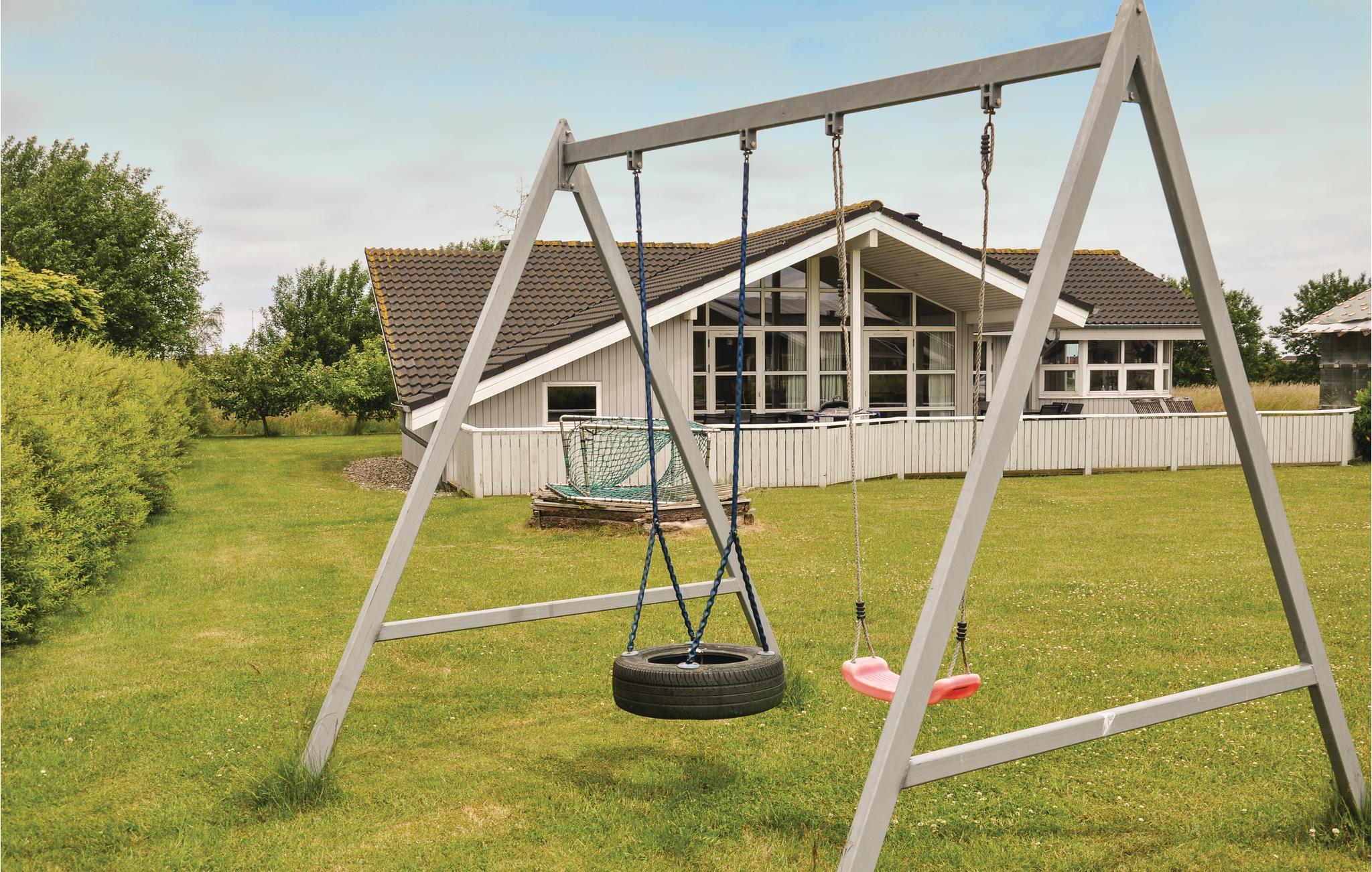Modern houten vakantiehuis nabij Hasmark Strand met sauna, whirlpool en ruime tuin, ideaal voor gezinnen en rustzoekers.