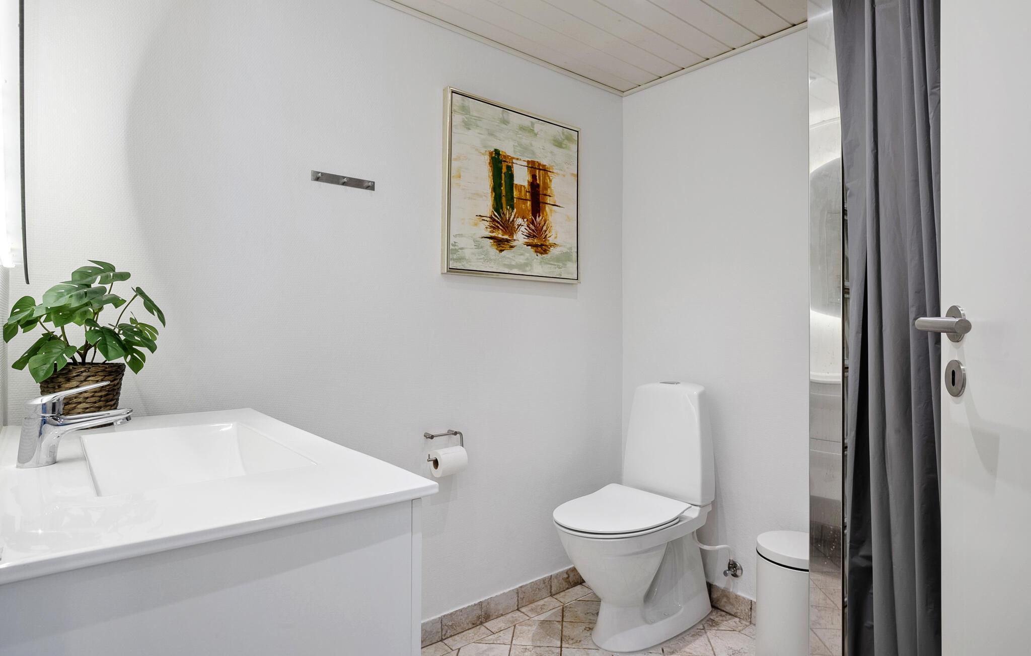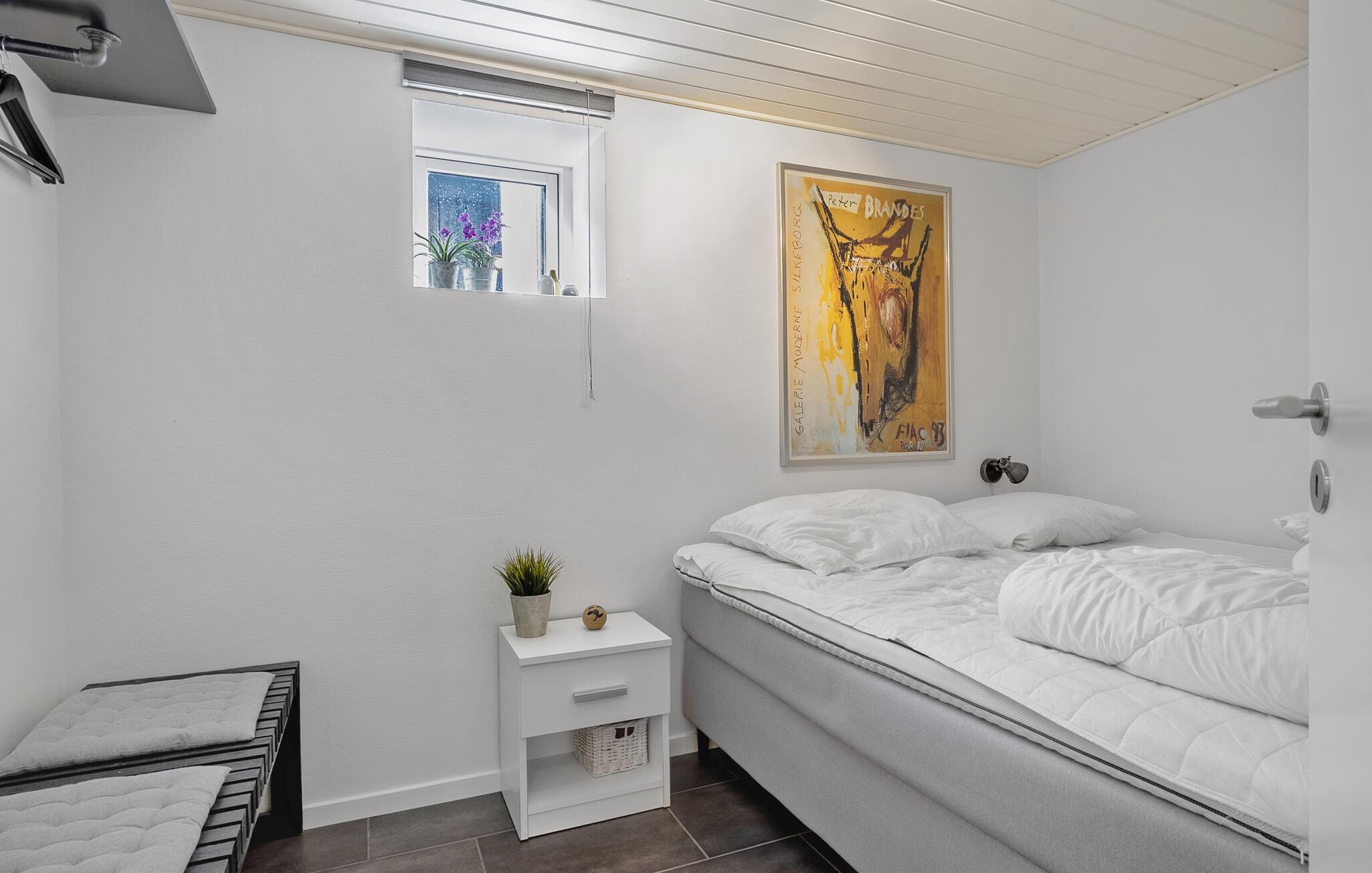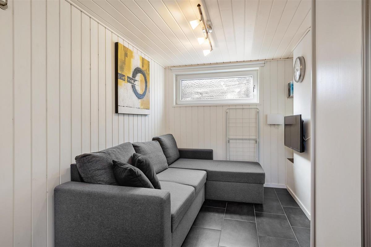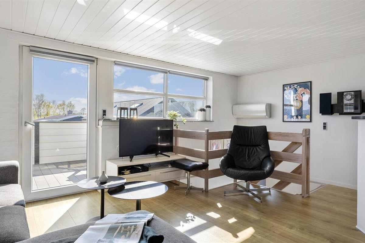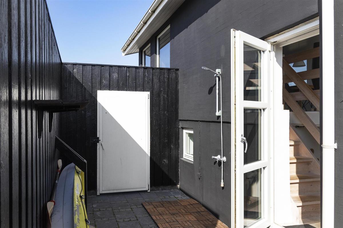 Dit moderne vakantiehuis ligt direct aan het Hasmark-strand op Funen en is perfect voor een ontspannen vakantie met het geluid van de golven op de achtergrond. Begin de dag met een kopje koffie en uitzicht op zee, binnen door de grote ramen of buiten op een van de beschutte terrassen. Geniet van de exclusieve locatie direct aan het strand, zonder doorgaand verkeer of buren in het zicht. De lichte woonkamer verwelkomt je met strakke lijnen, moderne meubels en een gezellige bank. Ga lekker zitten, kijk een film of ontspan met wat muziek. De keuken is open en biedt voldoende ruimte om te koken. Eet je maaltijden aan de eettafel met direct uitzicht op zee, terwijl de grote ramen zorgen voor veel licht en een gevoel van ruimte.