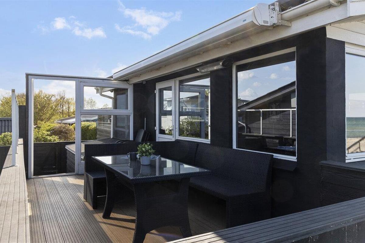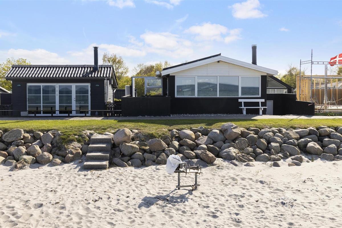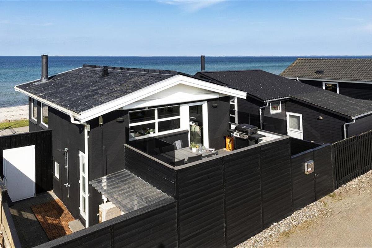 Modern vakantiehuis direct aan Hasmark-strand met panoramisch zeezicht en privéterras.