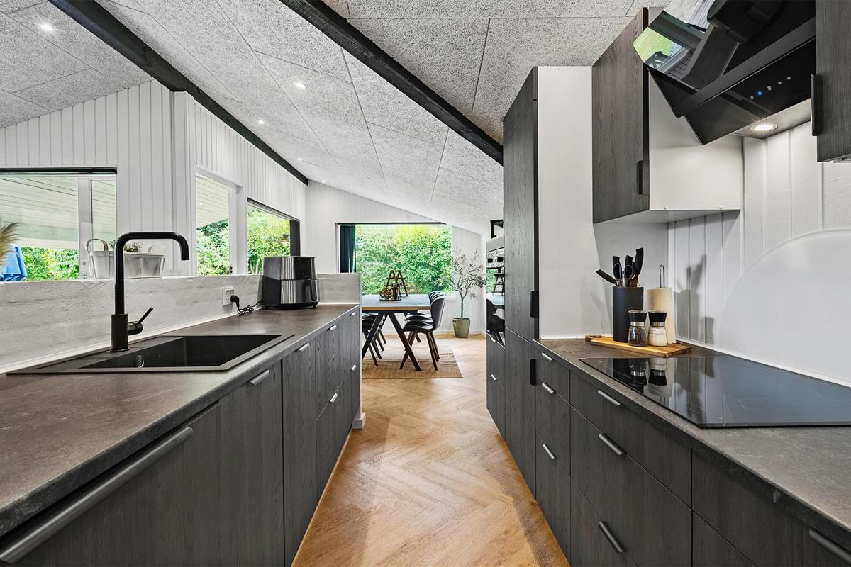 Geniet van een modern vakantiehuis vlakbij het zandstrand van Hasmark met tuin, open haard en vele extra's.