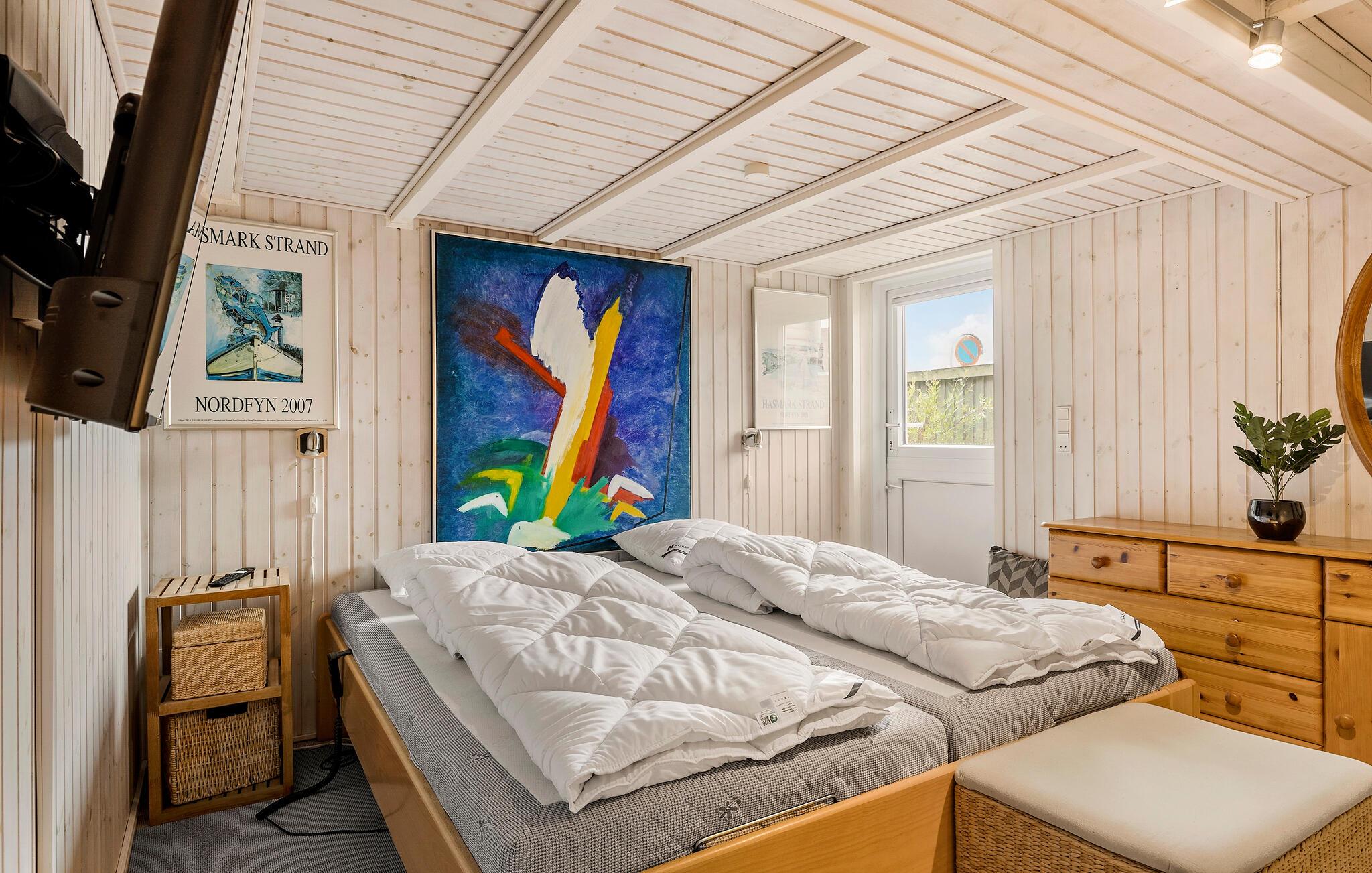 Vanuit het huis kun je via het terras het strandpad en het zandstrand bereiken. Zet je strandstoel neer op het terras en ontspan na een duik in het Kattegat. Van hieruit kun je ook je kinderen in de gaten houden, die uren kunnen spelen in het ondiepe water en op het kindvriendelijke strand. Werp 's avonds je hengel uit en beproef je geluk terwijl je kinderen schelpen en mooie stenen in het zand zoeken. Verken de Enebærodde rondweg te voet of op de fiets en bewonder de charmante vuurtoren. Of maak een dagtocht naar Odense, waar culturele activiteiten, talloze musea en historische gebouwen interessante uren beloven.