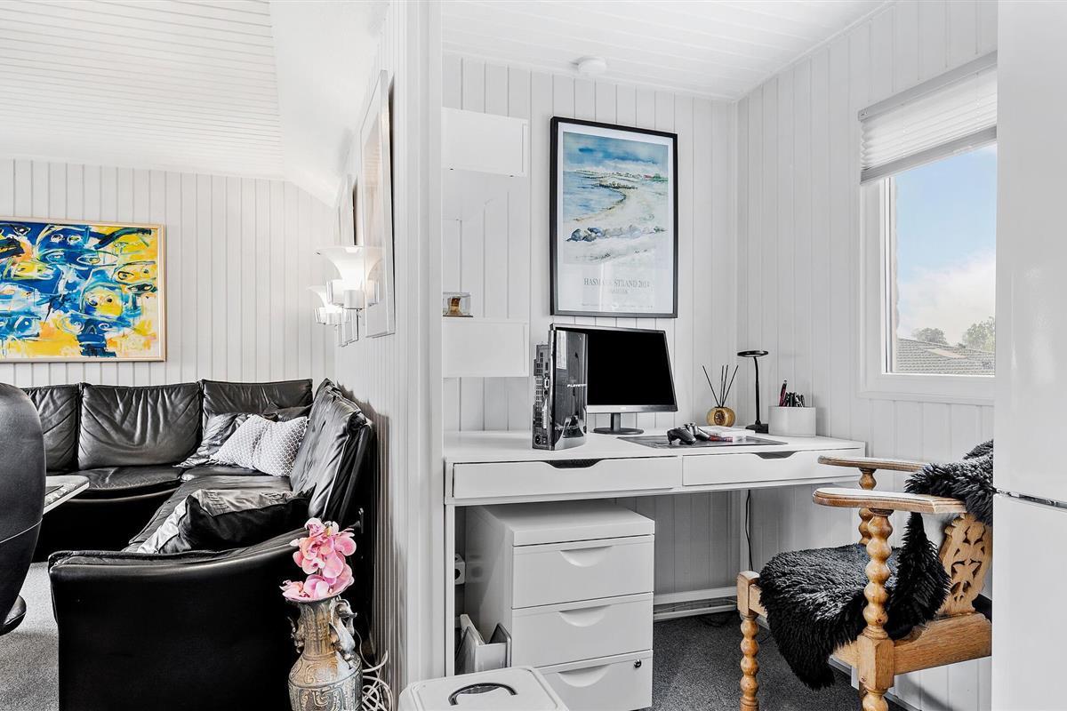 Geniet van een fantastisch panoramisch uitzicht vanaf het terras van dit strandhuis op het populaire Hasmark-strand.