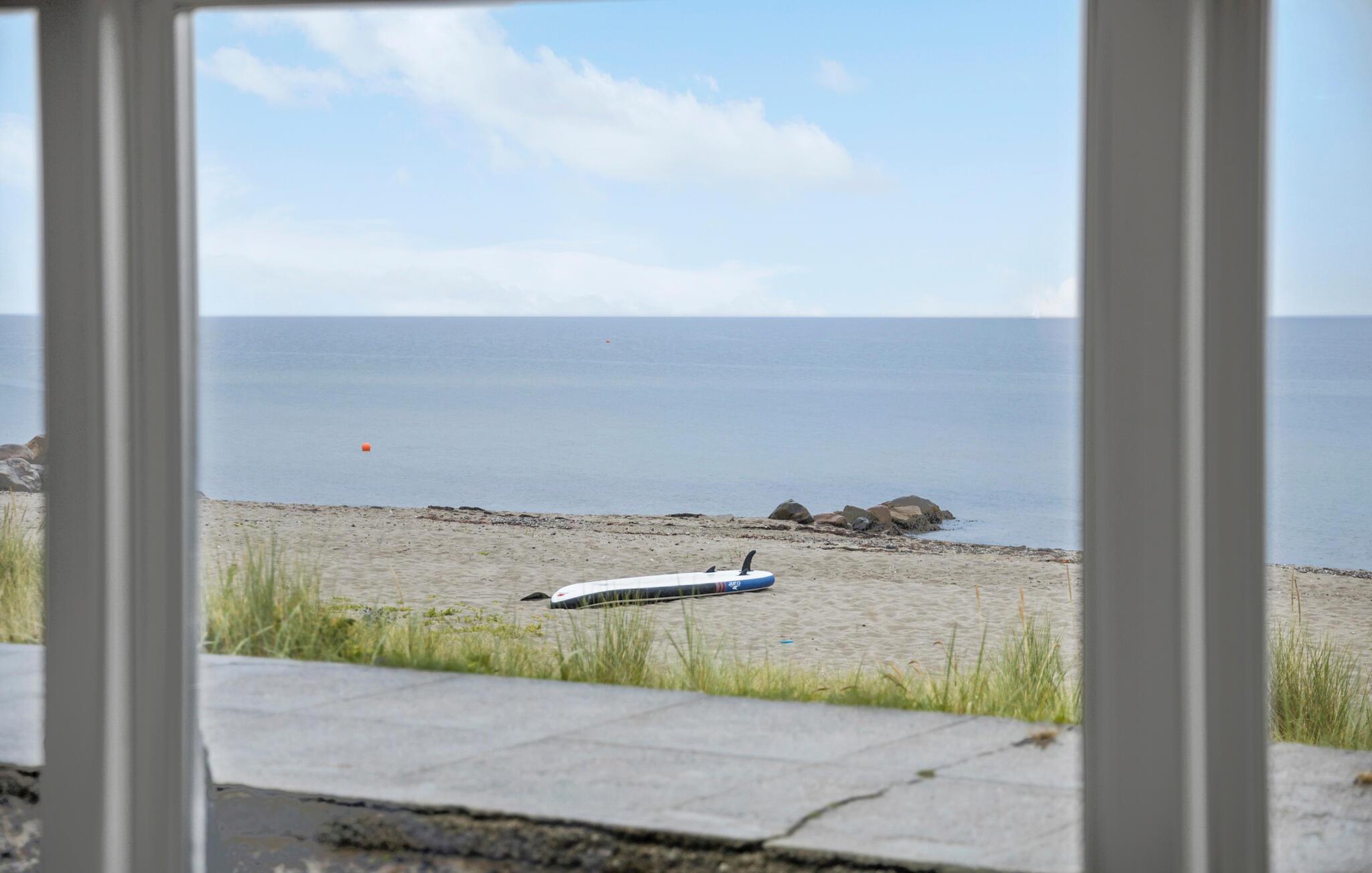 Strandhuis met panoramisch uitzicht op Hasmark Strand, modern ingericht en direct aan het kindvriendelijke zandstrand.