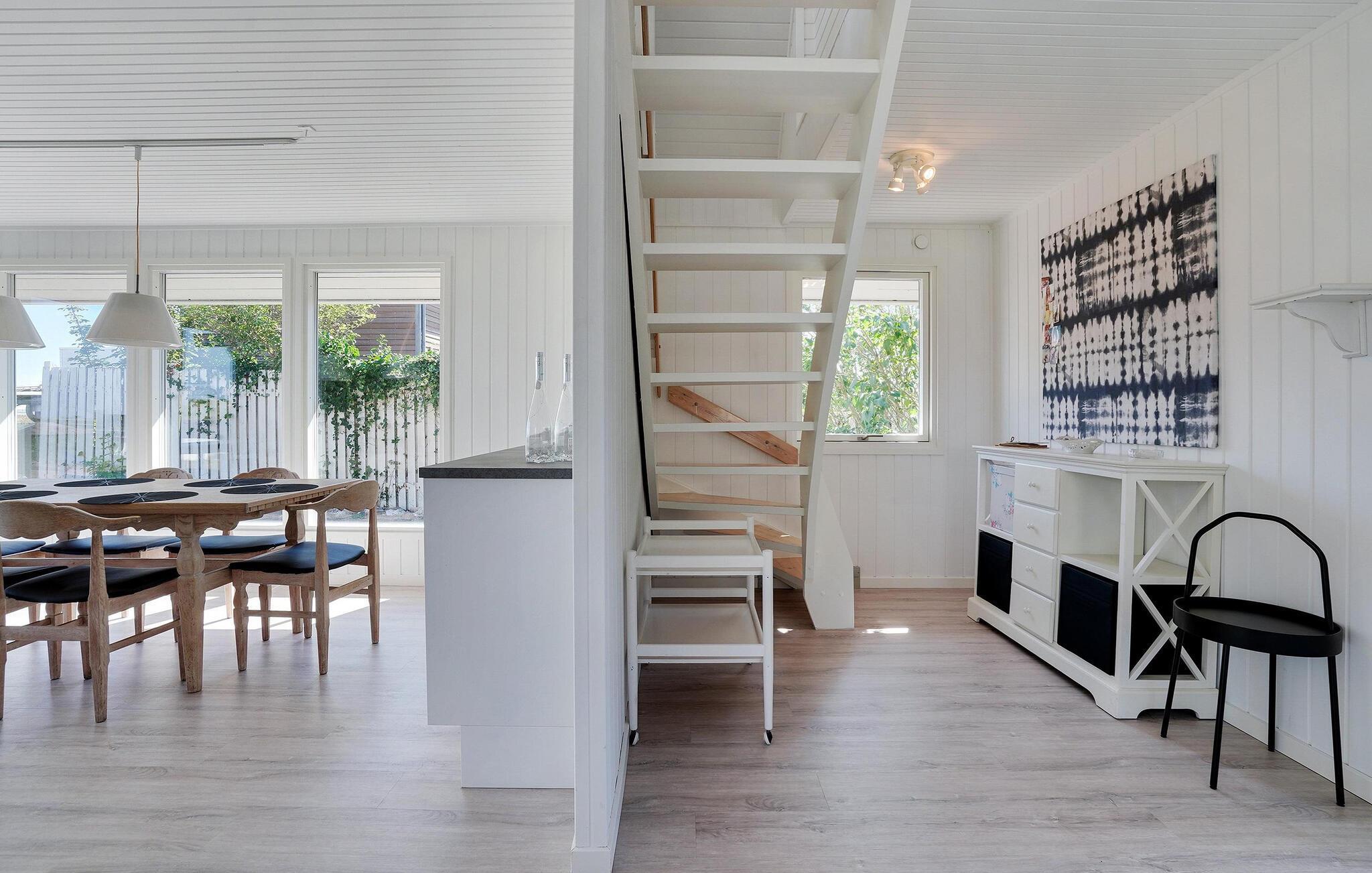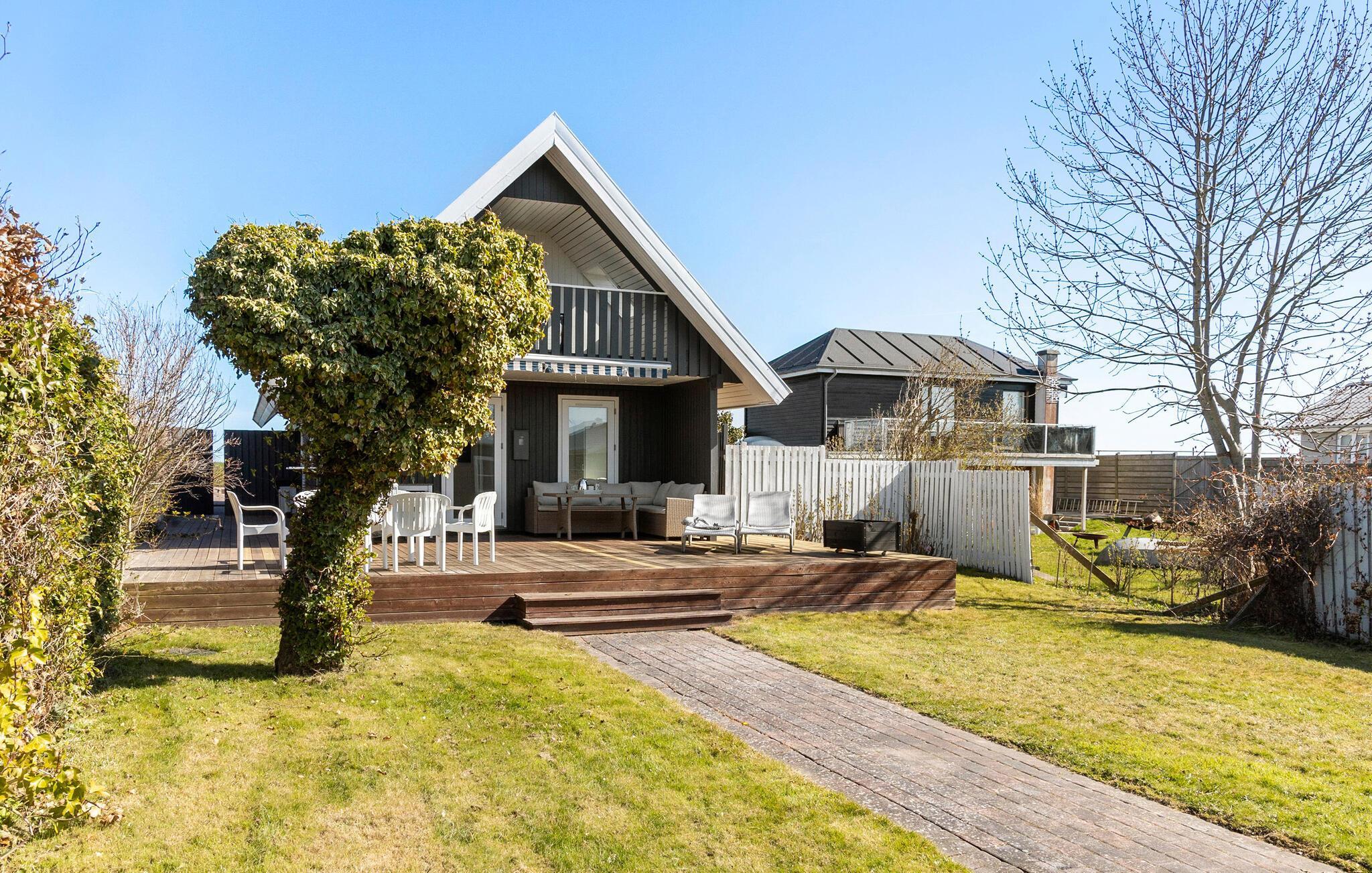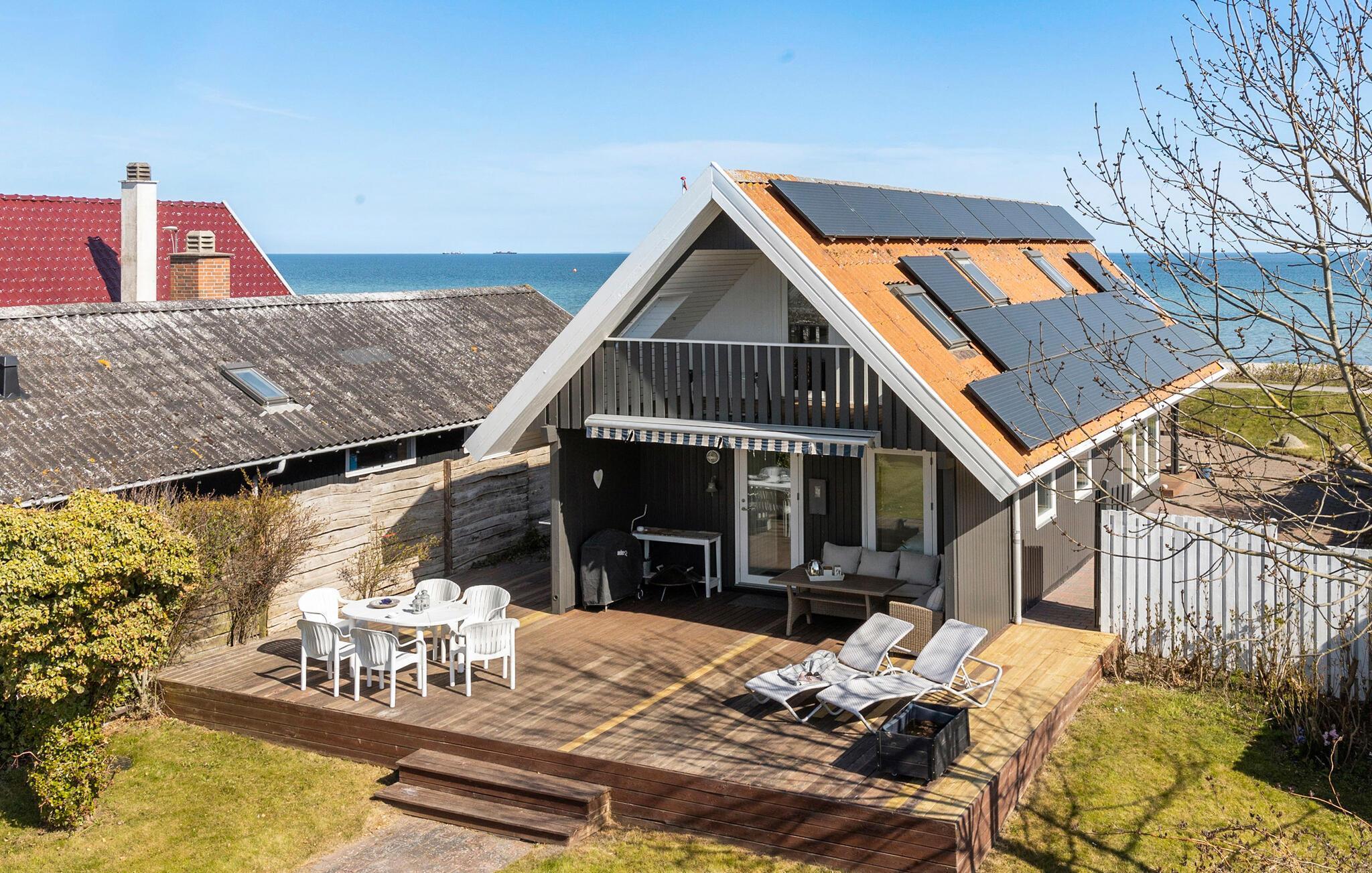 Charmant vakantiehuis aan het strand van Jørgensø met Scandinavisch design, modern comfort en prachtig uitzicht op zee.