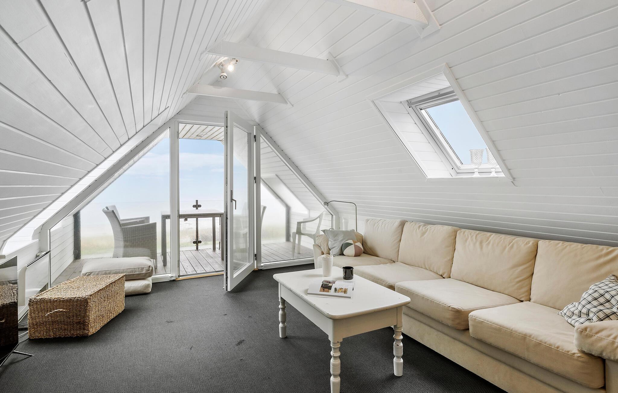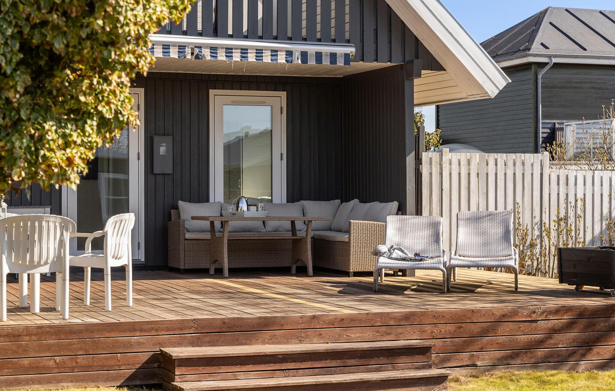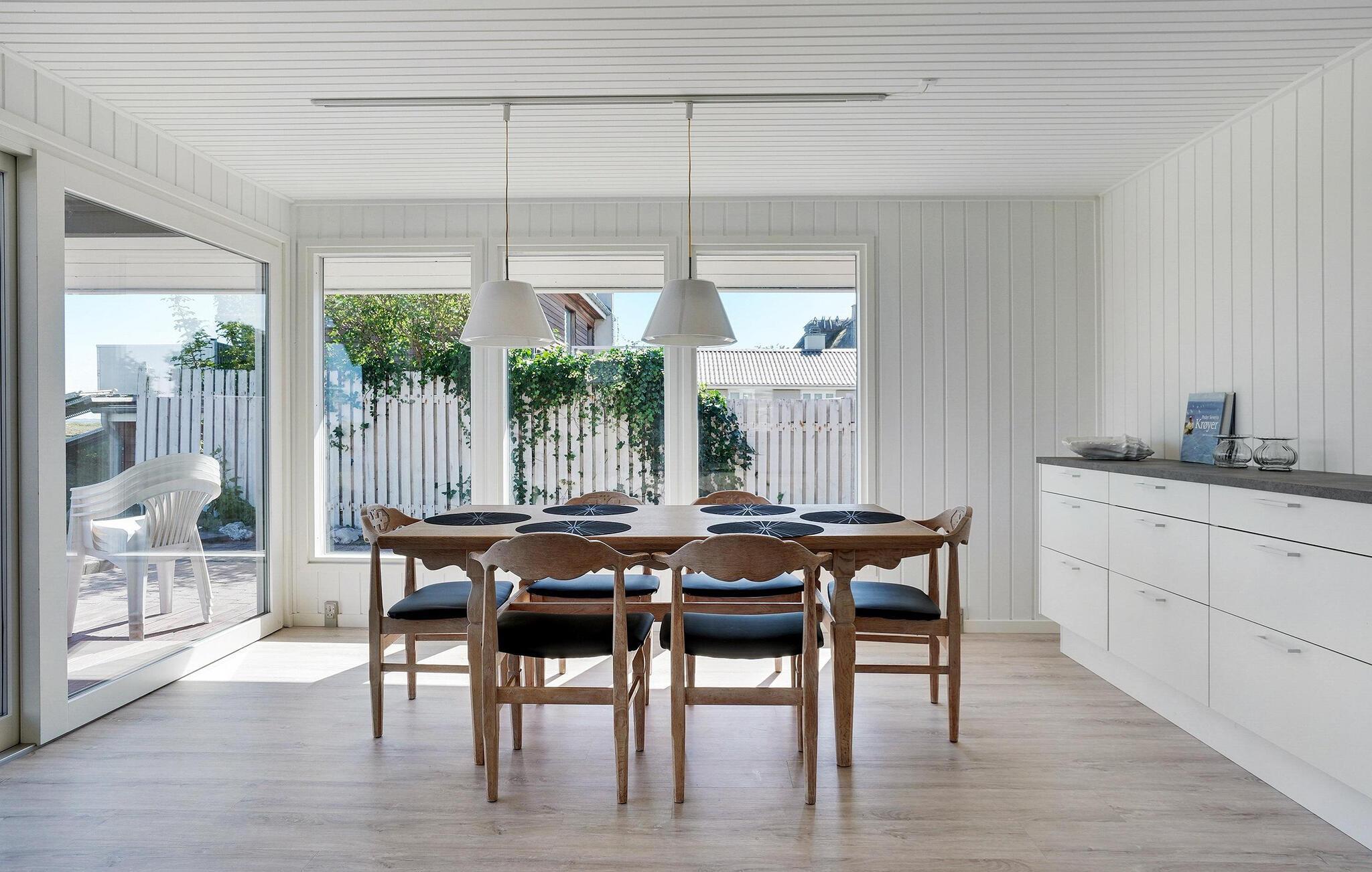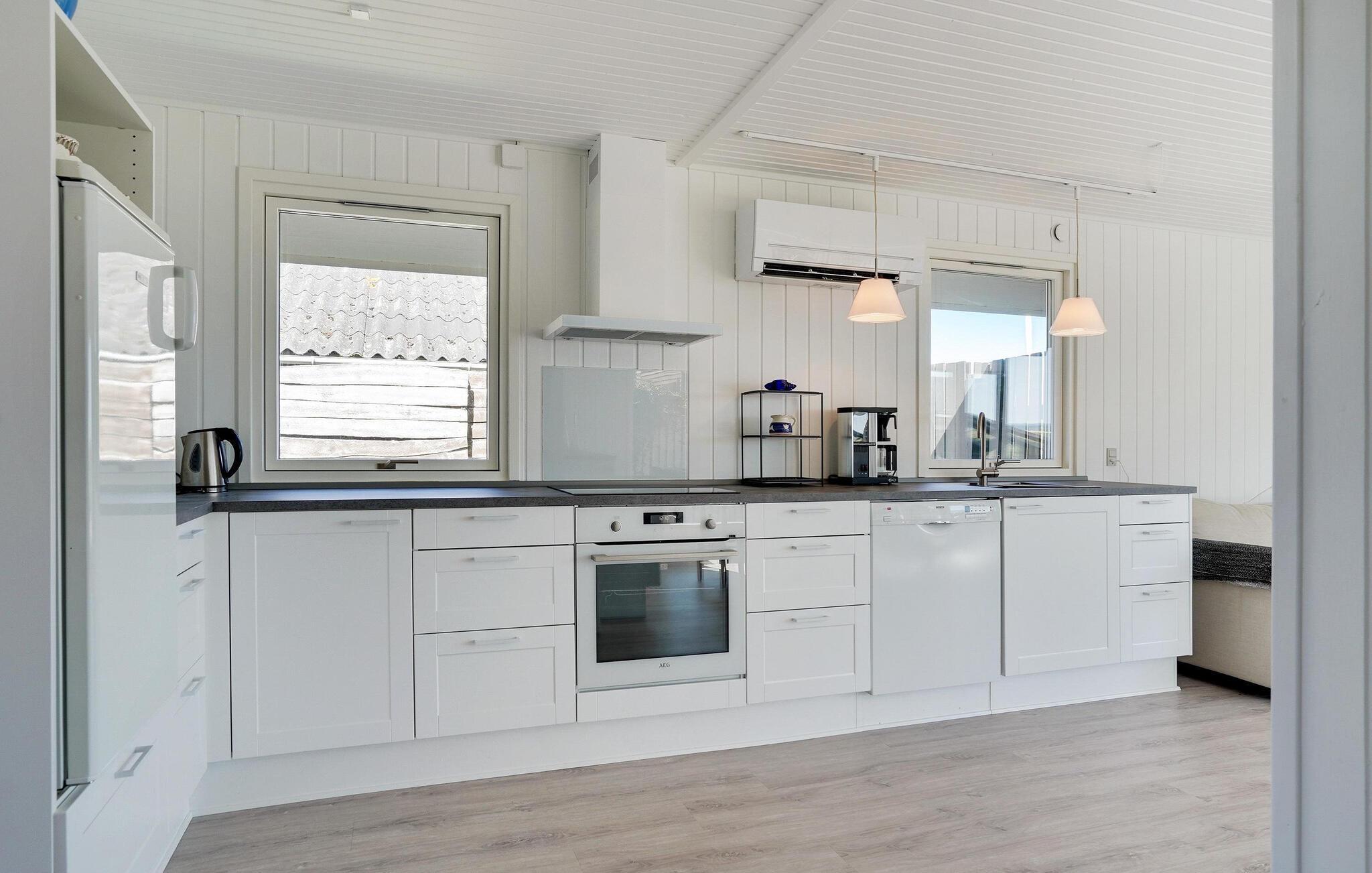 Charmant vakantiehuis aan het strand van Jørgensø met Scandinavisch design, modern comfort en prachtig uitzicht op zee.