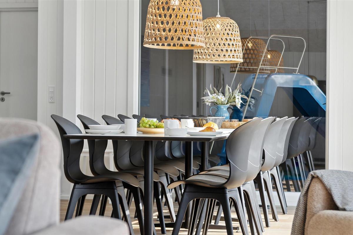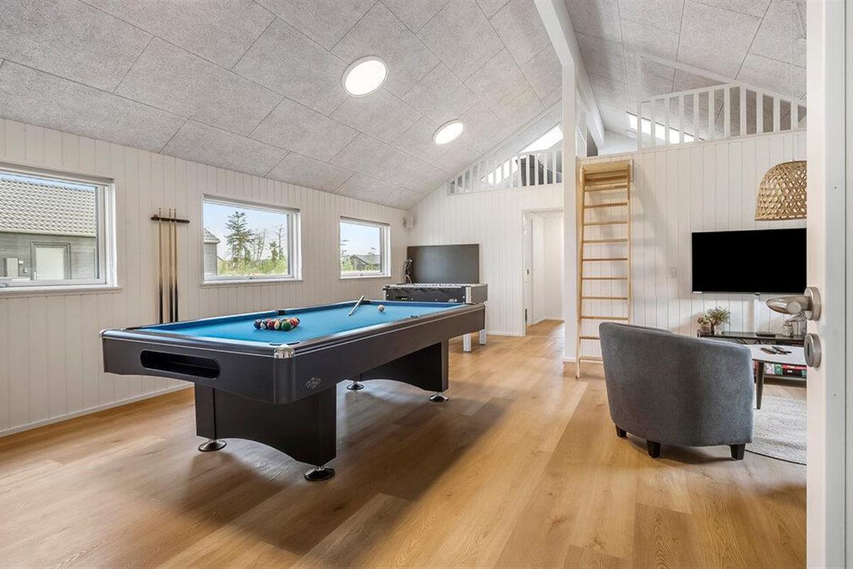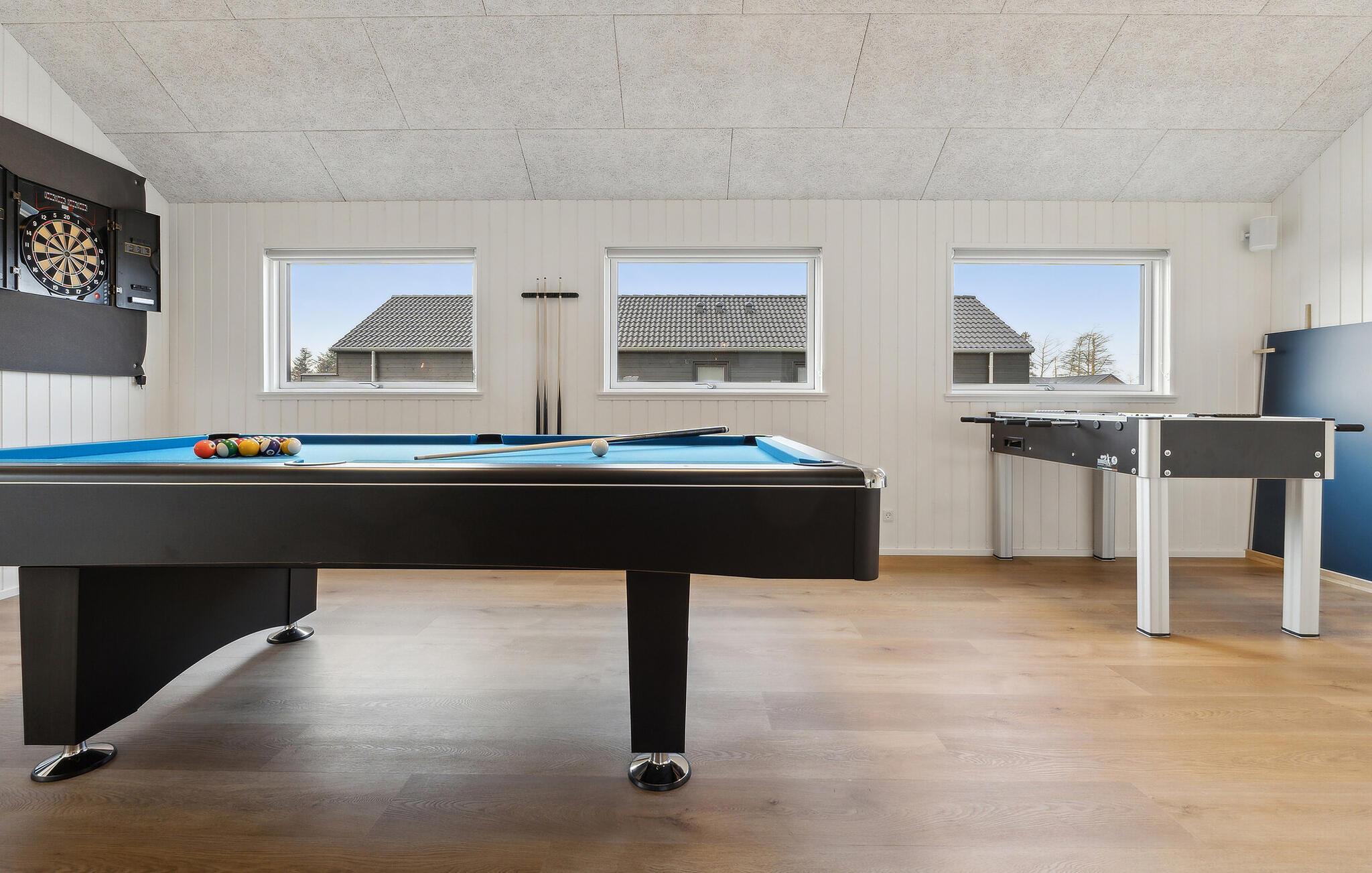 Dit fantastische vakantiehuis ligt op slechts een steenworp afstand van het populaire Hasmark-strand en verwent je met tal van extra's voor een actieve en gezellige vakantie met het gezin of een groep vrienden. Verheug je op gezellige kookavonden en maaltijden in een smaakvolle, gezellige sfeer en vermaak je in het activiteitenhuis met tafeltennis, biljart, darts of tafelvoetbal. Trakteer jezelf op aangename momenten in de sauna of in het binnenzwembad met tegenstroomsysteem en kom samen voor gezellige filmavonden op de ruime bank.
