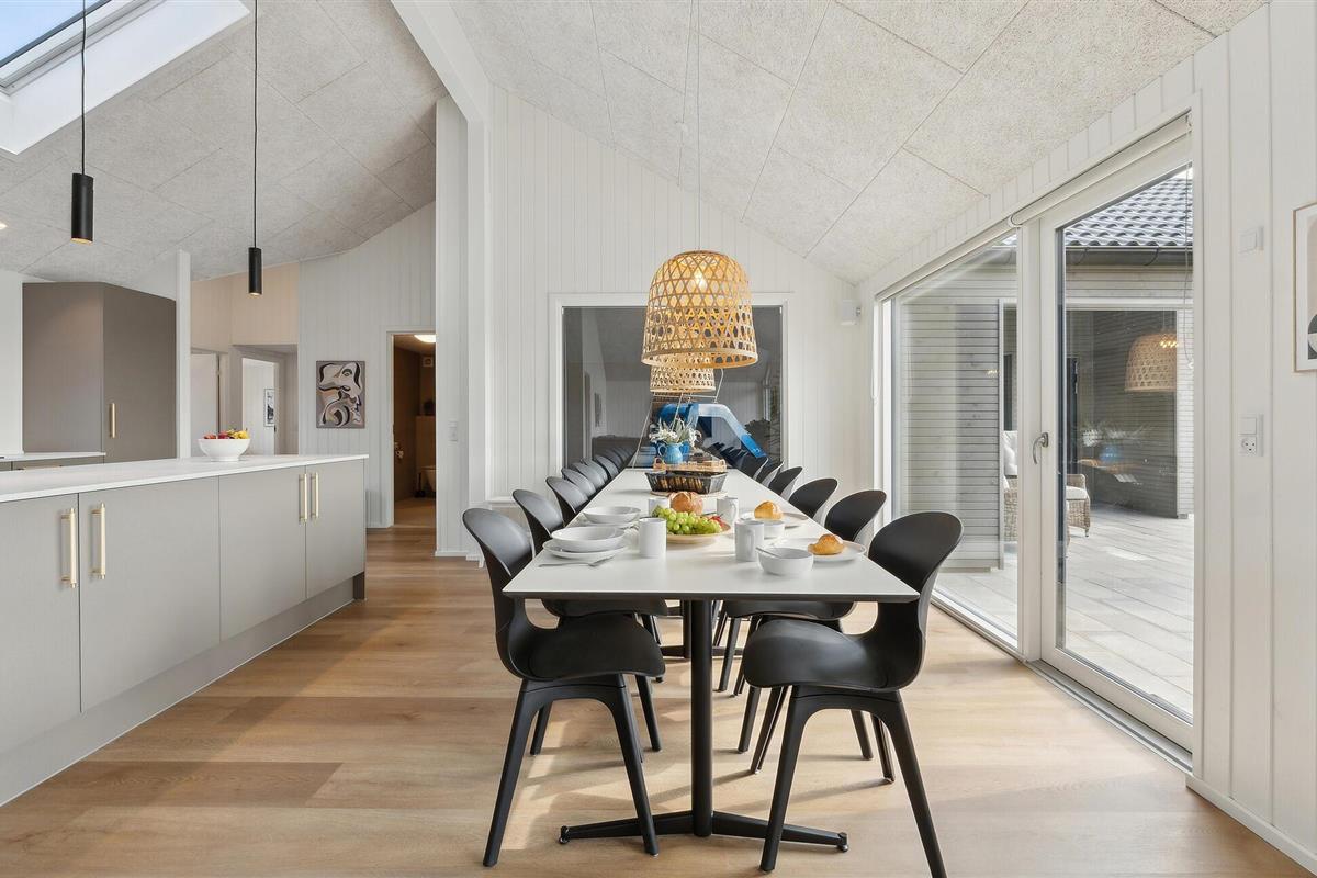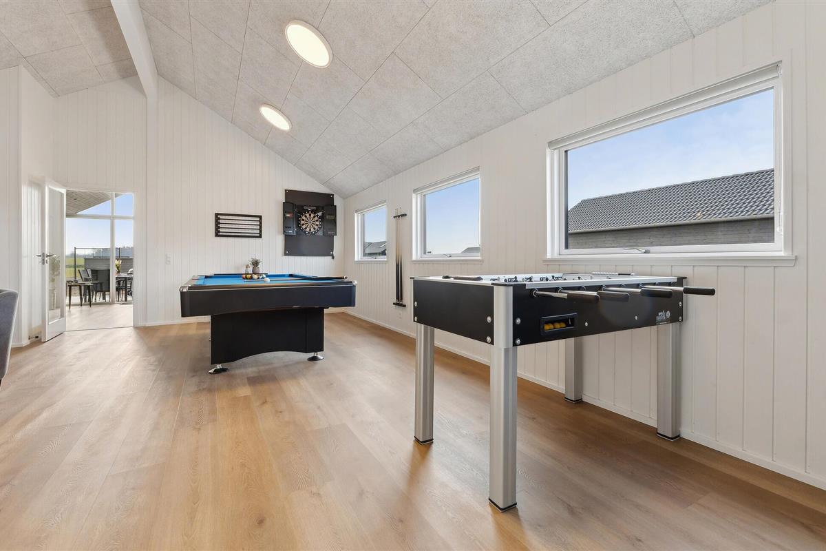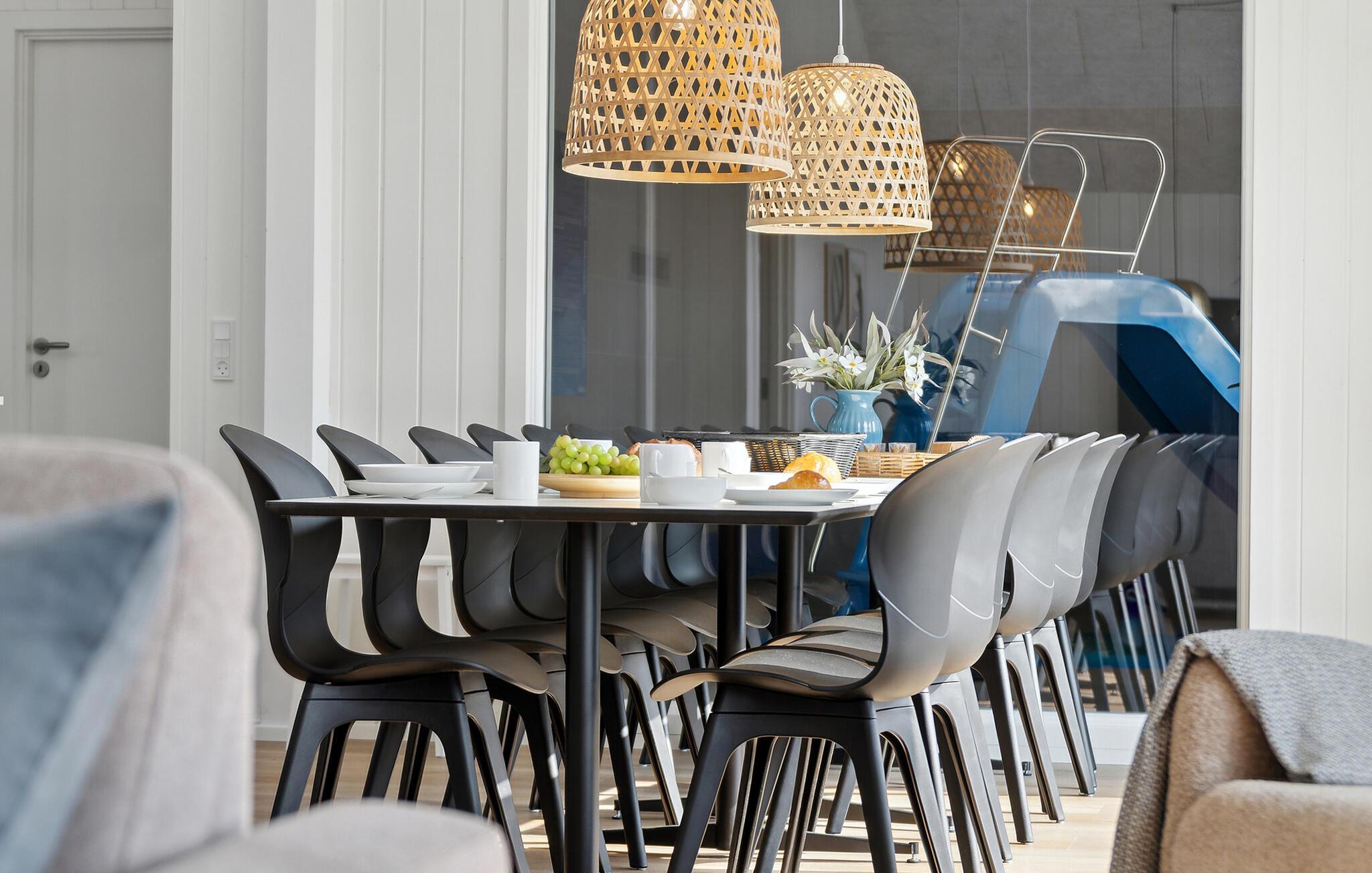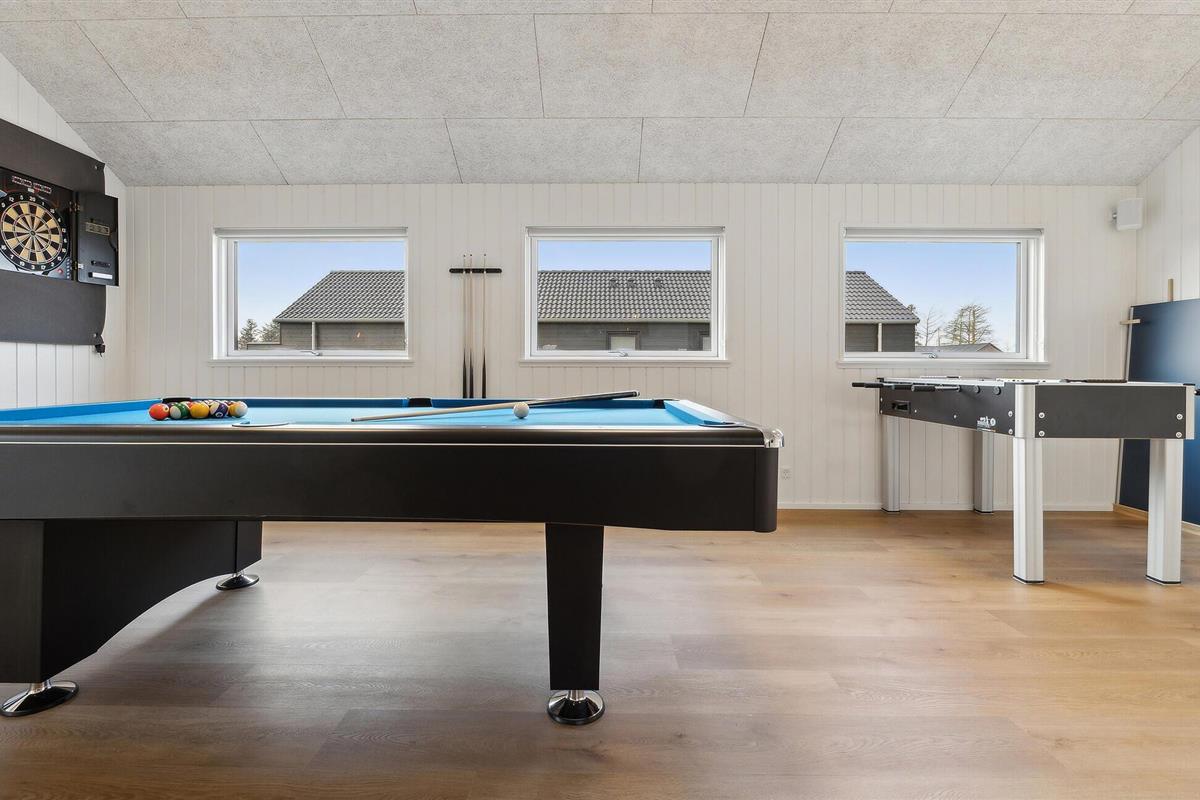 Dit fantastische vakantiehuis ligt op slechts een steenworp afstand van het populaire Hasmark-strand en verwent je met tal van extra's voor een actieve en gezellige vakantie met het gezin of een groep vrienden. Verheug je op gezellige kookavonden en maaltijden in een smaakvolle, gezellige sfeer en vermaak je in het activiteitenhuis met tafeltennis, biljart, darts of tafelvoetbal. Trakteer jezelf op aangename momenten in de sauna of in het binnenzwembad met tegenstroomsysteem en kom samen voor gezellige filmavonden op de ruime bank.