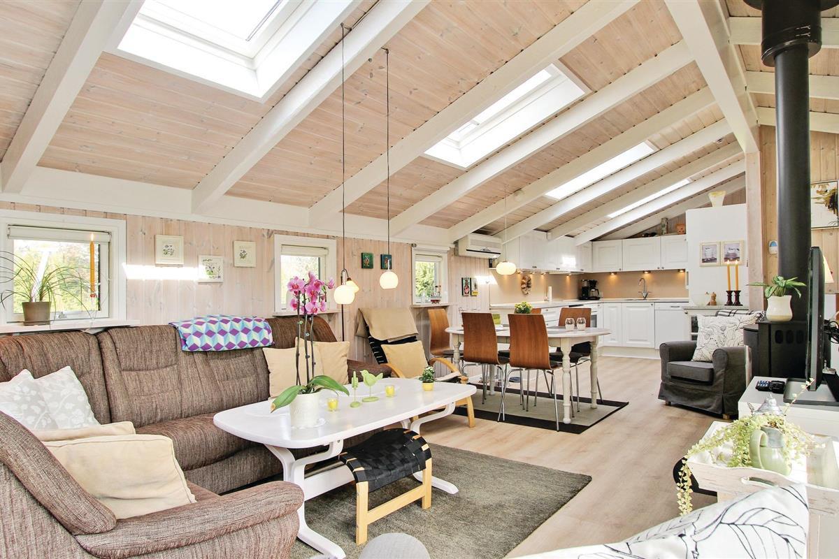 Mooi vakantiehuis aan het einde van een doodlopende weg, op slechts een paar minuten lopen van het gezinsvriendelijke badstrand van Hasmark. Drie slaapkamers en een bijgebouw, dat vooral geschikt is voor kinderen. Daarnaast is er een mooie, open keuken, die verbonden is met de woonkamer. Prachtig licht stroomt in de woonkamer door de hoge ramen. Voor koude dagen en avonden heeft het huis een houtkachel. Er is ook een warmtepomp met airconditioning voor warme dagen. Omheinde tuin met veel zonnige plekjes waar u de meeste uren van de dag buiten kunt genieten. Het is ook niet ver naar een populaire camping met veel activiteiten voor alle leeftijden, een heerlijk zandstrand en natuurlijk, wat vooral belangrijk is op vakantie, een goede ijssalon.