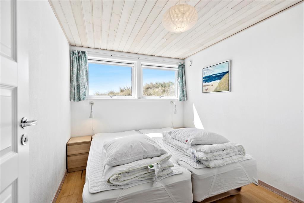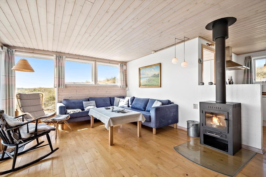 Dieses bezaubernde Ferienhaus eignet sich hervorragend für Urlauber, die sich mit Ausblick auf reizvolle Natur von der Sonne verwöhnen lassen möchten. Das Urlaubsdomizil liegt erhöht in der Landschaft auf der Fjordseite Sønder Haurvigs. Im Wohnraum und auf der Südterrasse eröffnet sich Ihnen eine prachtvolle Panoramaaussicht über die Dünenlandschaft, die sich zwischen Ringkøbing Fjord und Nordsee erstreckt.