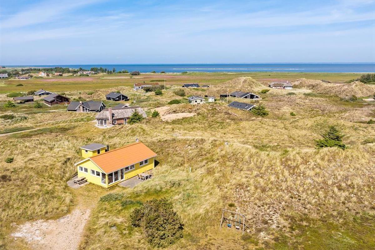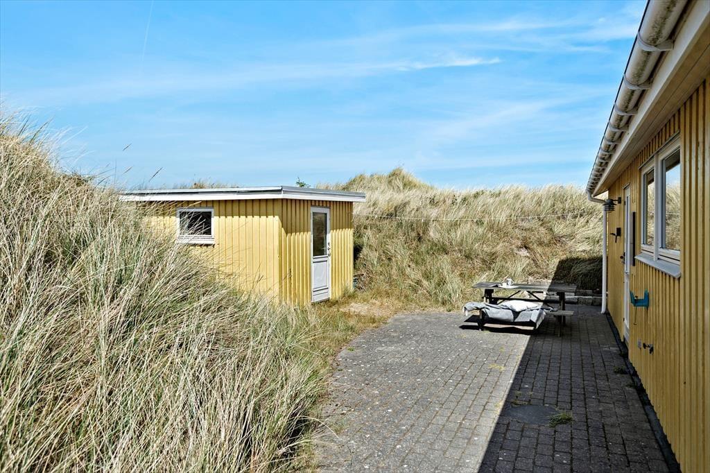 Mit Terrassen gen Norden und Süden bieten sich Ihnen beste Möglichkeiten, die Urlaubstage unter freiem Himmel zu genießen. Die Südterrasse wird den gesamten Tag über von der Sonne verwöhnt und lädt zu entspannten Grillabenden ein. Von hier aus blicken Sie über die Dünenlandschaft und auf das alte Seezeichen Haurvigs, das auf der Bavnehøj thront - ein spektakulärer Anblick! Das Grundstück umfasst beinahe 1,2 Hektar unberührter Natur. Ringsum genießen Sie demnach viel Platz - weit abseits der Nachbarn.
