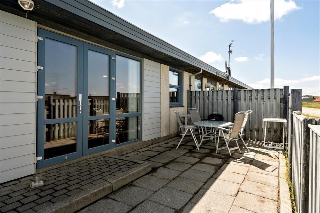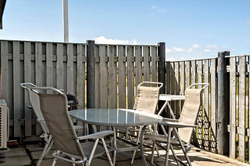 Vom Wohnzimmer aus gibt es einen direkten Zugang zu einer schönen Terrasse, die nach Osten und Norden ausgerichtet ist. Wenn die Sonne aufgeht und den Ringkøbing Fjord in der Morgendämmerung orange-rot färbt, ist es naheliegend, den Morgenkaffee mit hierher zu nehmen und die schöne Aussicht zu genießen. Die Terrasse ist auch der Ort, an dem Sie tagsüber die eine oder andere kühle Erfrischung unter freiem Himmel genießen werden und wo Sie abends den Grill anfeuern können.