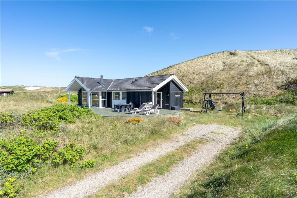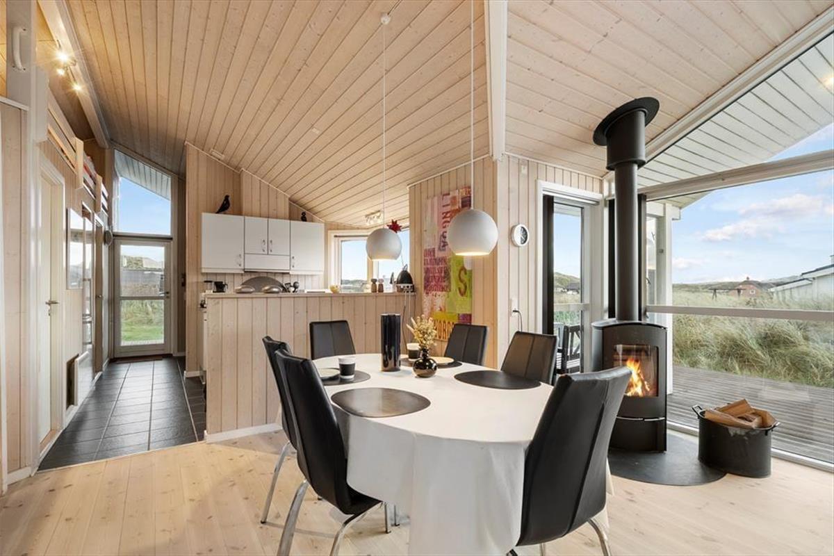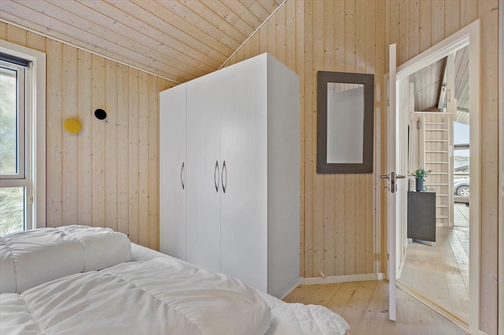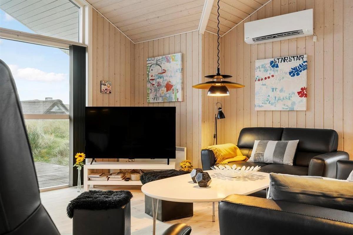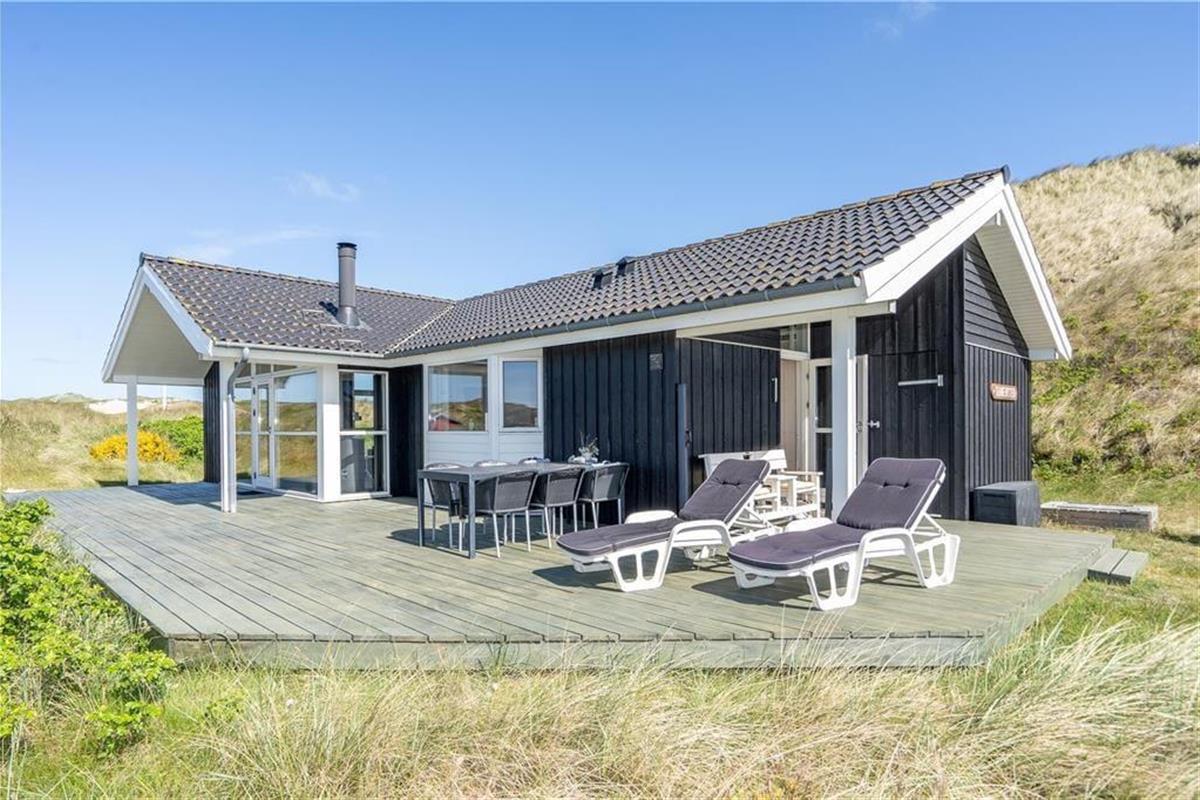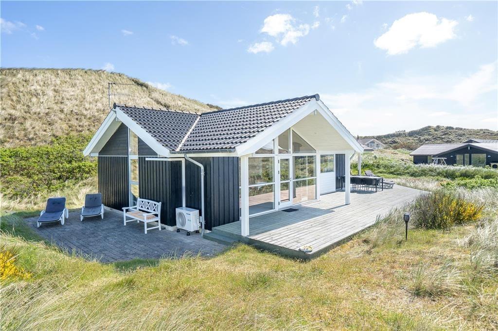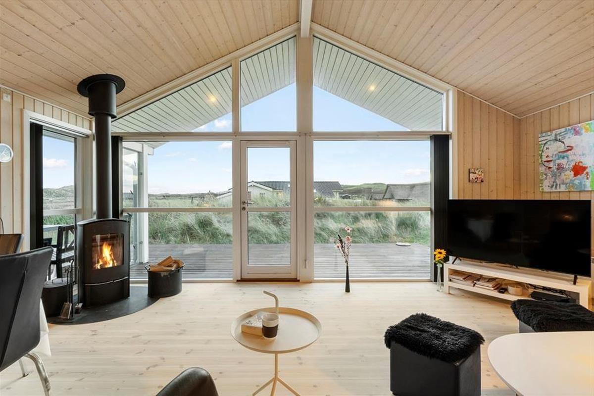 Sehr gepflegtes Luxus-Holzhaus für 6 Personen mit Dachboden für die Kinder. Das Hotel liegt in einer ruhigen Gegend mit herrlichem Blick auf die erste Dünenreihe und eine hoch liegende Düne im Hinterhof, von der aus man einen fantastischen Blick auf den Ringkøbing-Fjord und die Dünen mit Blick auf die Nordsee hat.