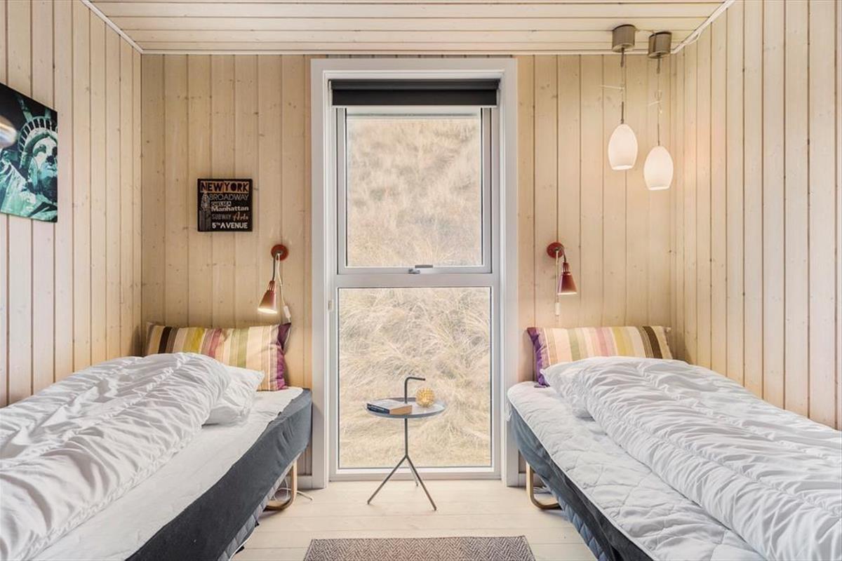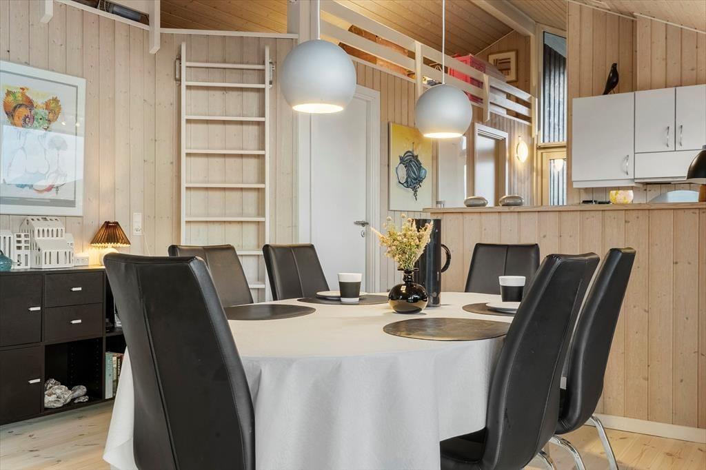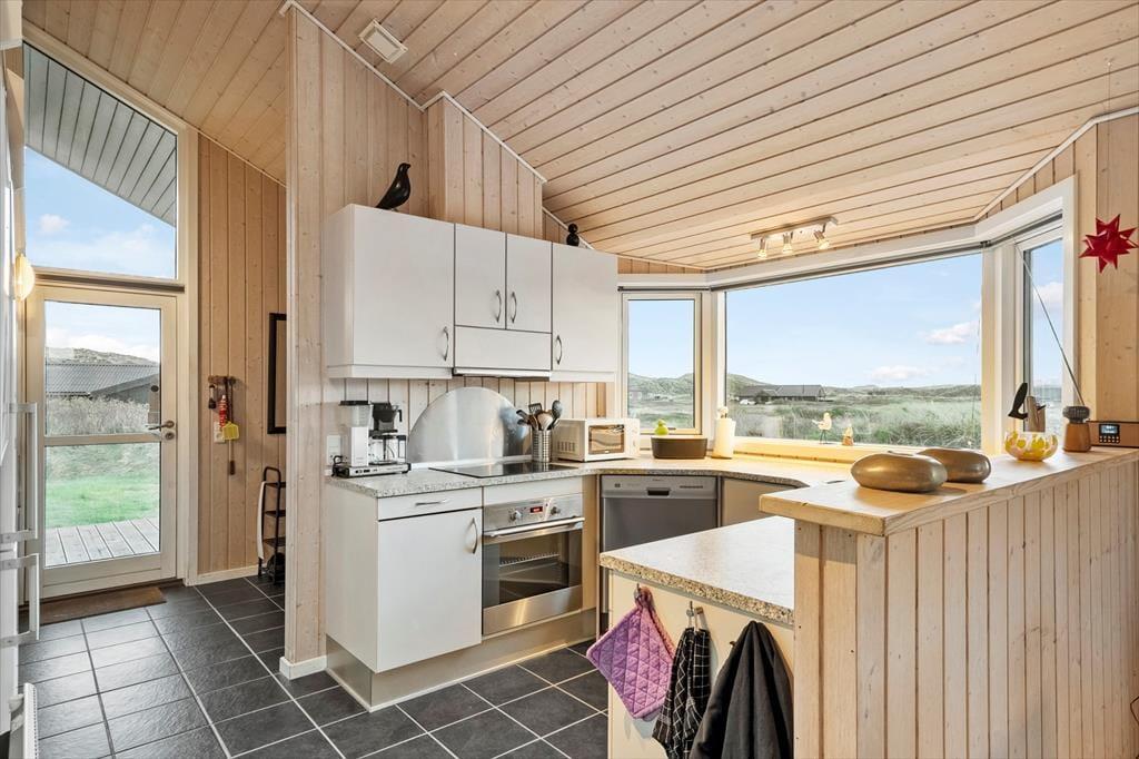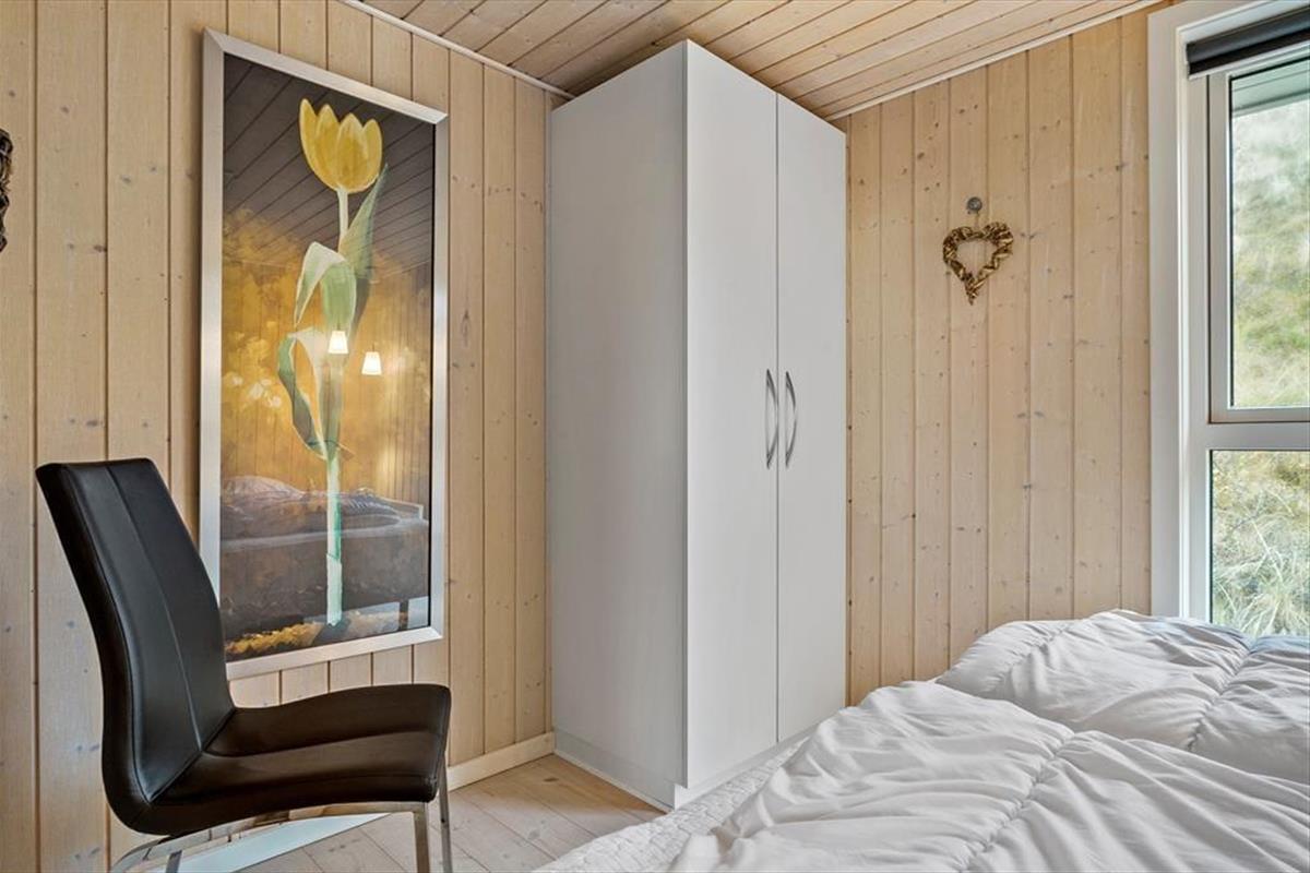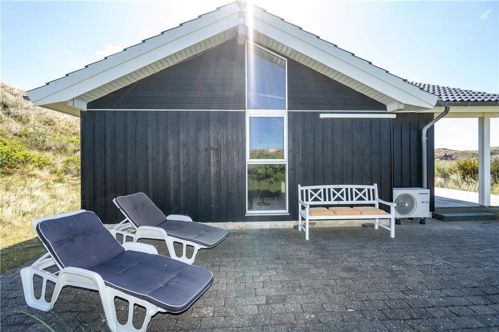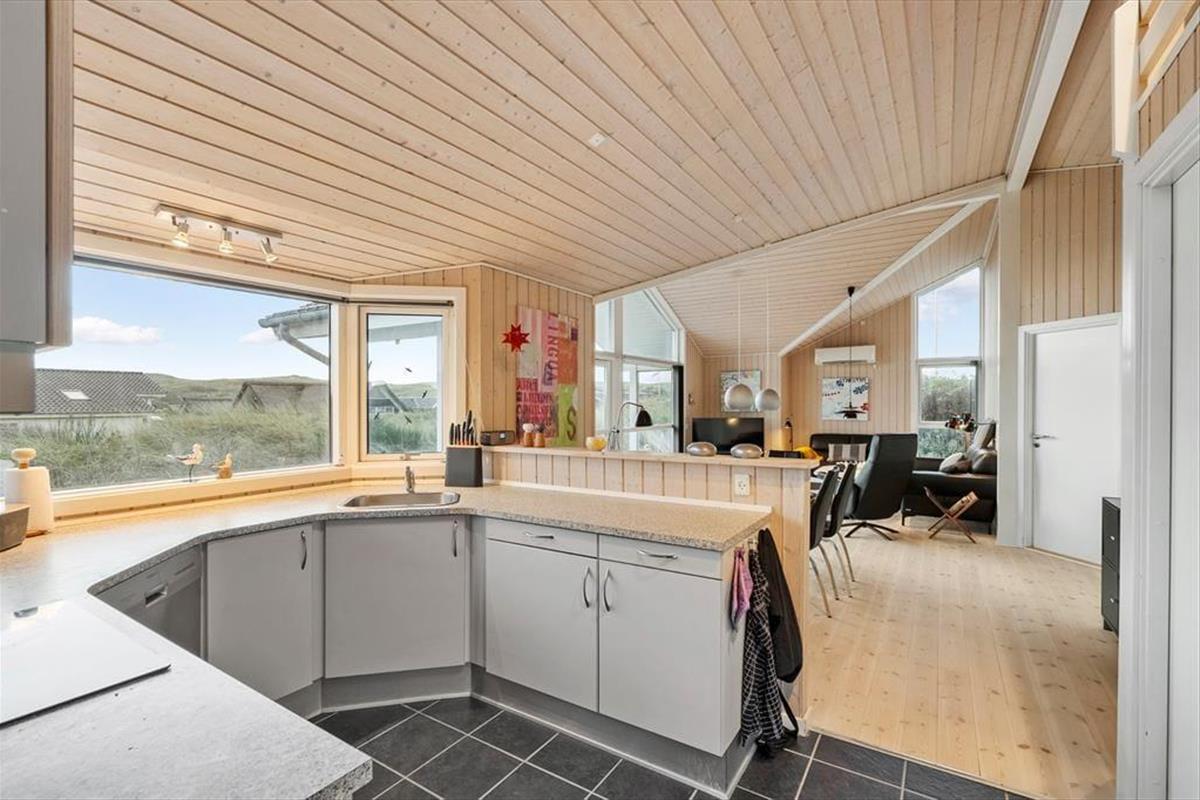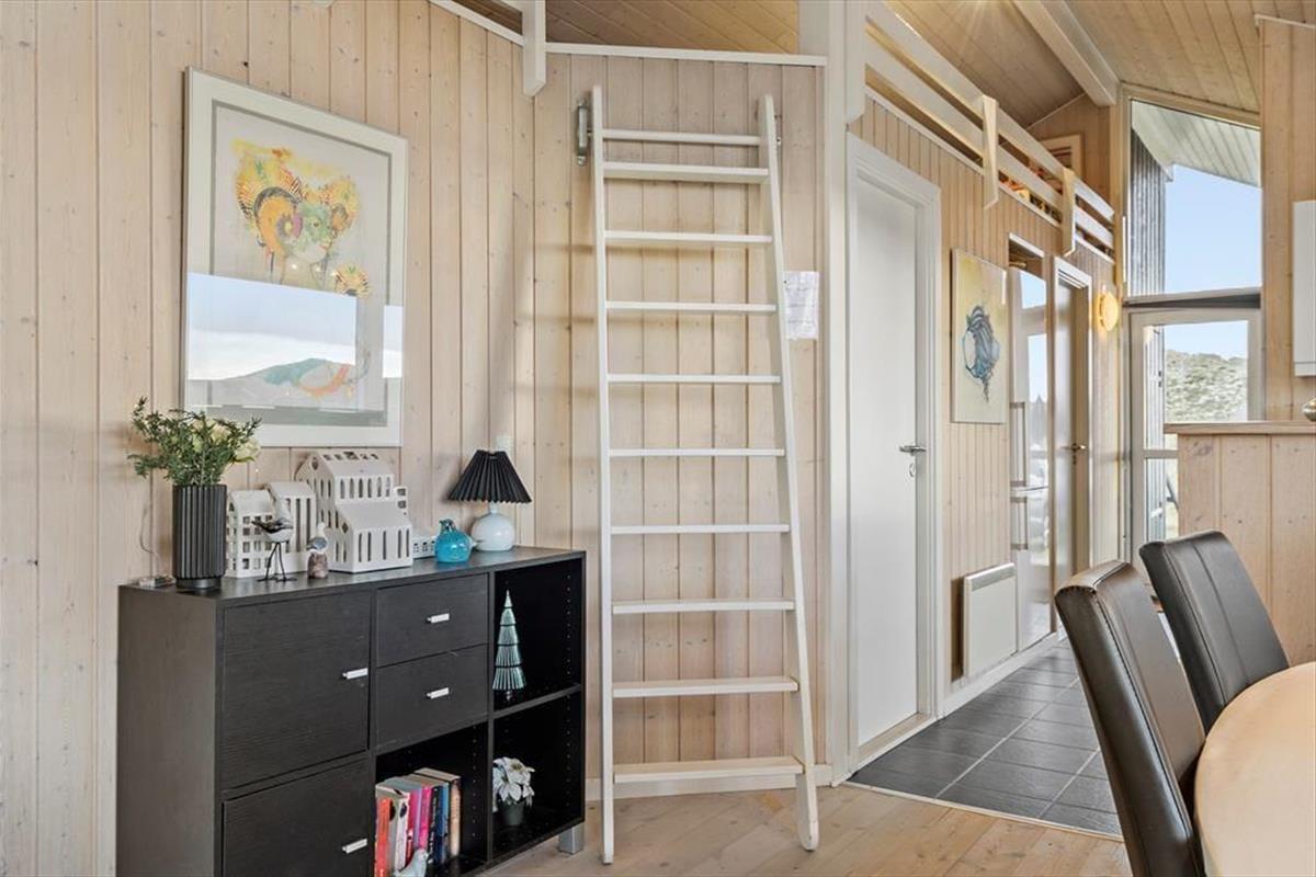 Sehr gepflegtes Luxus-Holzhaus für 6 Personen mit Dachboden für die Kinder. Das Hotel liegt in einer ruhigen Gegend mit herrlichem Blick auf die erste Dünenreihe und eine hoch liegende Düne im Hinterhof, von der aus man einen fantastischen Blick auf den Ringkøbing-Fjord und die Dünen mit Blick auf die Nordsee hat.