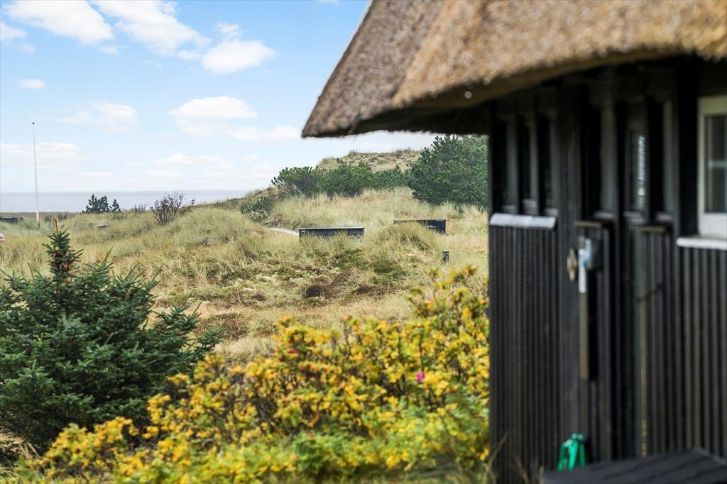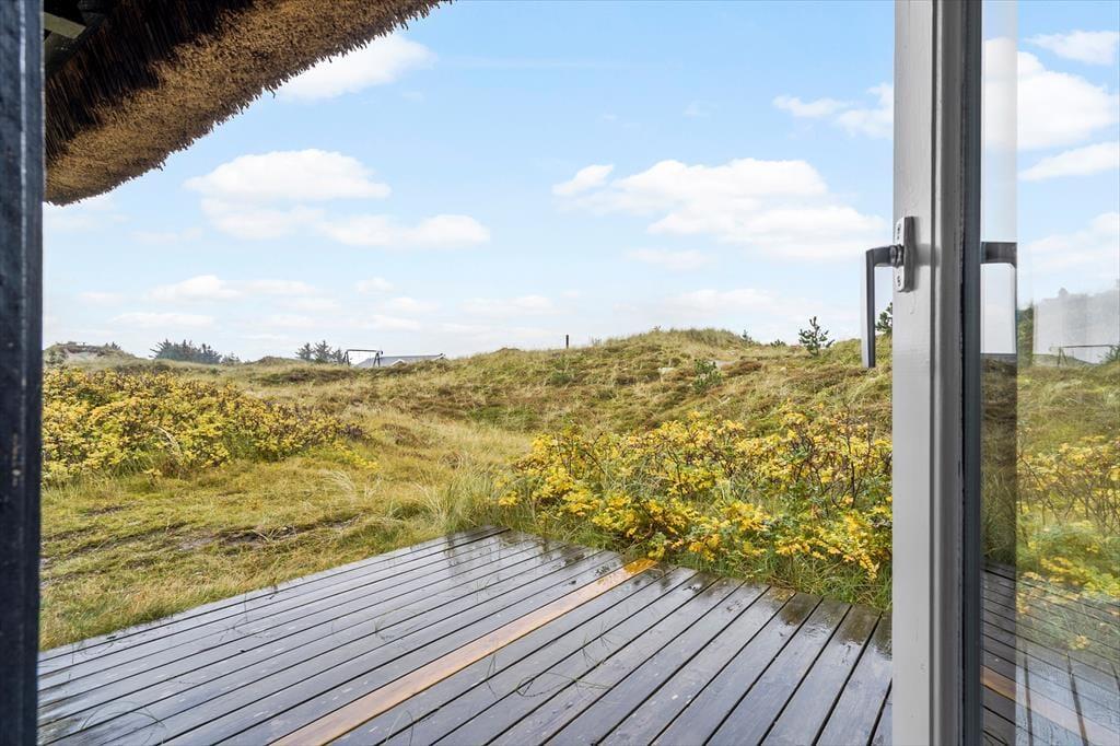 Auf deinem großen Naturgrundstück genießt du die herrliche Umgebung und die friedvolle Atmosphäre in vollen Zügen. Dein Reetdachhaus fügt sich harmonisch in die hügelige Dünenlandschaft ein. Auf der nach Südwesten ausgerichteten Holzterrasse, die von den Dünen komplett abgeschirmt wird, kannst du dich völlig ungestört niederlassen und ein ausgedehntes Sonnenbad genießen. Du spürst dabei die enge Verbindung zur Natur und merkst, wie du dich immer mehr entspannst. Falls du davon träumst, im Urlaub die Seele baumeln zu lassen, viele Bücher zu lesen und dir das ein oder andere Nickerchen an der frischen Seeluft zu gönnen, bist du auf dieser Terrasse bestens aufgehoben. Wenn dich eher ein attraktiver Ausblick reizt, begibst du dich an den höchsten Punkt deines Naturgrundstücks, von dem du auf den nur wenige hundert Meter entfernten Ringkøbing Fjord blickst.