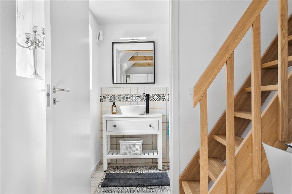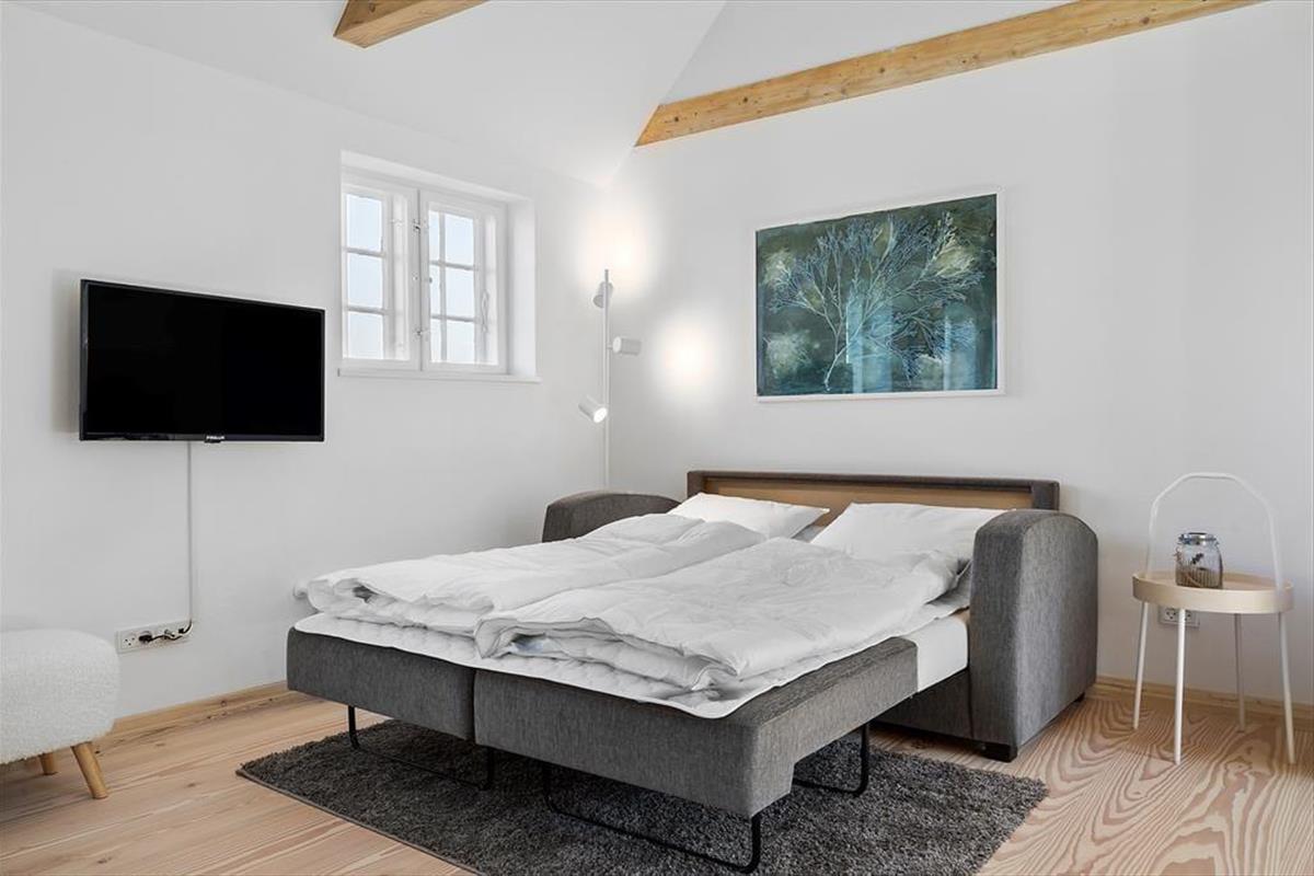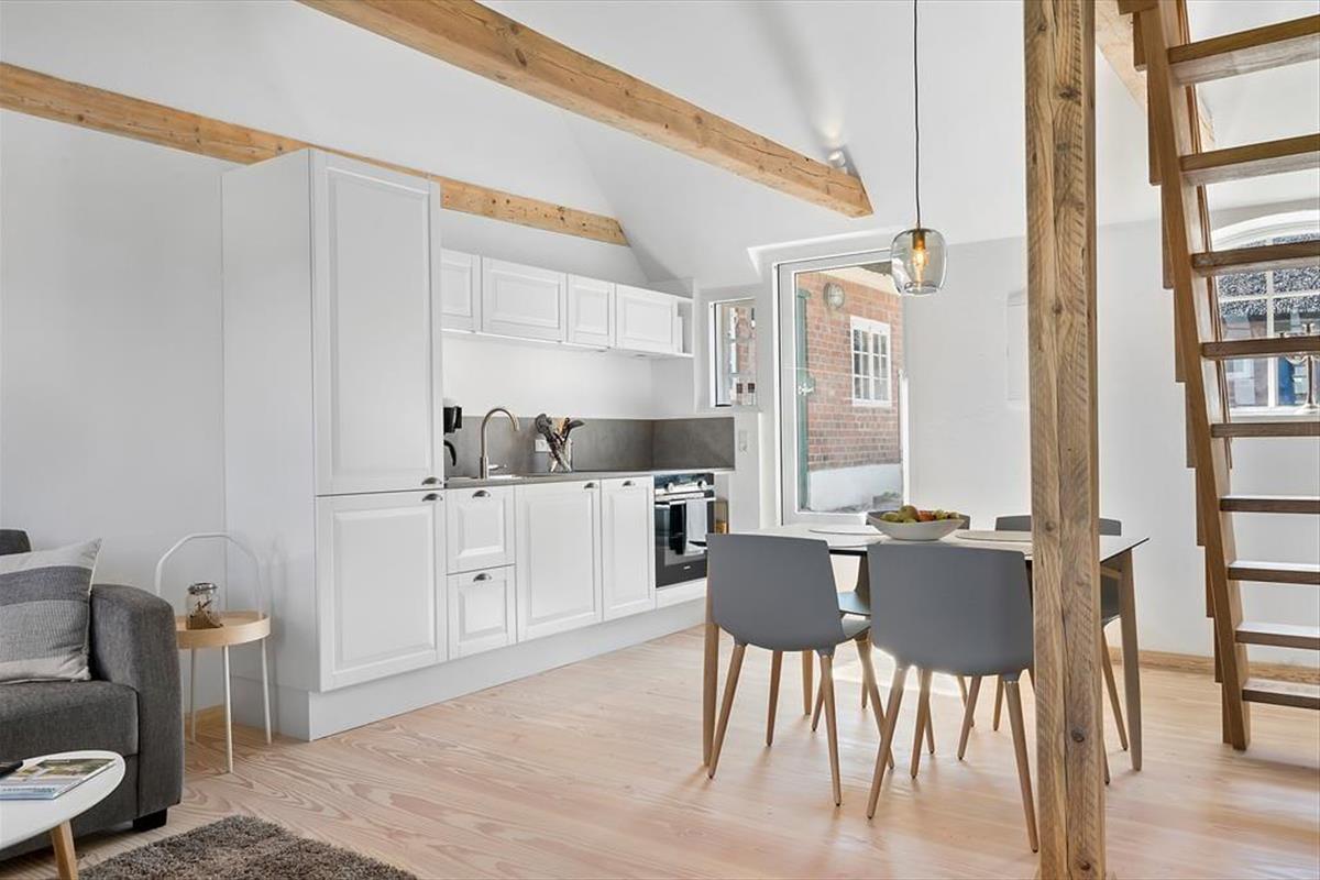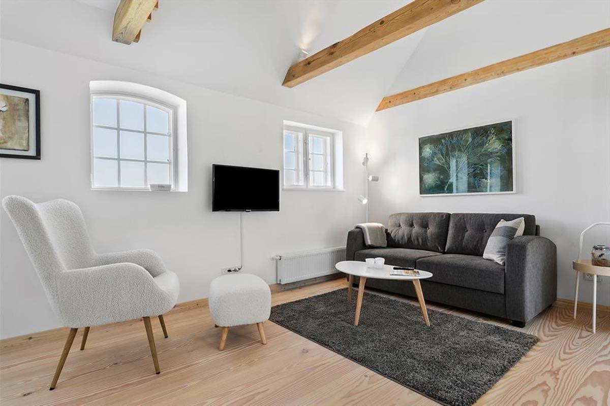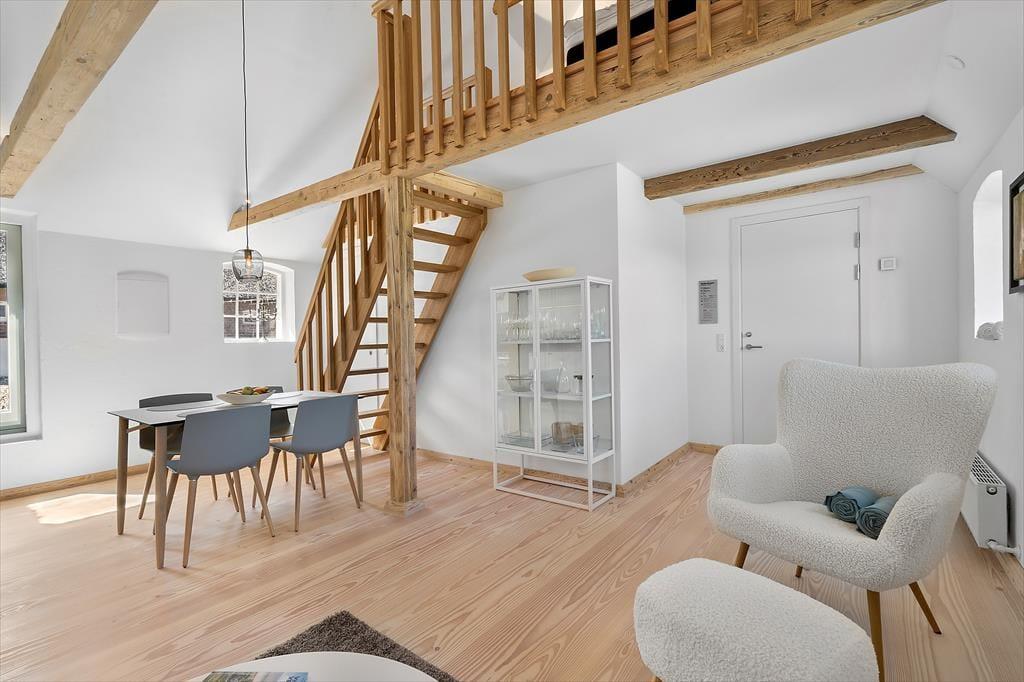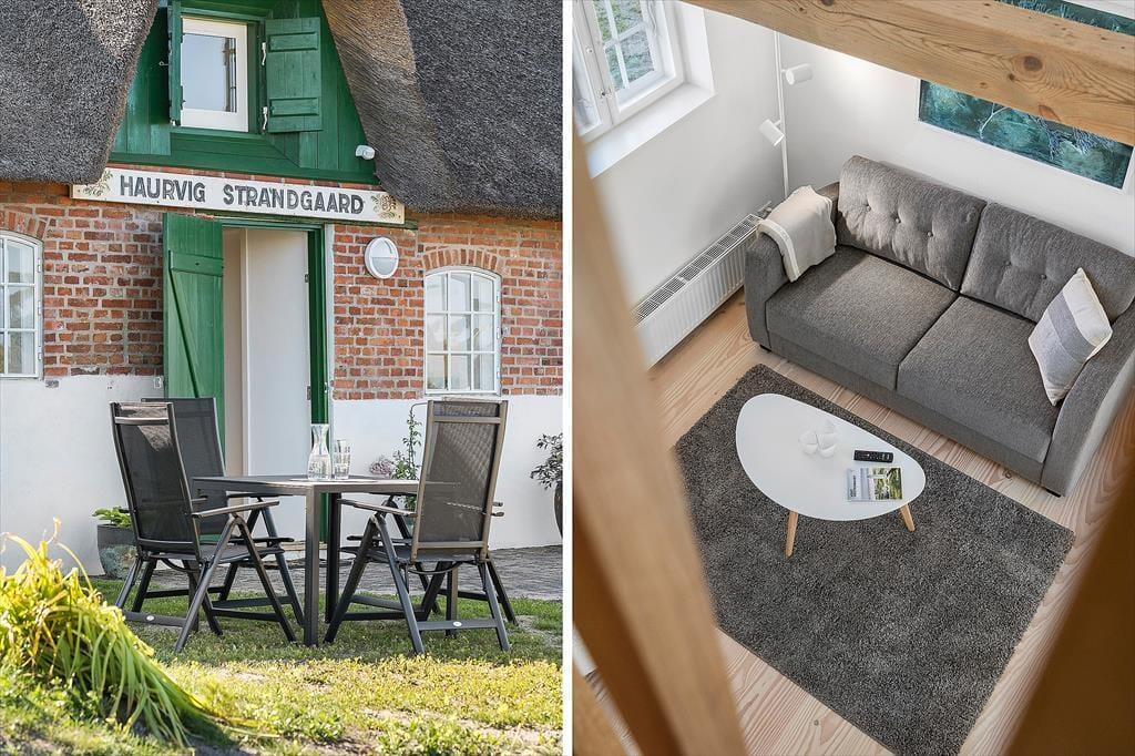 Der reetgedeckte Haurvig Strandgaard ruht bereits seit dem Jahr 1850 in der wunderschönen Westküstenlandschaft. Im Laufe der Jahre wurde er zu einem Vierlängenhof erweitert. Im Jahr 2023 wandelte ein Architekt die östliche Hauslänge in drei moderne Ferienwohnungen um. Diese 30 m² große Wohnung bietet Platz für zwei bis vier Erwachsene und einen Hund. Zwei Schlafplätze befinden sich auf dem gemütlichen Hängeboden, zwei weitere stehen Ihnen in Form eines doppelten Schlafsofas im Wohnraum zur Verfügung. Beim Wohnraum handelt es sich um einen schönen Aufenthaltsraum mit einer stilvollen Möblierung und einer ansprechenden Atmosphäre. Die offene Küche fügt sich harmonisch in den Raum ein. Ein attraktives Badezimmer steht für Sie bereit. Der Eingangsbereich wird mit der Nachbarwohnung geteilt. Es bietet sich an, beide Wohnungen zu buchen, wenn Sie beispielsweise mit einem befreundeten Paar oder Ihren Eltern anreisen möchten.
