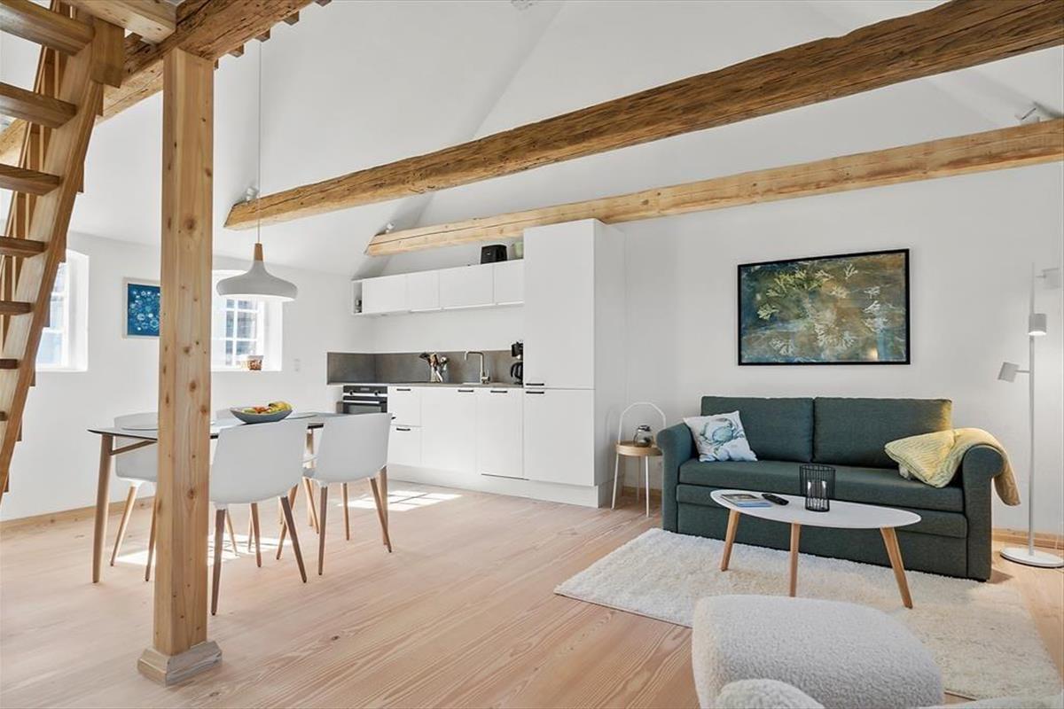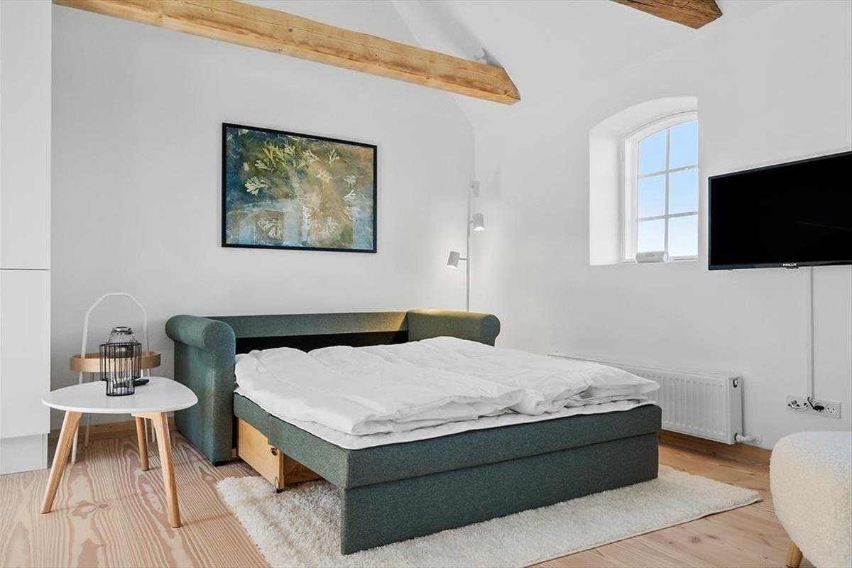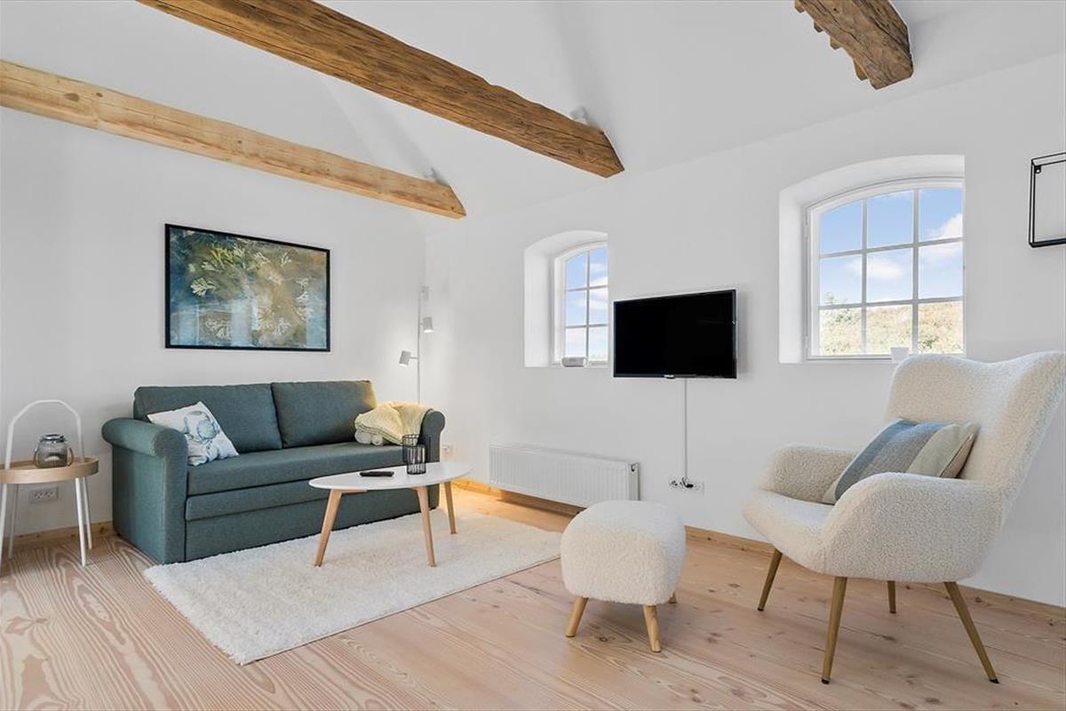 Die 30 m² große Ferienwohnung befindet sich in der östlichen Hoflänge des Haurvig Strandgaards und wurde im Zuge eines großen Renovierungsprojekts im Jahr 2023 eingerichtet. Der beauftragte Architekt sorgte dafür, dass alle Denkmalschutzvorgaben eingehalten wurden. Sie dürfen sich auf erholsame und entspannte Tage in einem ansprechenden, stimmungsvollen und funktionellen Rahmen freuen. Die Wohnung bietet Platz für 2 bis 4 Erwachsene und einen Hund. Zwei Personen können auf dem Schlafboden nächtigen und zwei Personen im Aufenthaltsraum. Bei Letztgenanntem handelt es sich um einen schönen, offen mit der Küche kombinierten Raum, der ein Schlafsofa, einen Esstisch und einen Fernseher umfasst. Neben diesem Raum steht Ihnen ein ansprechendes Badezimmer mit Dusche zur Verfügung. Badezimmer und Wohnraum sind mit einer Fußbodenheizung versehen. Gutes WiFi ist vorhanden. Der Eingangsbereich wird mit der Nachbarwohnung geteilt.
