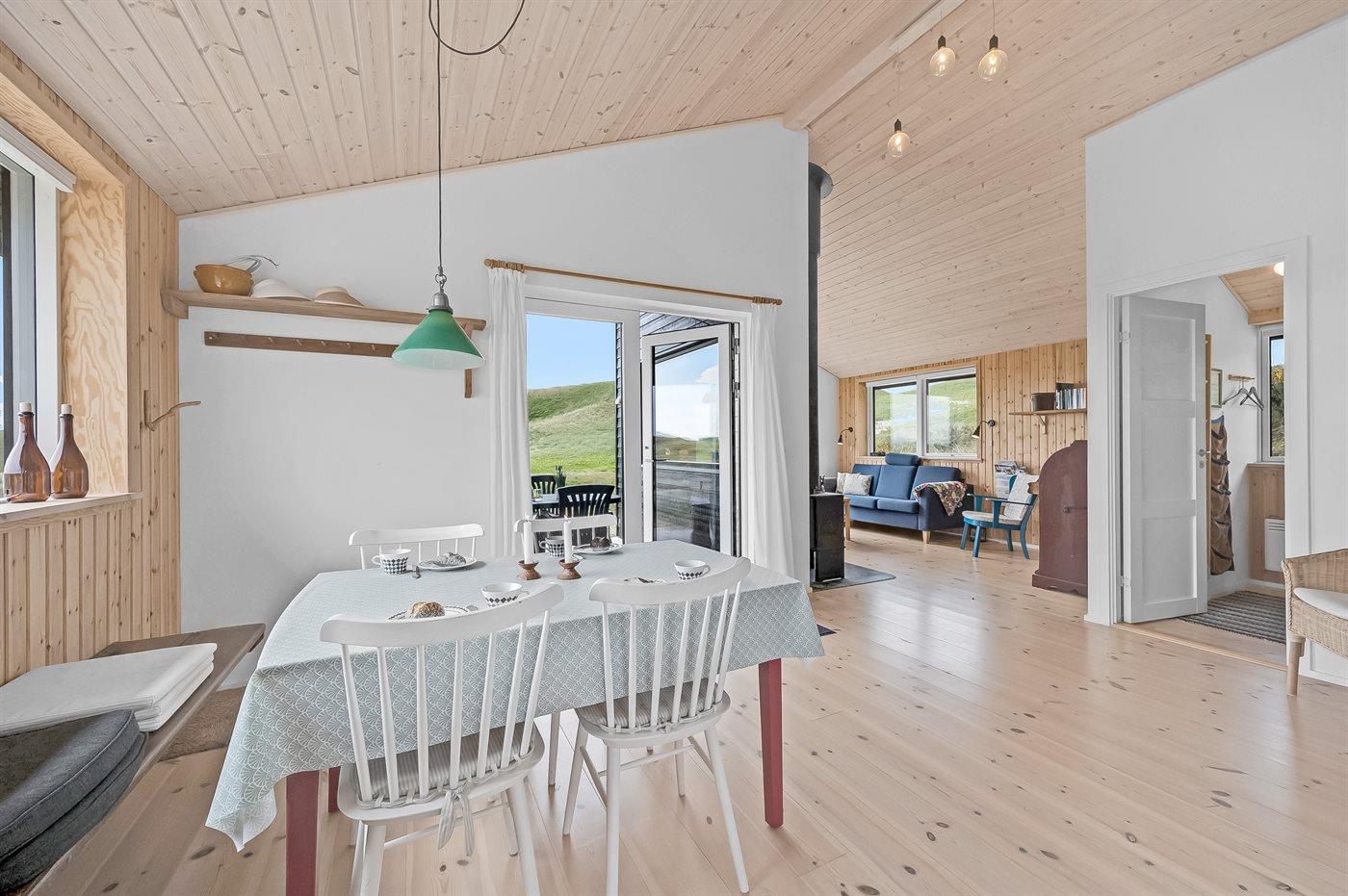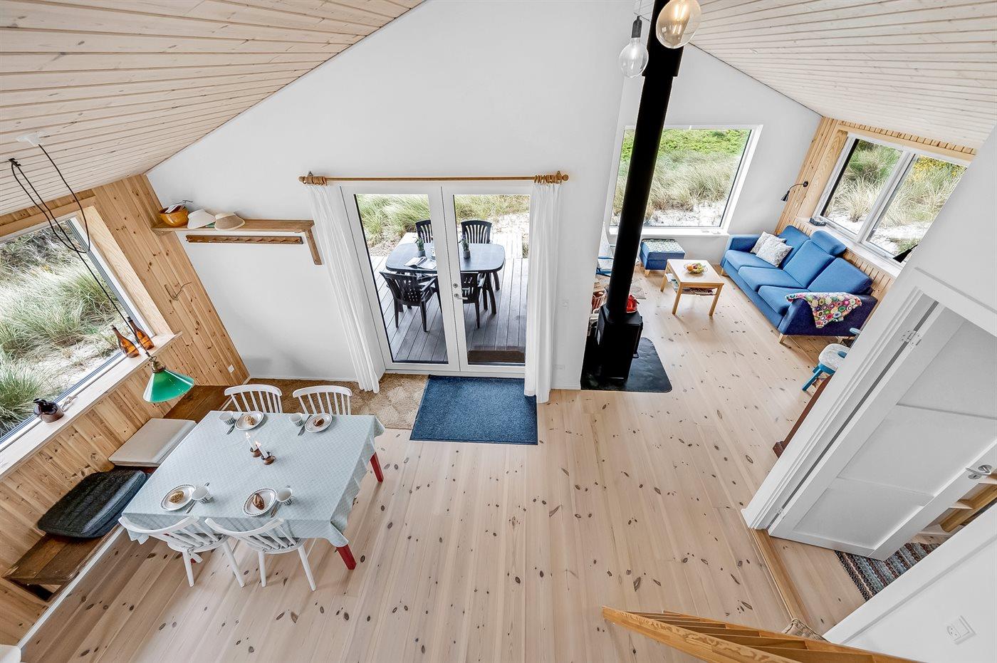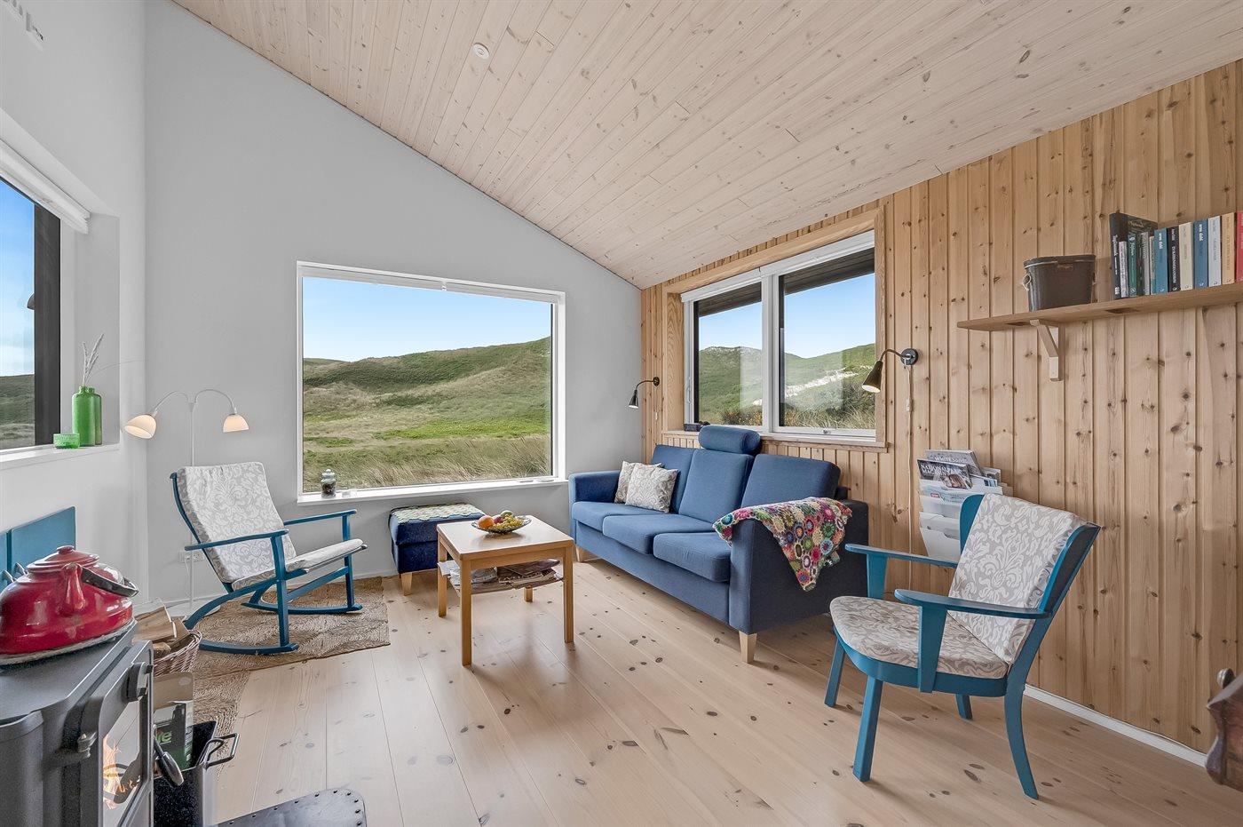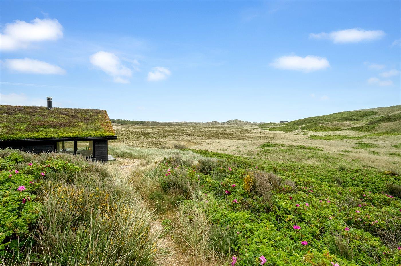 De vakantiewoning is gelegen op een 38000 m² groot Duingrond. Afstand tot de zee 50 m. Afstand tot de fjord 1000 m. Dichtstbijzijnde winkel 3800 m. Bij de vakantiewoning hoort terras. Daarnaast is er een overdekt terras. Parkeerplaats bij het huis.