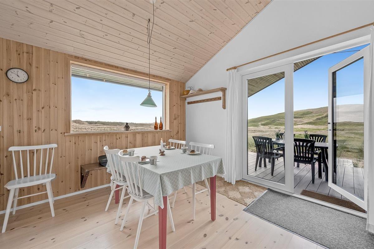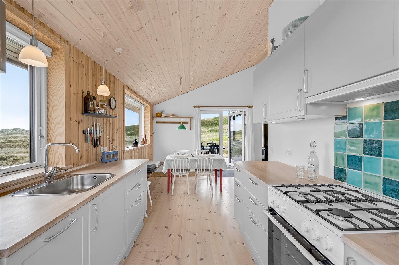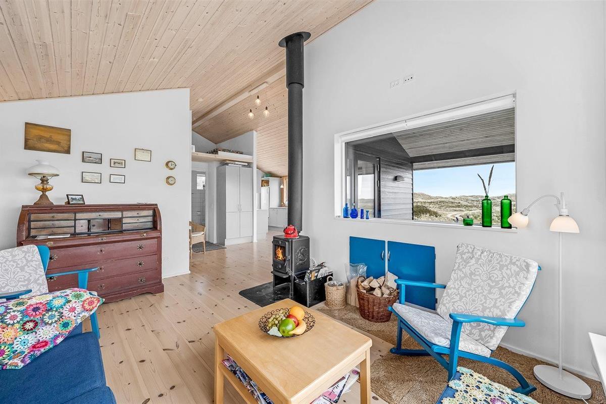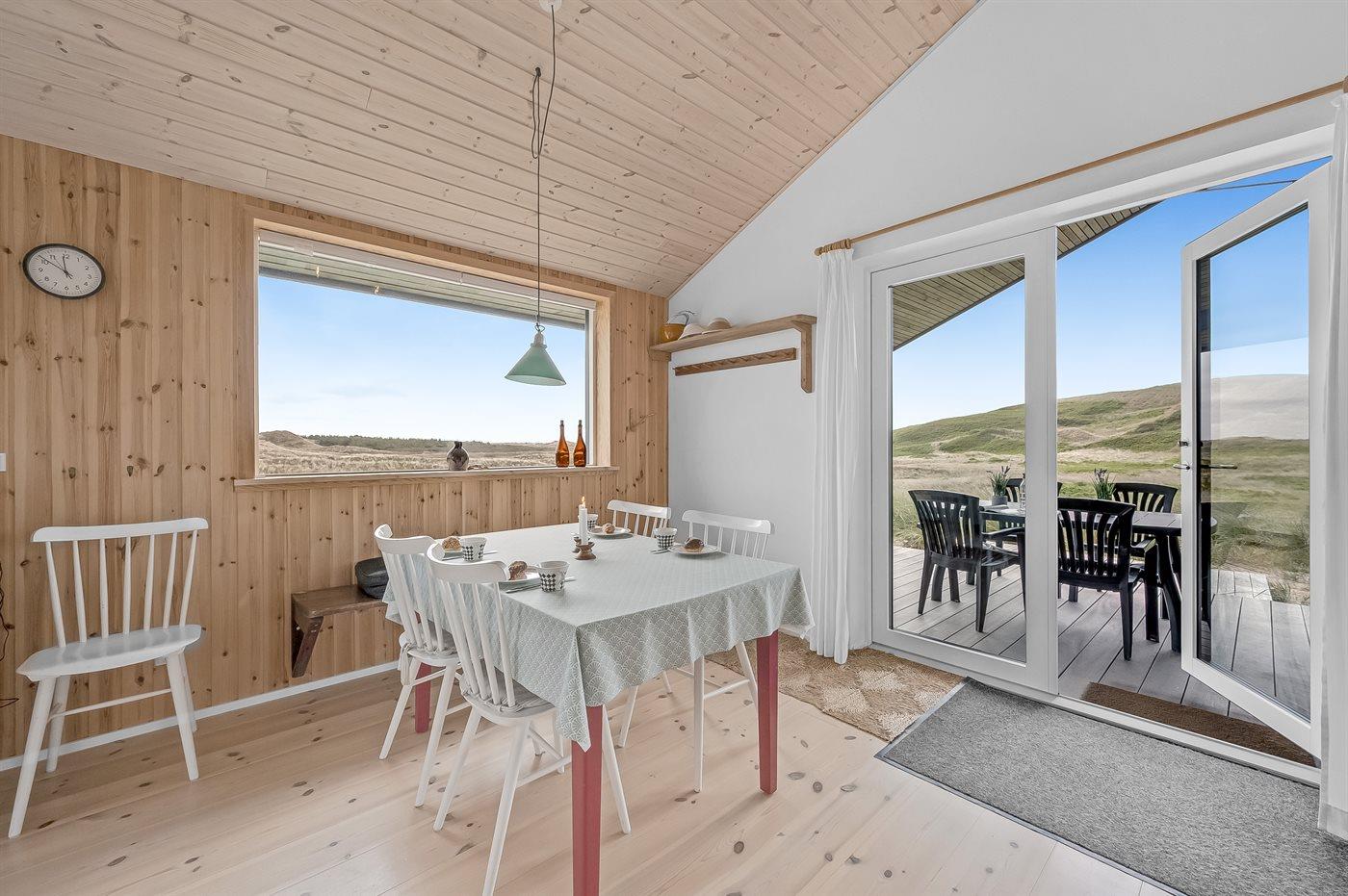 De vakantiewoning is gelegen op een 38000 m² groot Duingrond. Afstand tot de zee 50 m. Afstand tot de fjord 1000 m. Dichtstbijzijnde winkel 3800 m. Bij de vakantiewoning hoort terras. Daarnaast is er een overdekt terras. Parkeerplaats bij het huis.