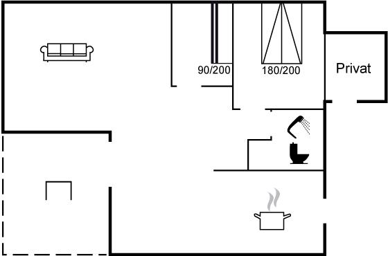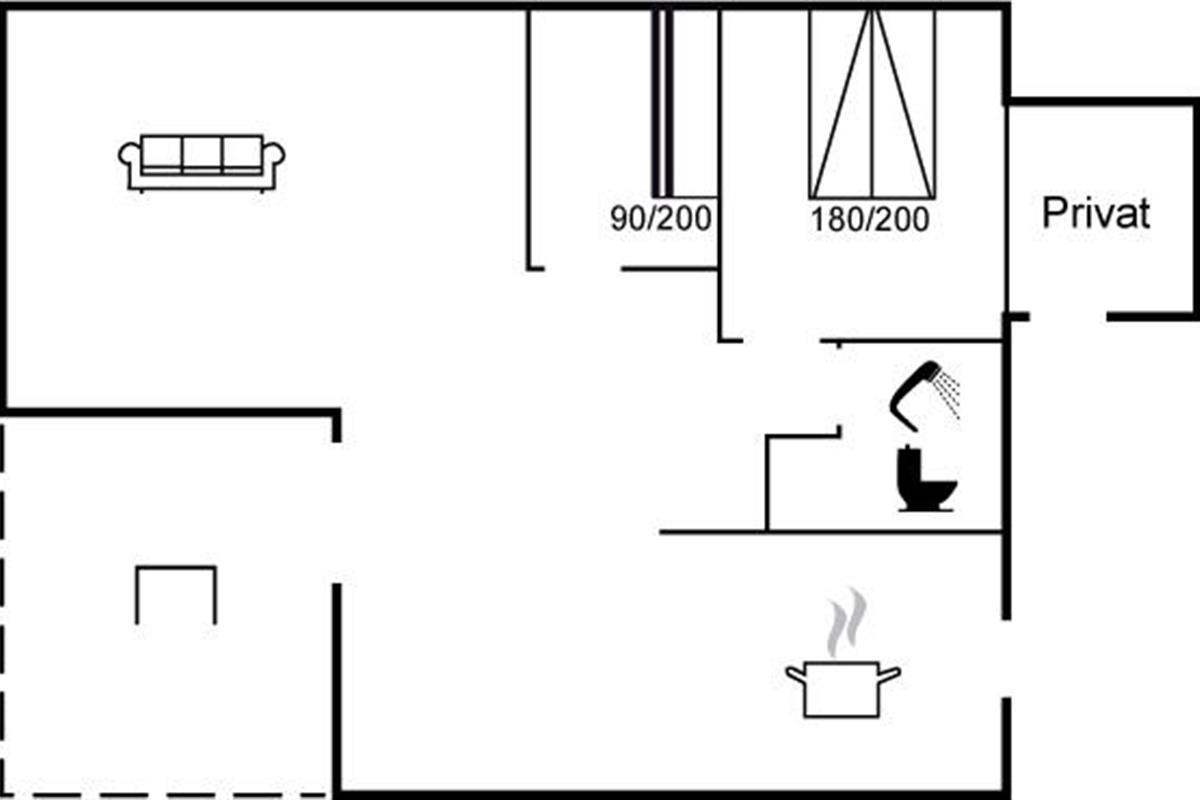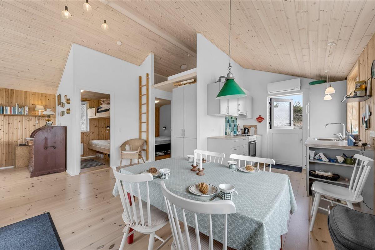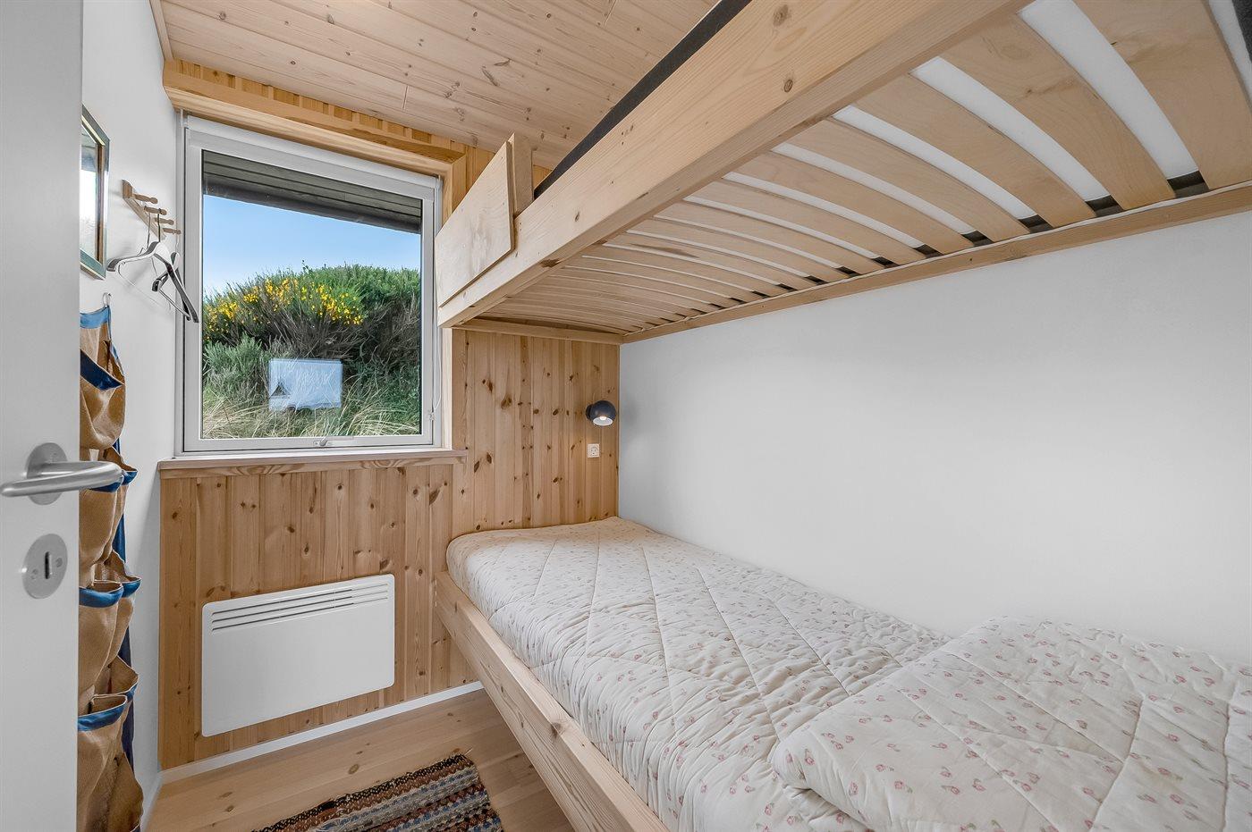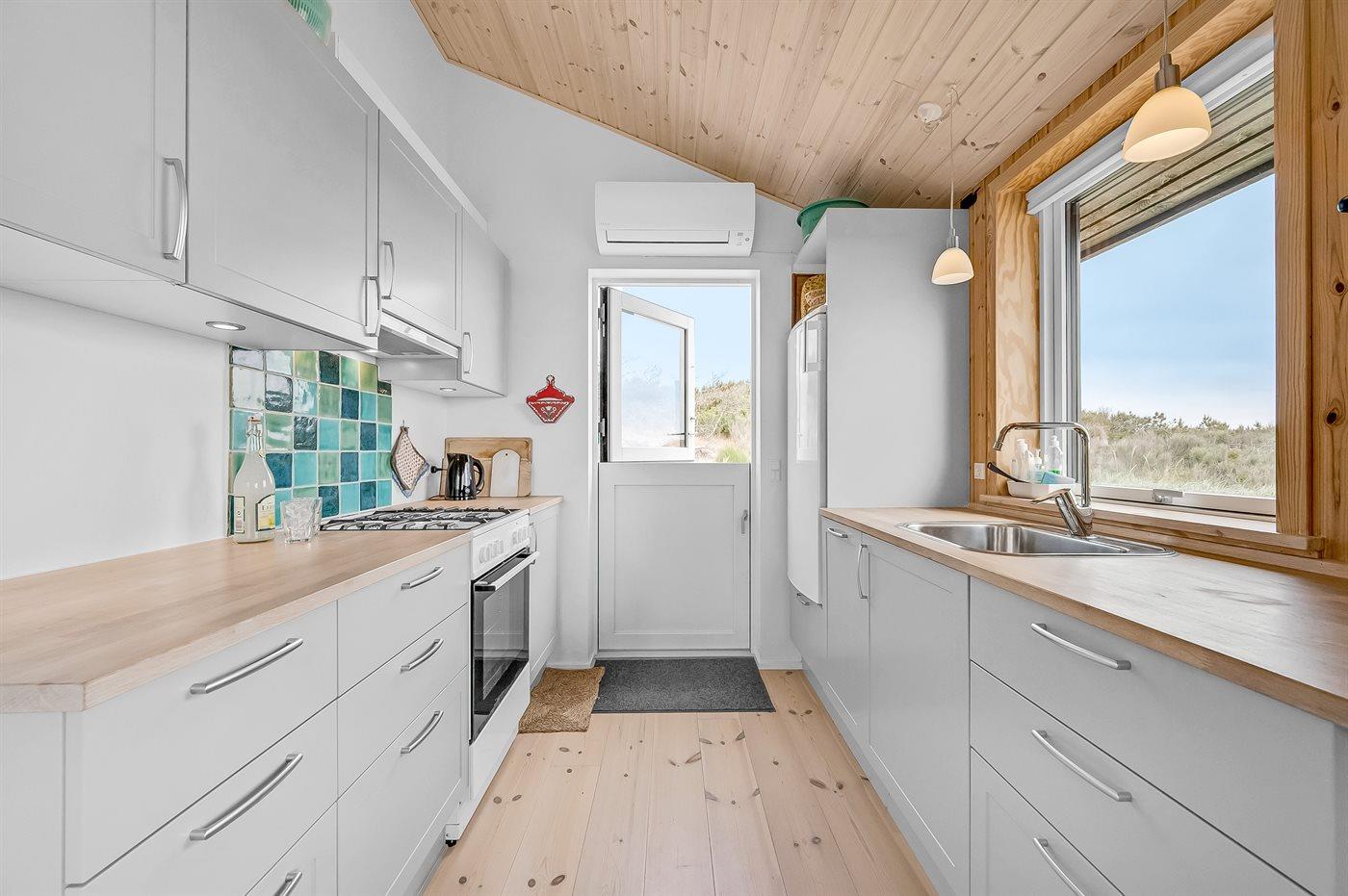 De vakantiewoning is gelegen op een 38000 m² groot Duingrond. Afstand tot de zee 50 m. Afstand tot de fjord 1000 m. Dichtstbijzijnde winkel 3800 m. Bij de vakantiewoning hoort terras. Daarnaast is er een overdekt terras. Parkeerplaats bij het huis.