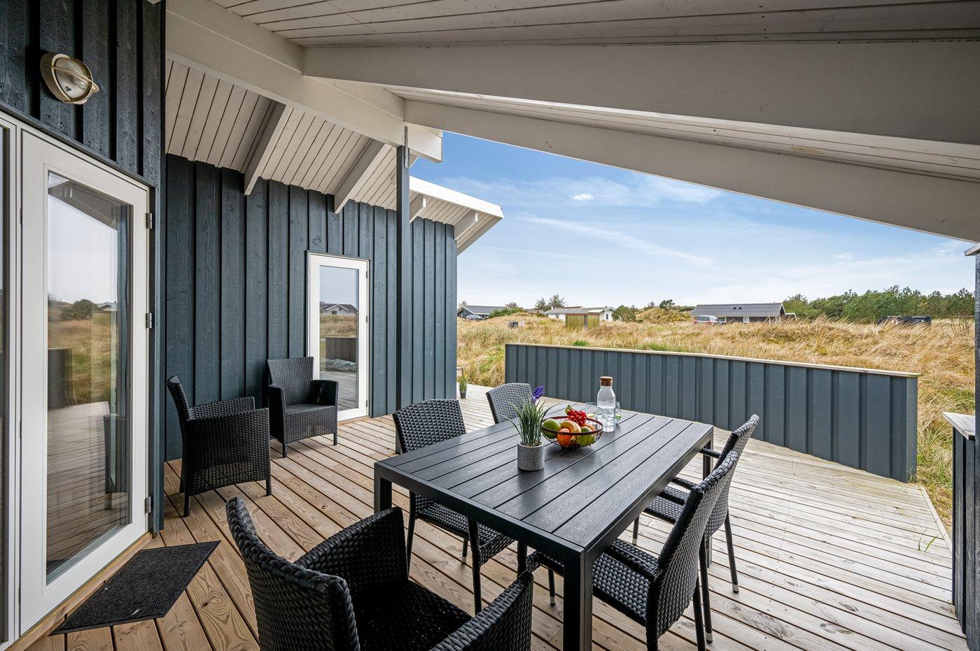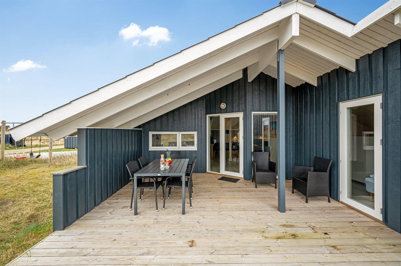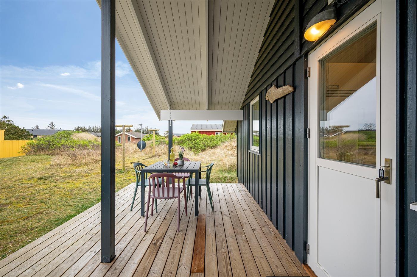 De vakantiewoning is gelegen op een 1400 m² groot natuural grond. Afstand tot de zee 800 m. Afstand tot de fjord 500 m. Dichtstbijzijnde winkel 2000 m. Bij de vakantiewoning hoort 15 m² terras. Daarnaast is er een 25 m² groot overdekt terras. Schommel. Zandbak. Parkeerplaats bij het huis.