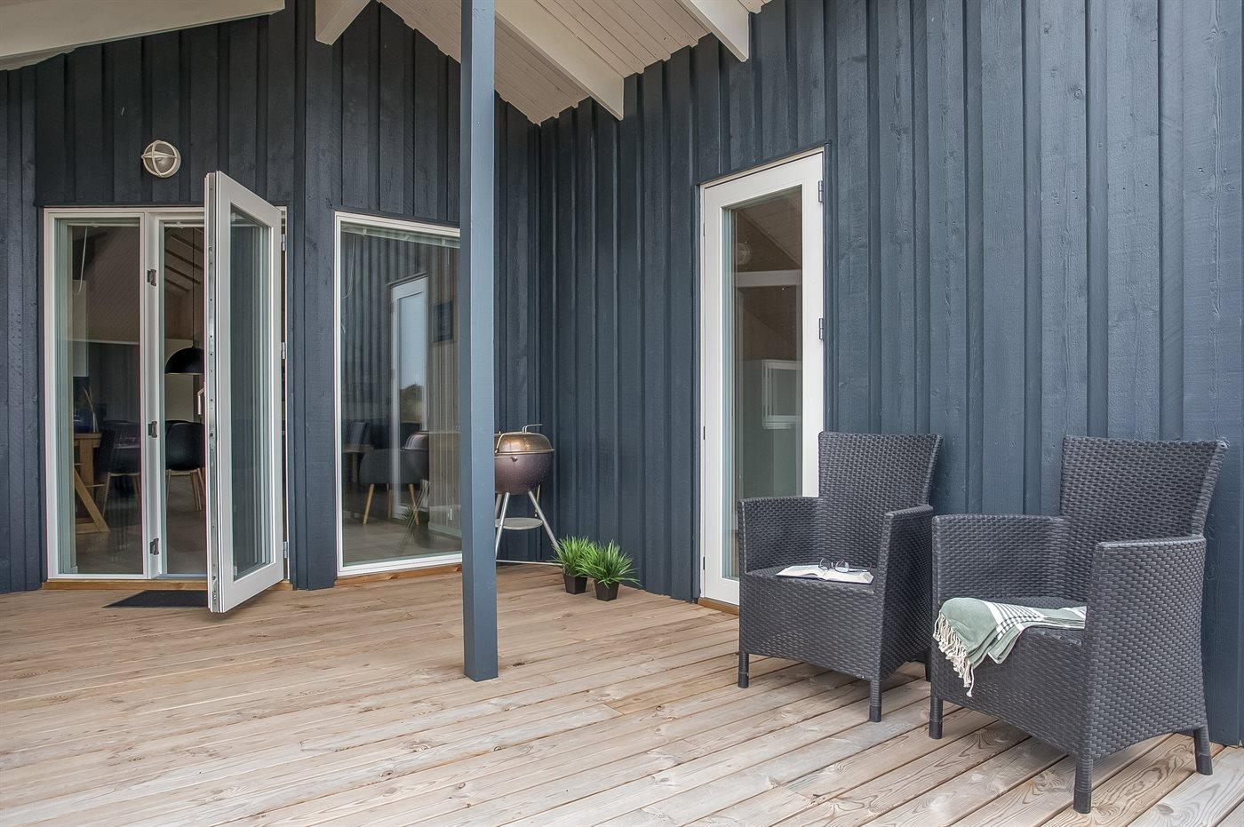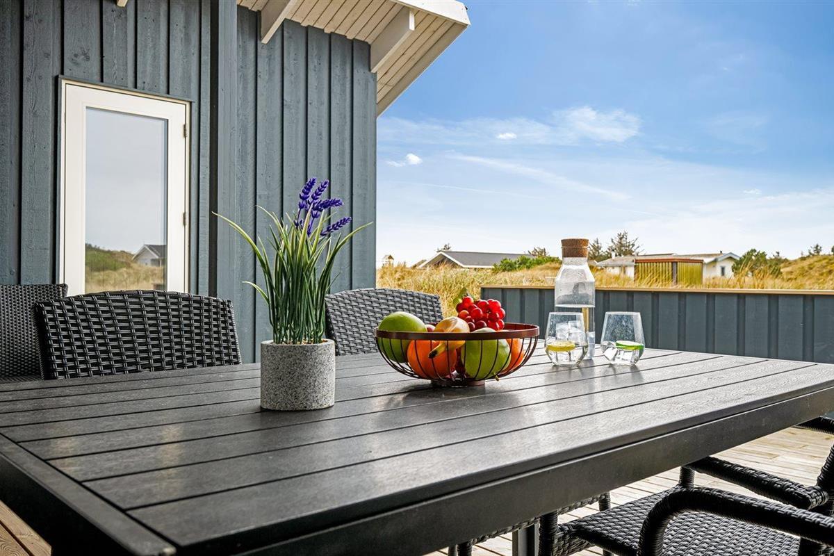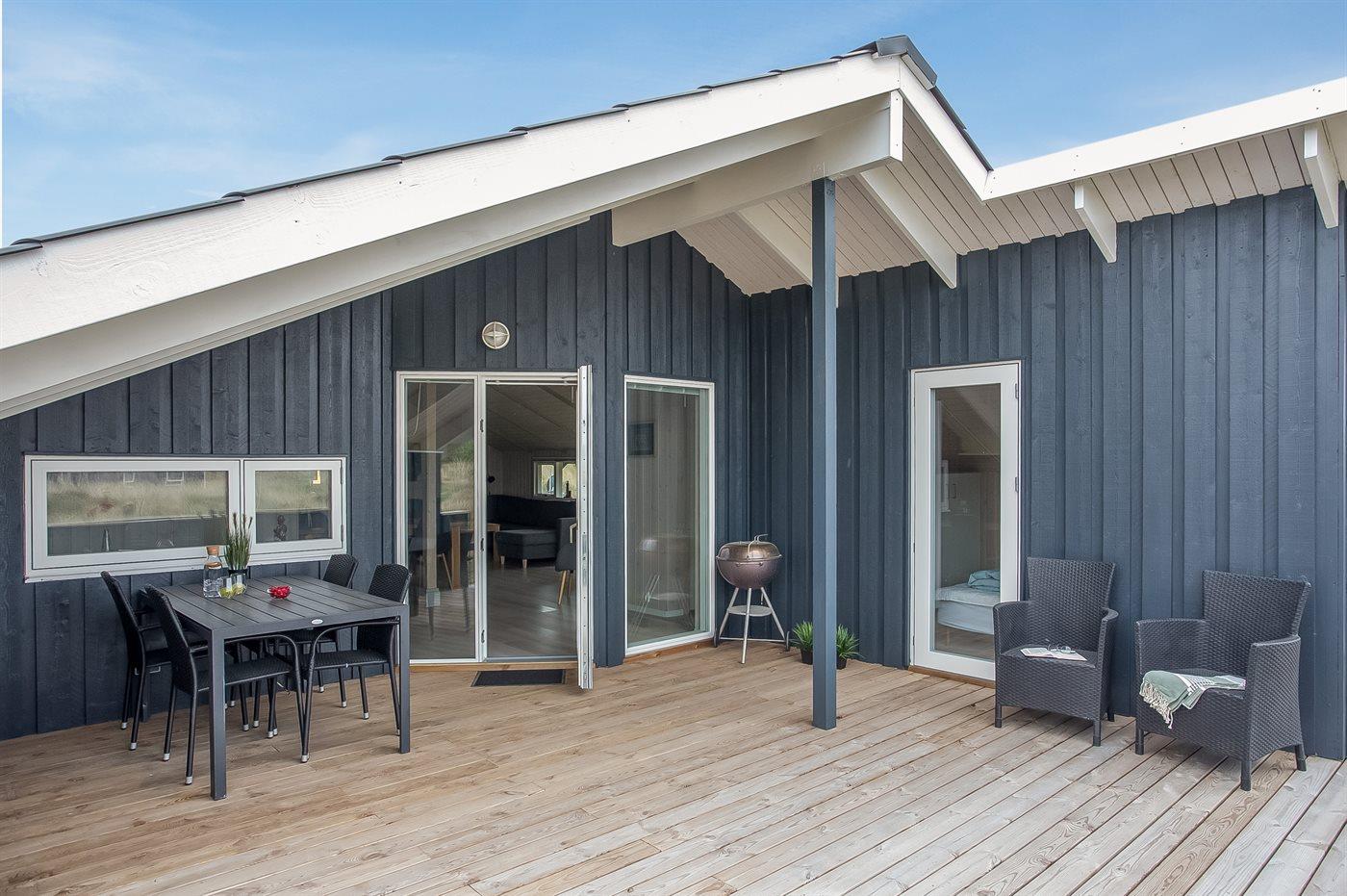 De vakantiewoning is gelegen op een 1400 m² groot natuural grond. Afstand tot de zee 800 m. Afstand tot de fjord 500 m. Dichtstbijzijnde winkel 2000 m. Bij de vakantiewoning hoort 15 m² terras. Daarnaast is er een 25 m² groot overdekt terras. Schommel. Zandbak. Parkeerplaats bij het huis.