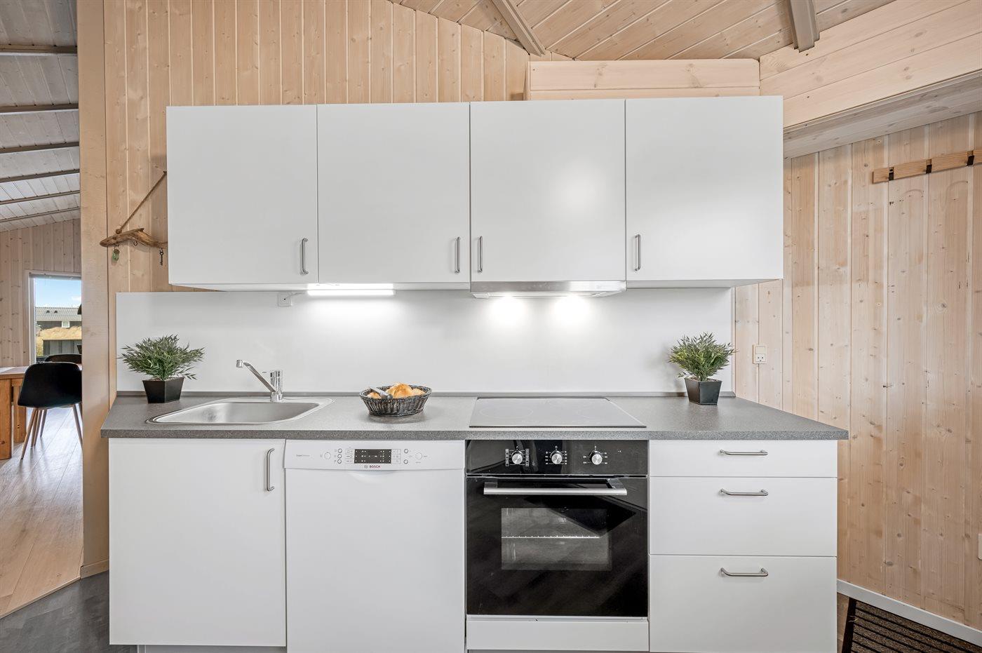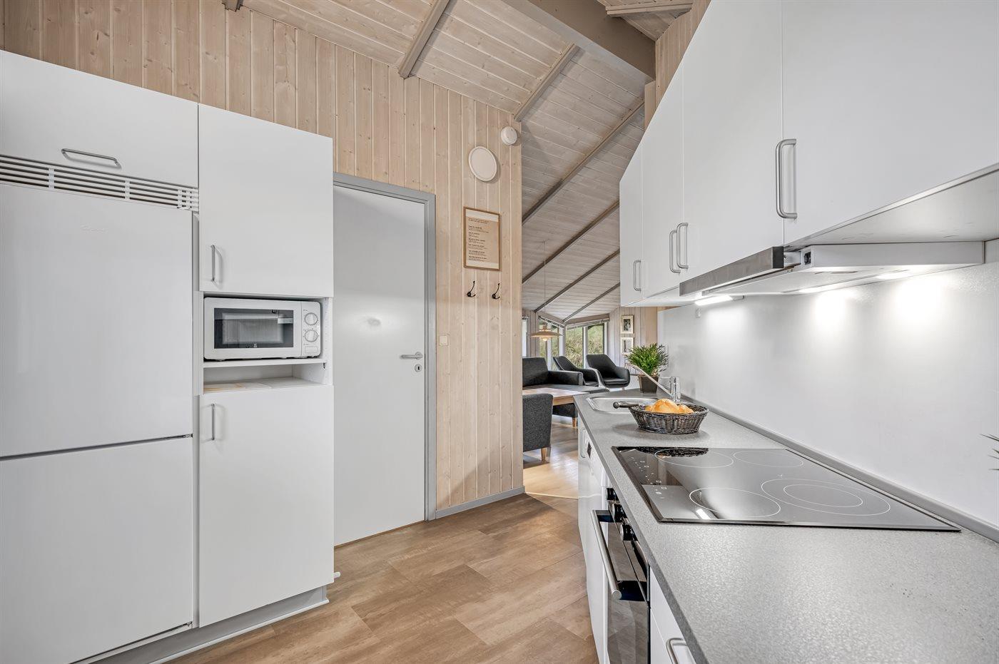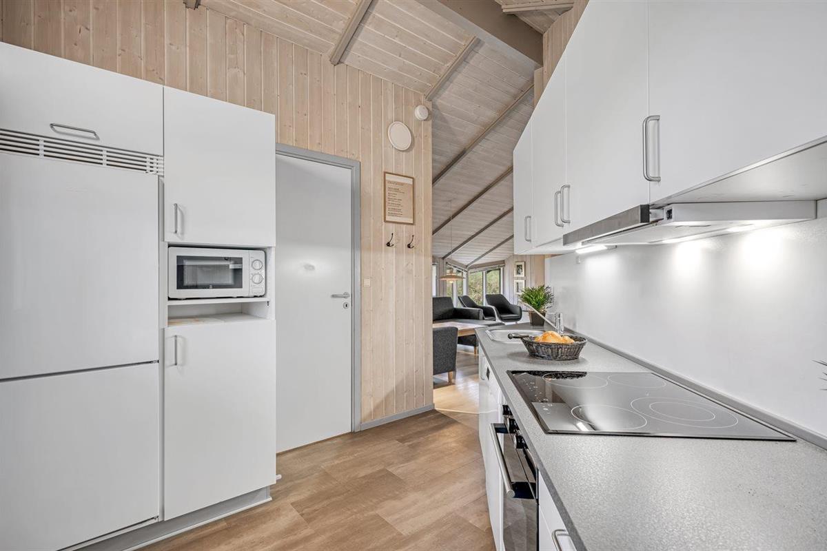 De keuken is uitgerust met koelkast Er zijn 4 keramische kookplaten, bakoven, magnetron en vaatwasser.