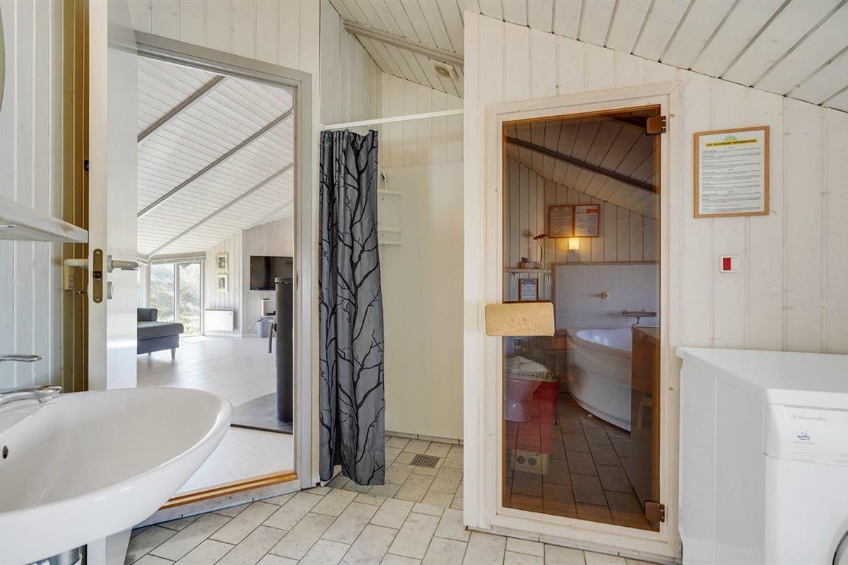 Er is 1 badkamer met douche en 1 toilet.. Er is vloerverwarming in 1 badkamer. De sauna biedt de gelegenheid tot ontspanning.