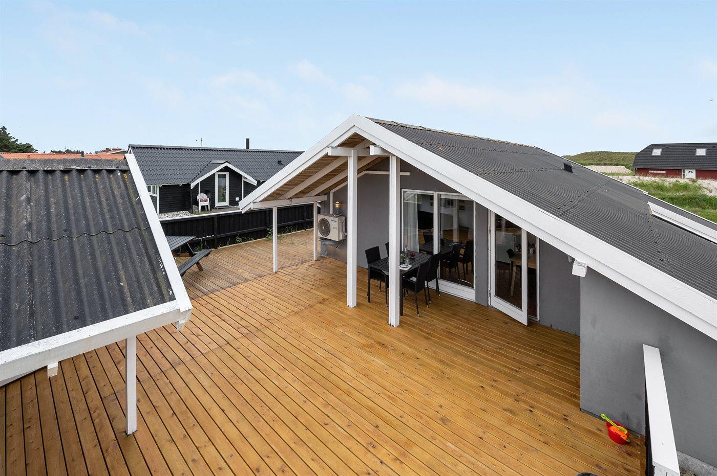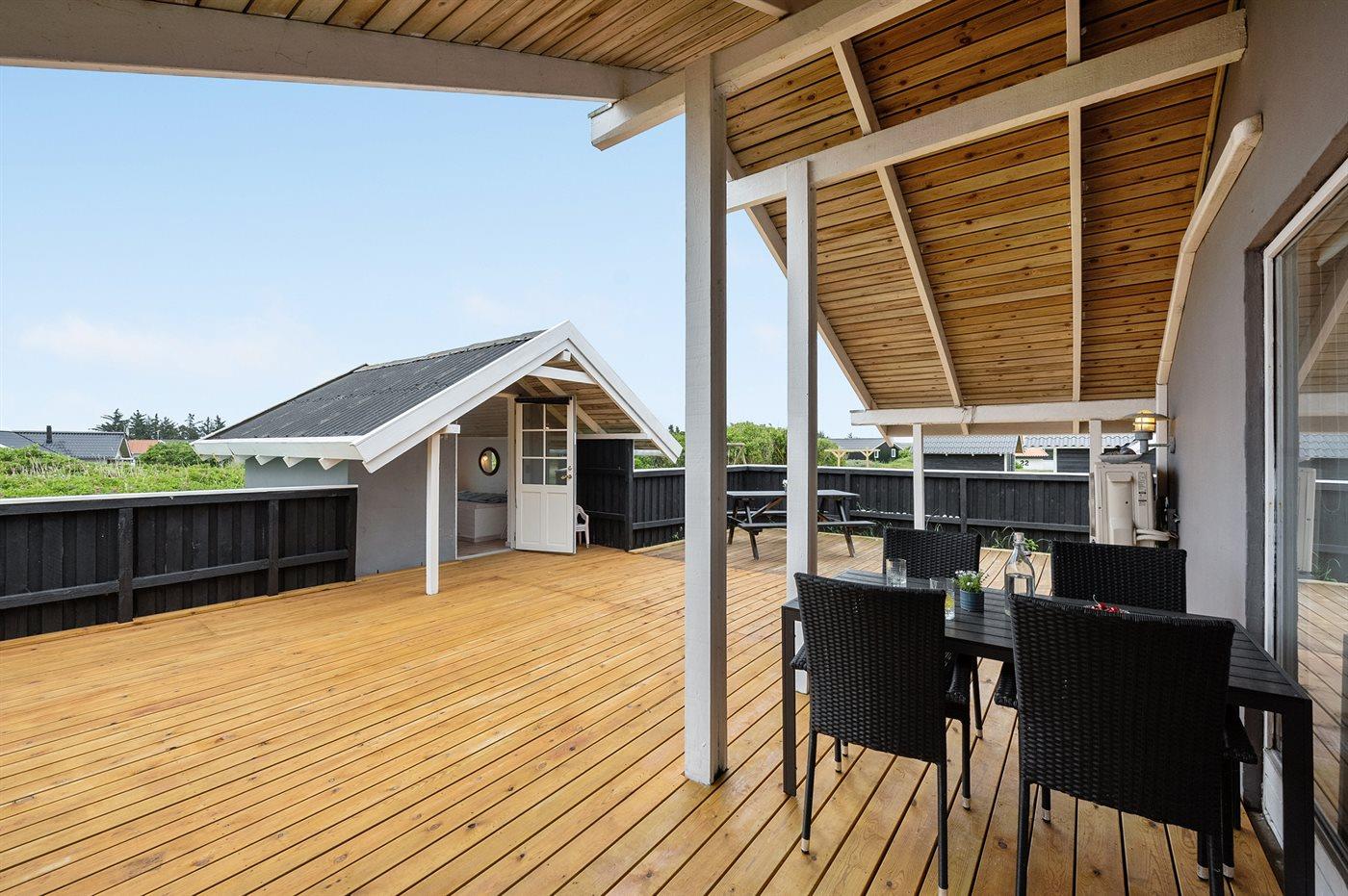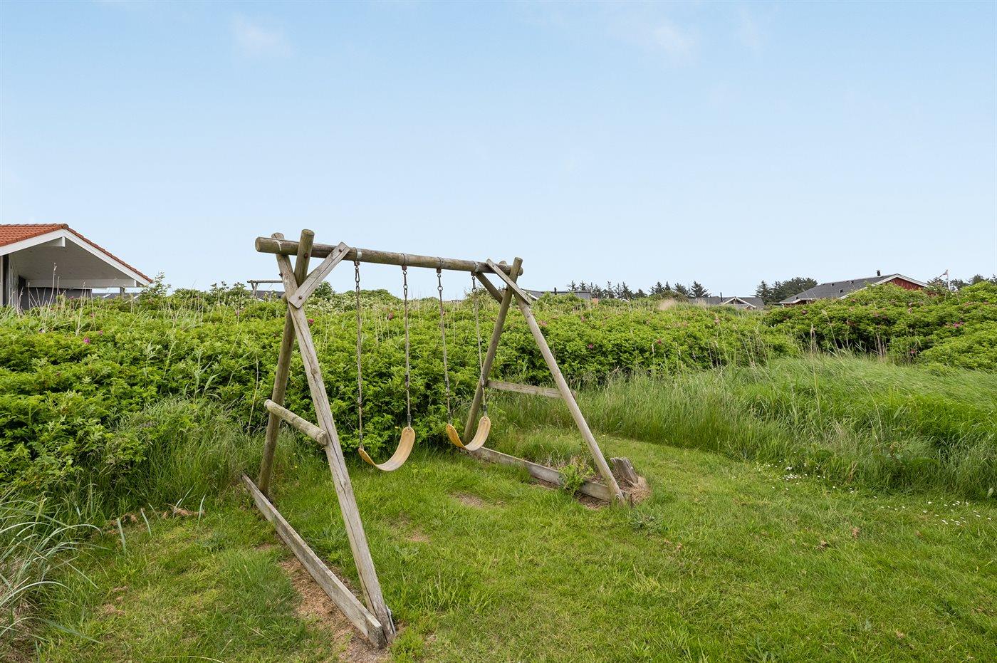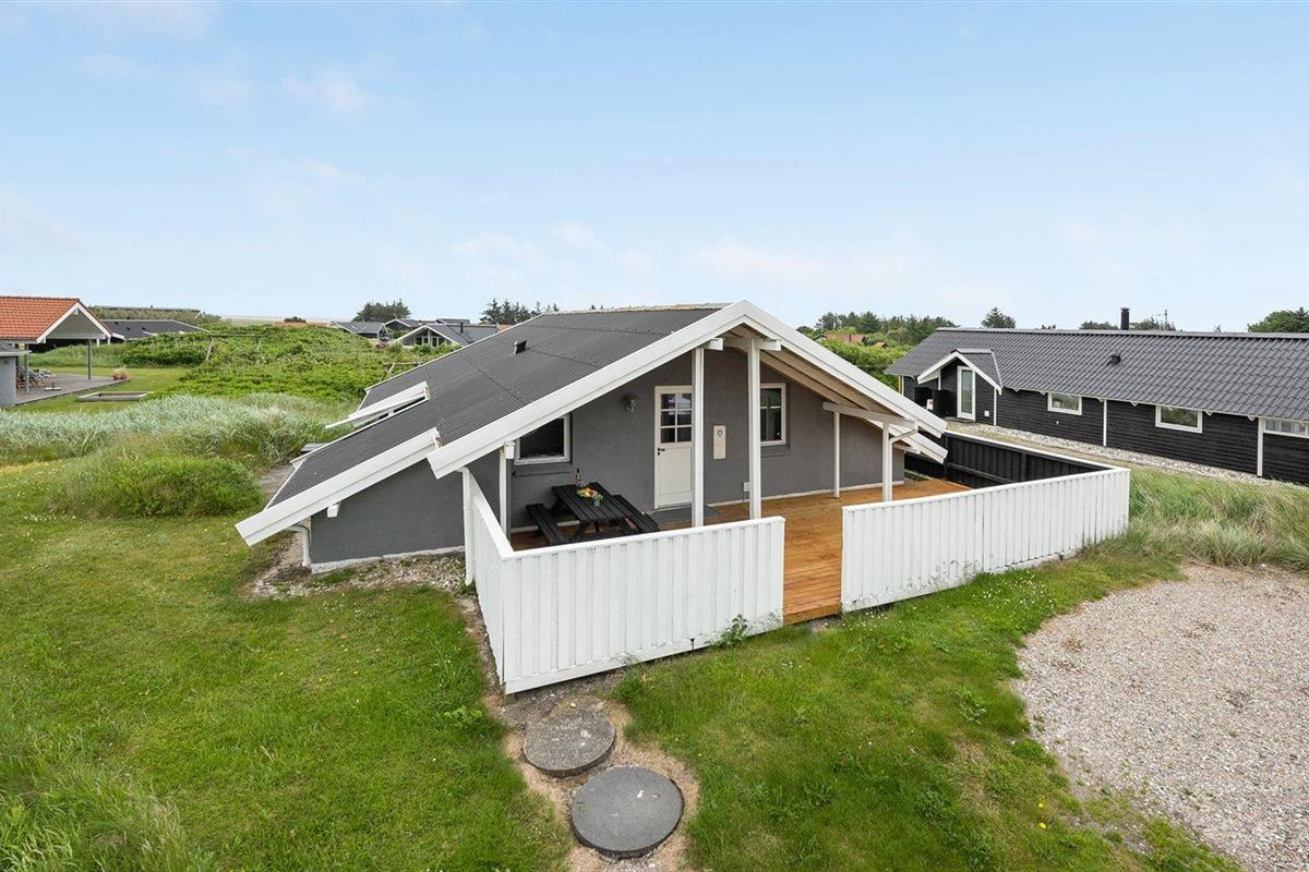 De vakantiewoning is gelegen op een 1200 m² groot natuural grond. Afstand tot de zee 950 m. Afstand tot de fjord 330 m. Dichtstbijzijnde winkel 3000 m. Bij de vakantiewoning hoort 60 m² terras. Daarnaast is er een 12 m² groot overdekt terras. Schommel. Parkeerplaats bij het huis.