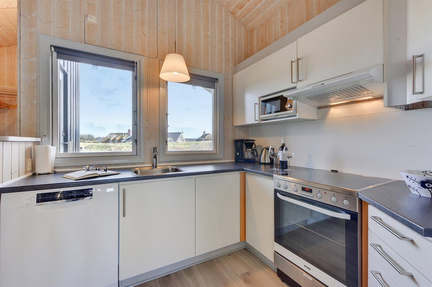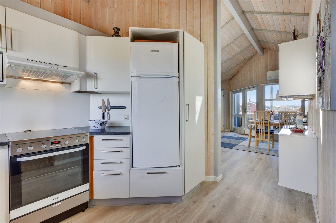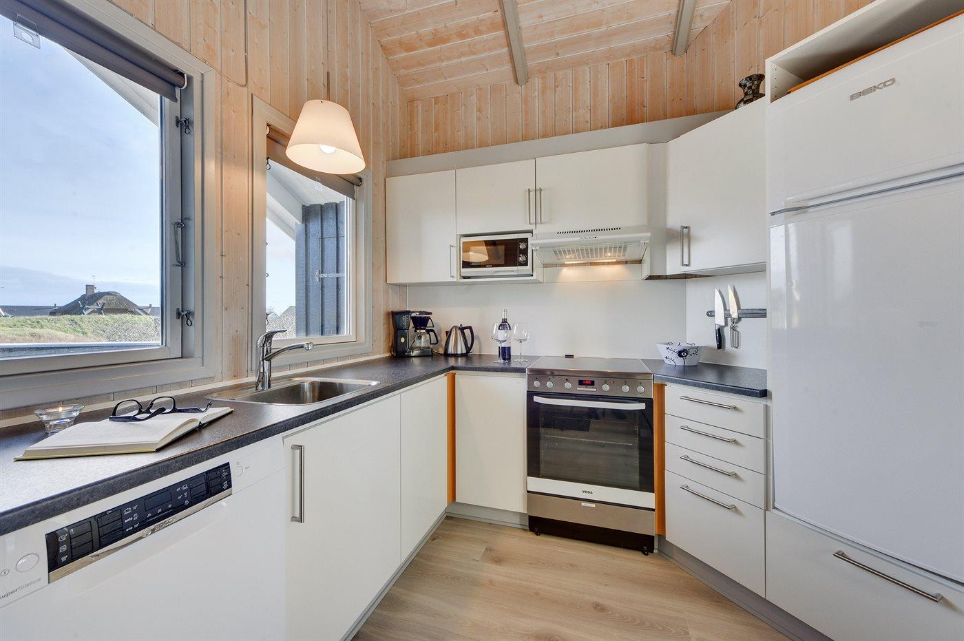 De keuken is uitgerust met koelkast Er zijn 4 keramische kookplaten, bakoven, magnetron en vaatwasser. Vloerverwarming in de keuken.