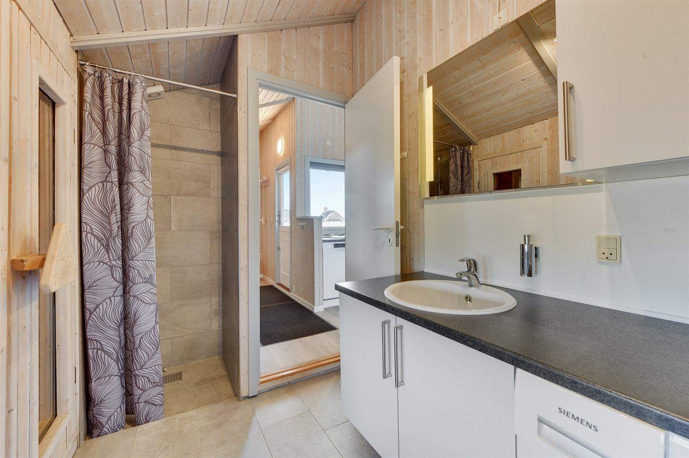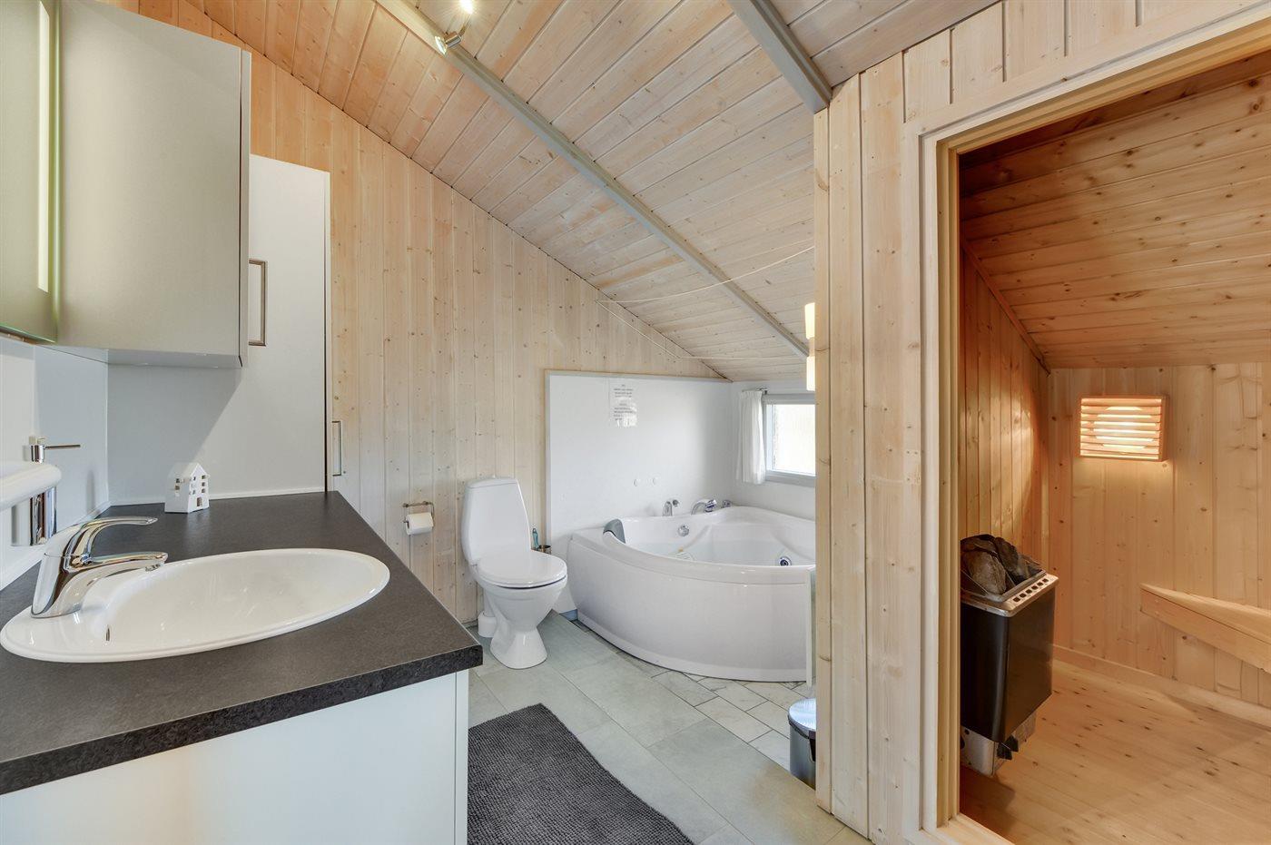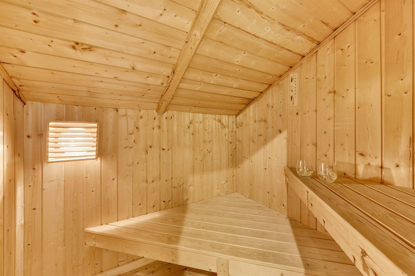 Er is 1 badkamer met douchehok en 2 toiletten, waarvan 1 gastentoilet. Er is vloerverwarming in 1 badkamer. De sauna biedt de gelegenheid tot ontspanning.