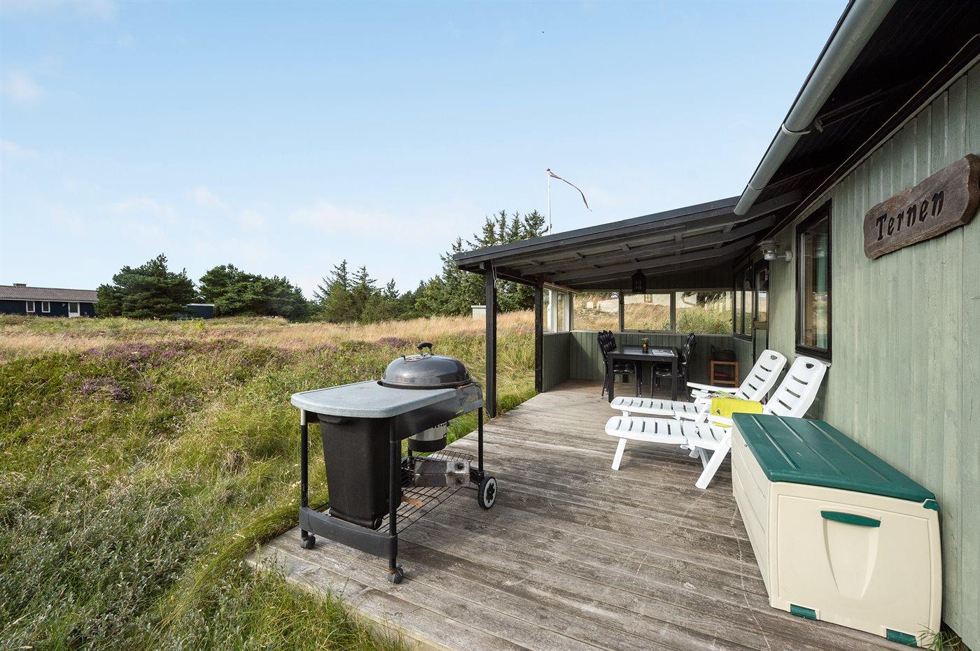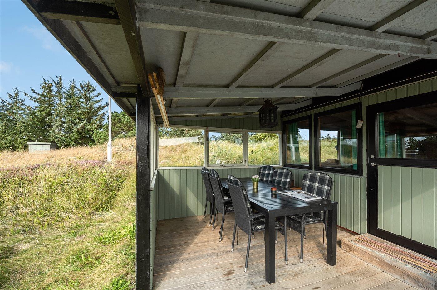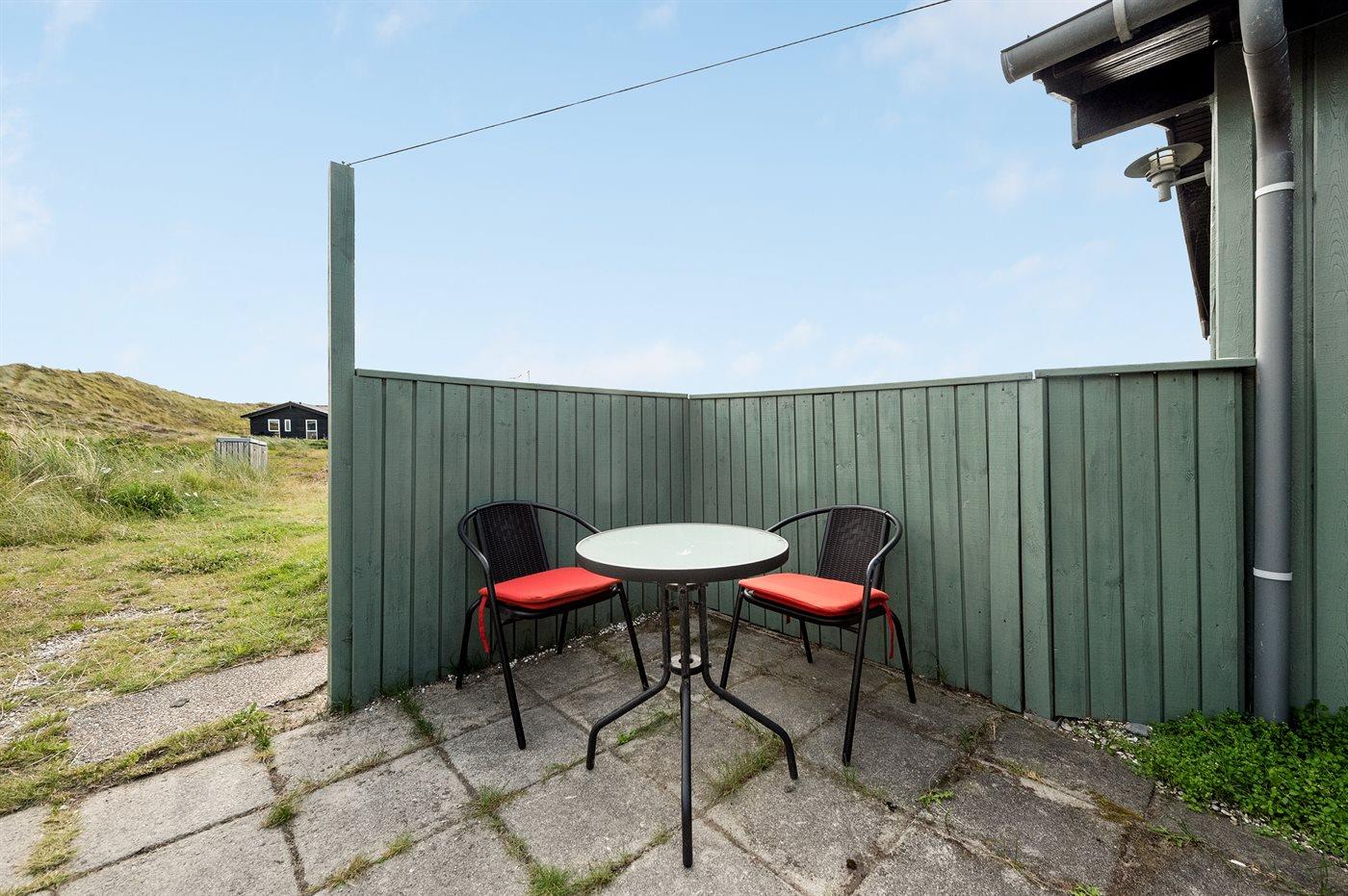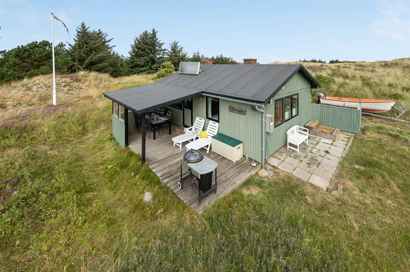 De vakantiewoning is gelegen op een 2500 m² groot natuural grond. Afstand tot de zee 1000 m. Afstand tot de fjord 400 m. Dichtstbijzijnde winkel 4000 m. Daarnaast is er een 16 m² groot overdekt terras. Bij de vakantiewoning hoort terras. Gereedschapsruimte. Schommel. Zandbak. Barbecue. Parkeerplaats bij het huis.
