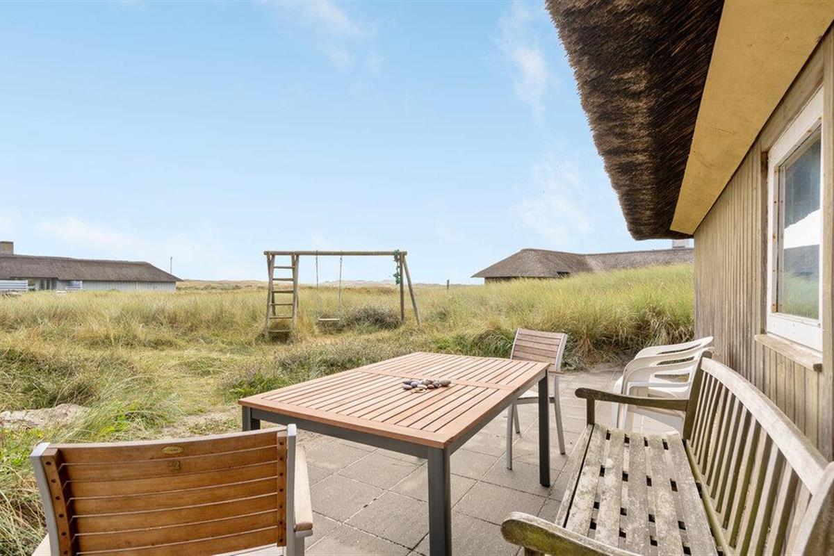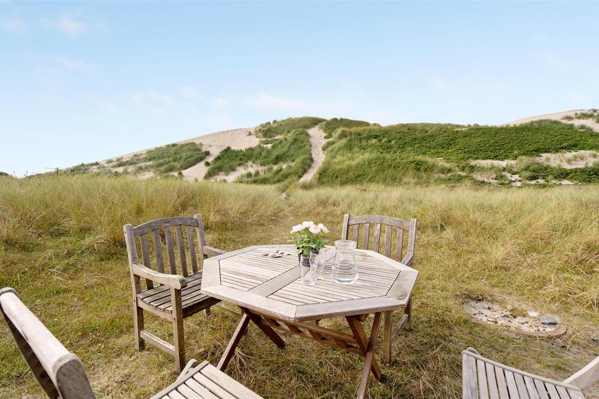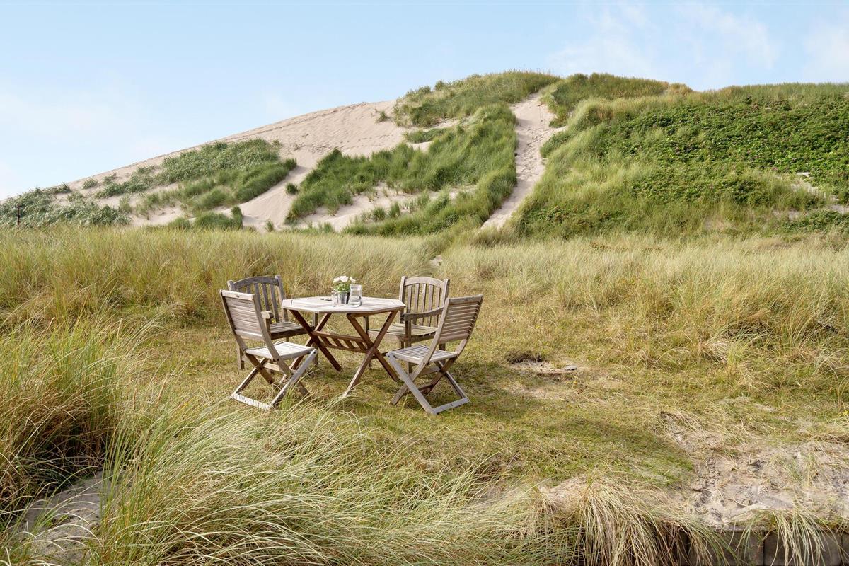 Buiten beschikt het huis over een ruim terras met verschillende zitjes, ideaal voor een ontbijt in de ochtendzon of een ontspannen diner in de buitenlucht. De omliggende duinen nodigen uit tot wandelen en genieten van de frisse zeelucht. Verken de zandstranden, maak een fietstocht langs de kust of bezoek het vissersdorp Hvide Sande met zijn gezellige winkeltjes en restaurants.