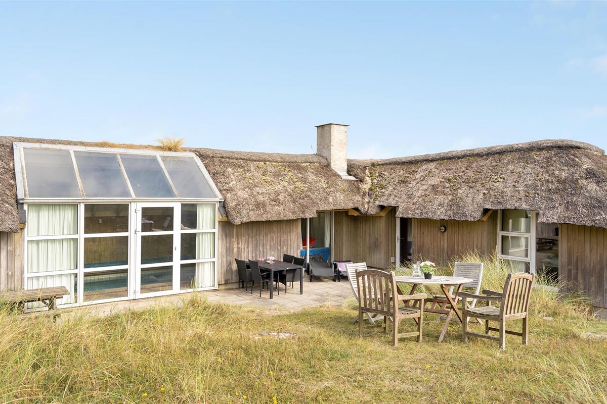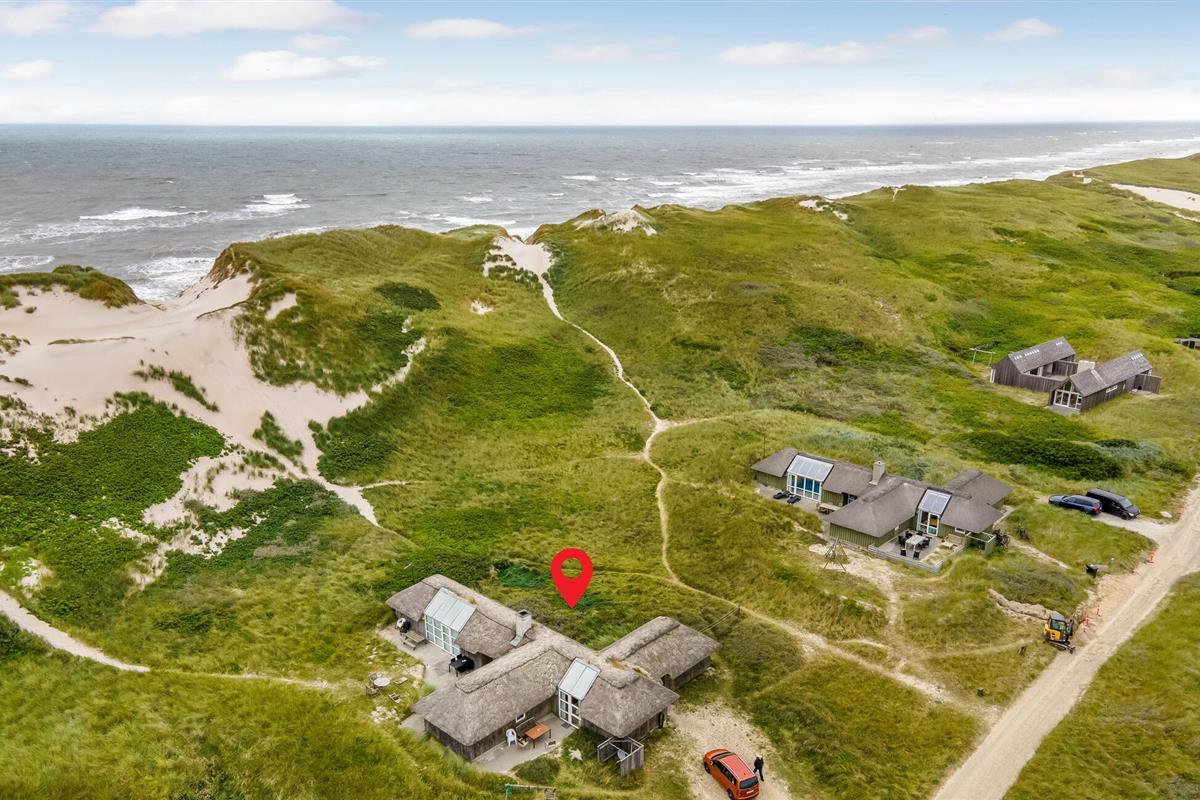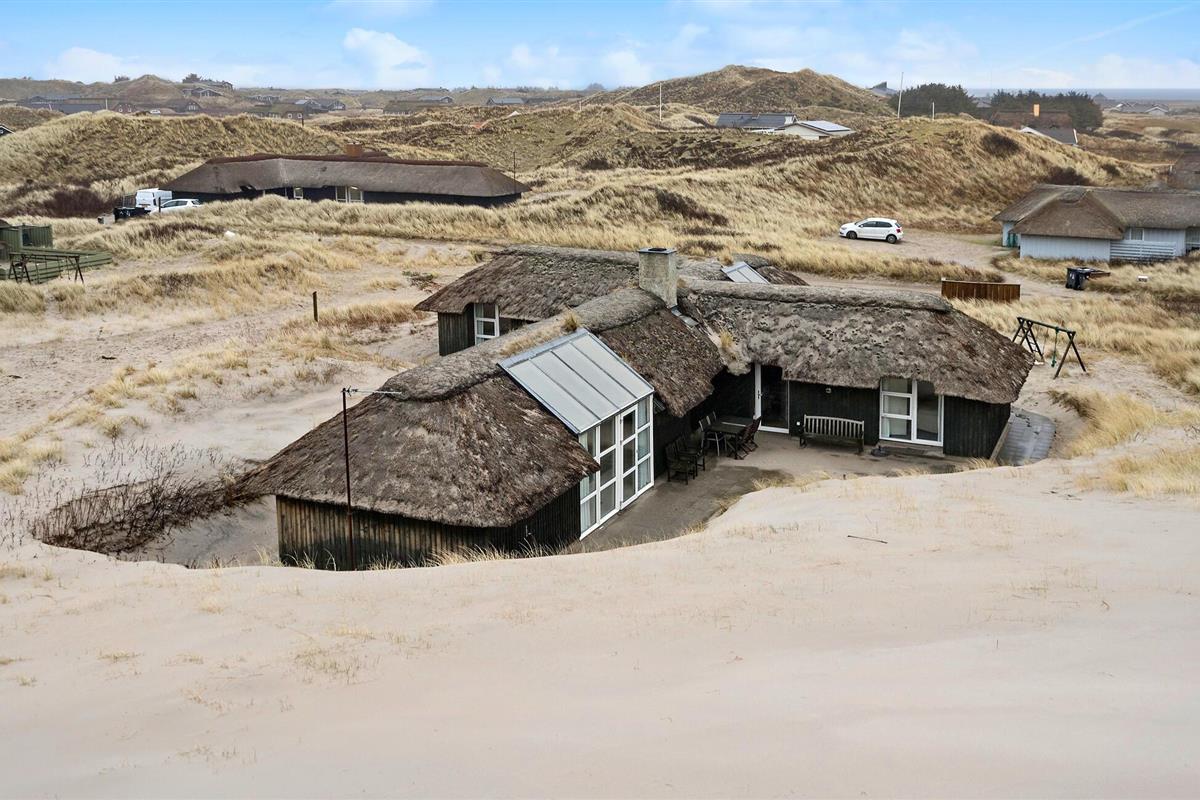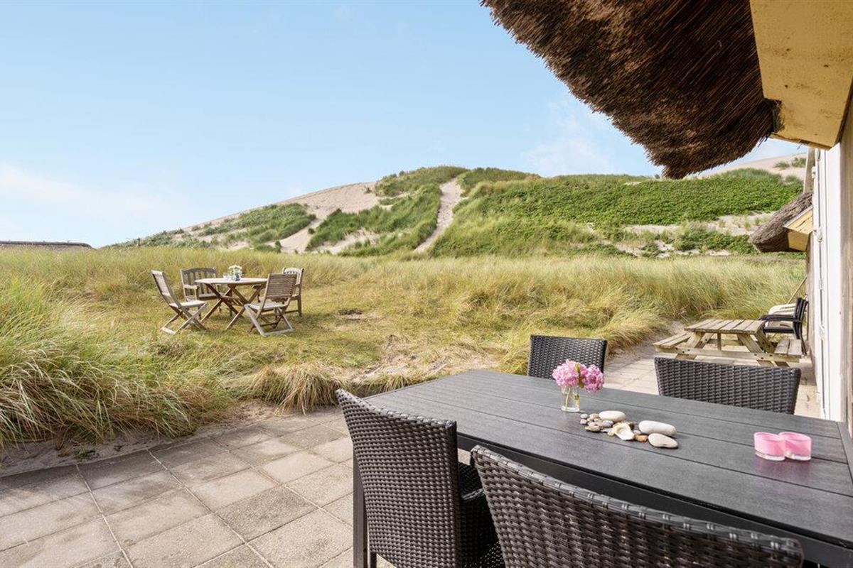 Buiten beschikt het huis over een ruim terras met verschillende zitjes, ideaal voor een ontbijt in de ochtendzon of een ontspannen diner in de buitenlucht. De omliggende duinen nodigen uit tot wandelen en genieten van de frisse zeelucht. Verken de zandstranden, maak een fietstocht langs de kust of bezoek het vissersdorp Hvide Sande met zijn gezellige winkeltjes en restaurants.