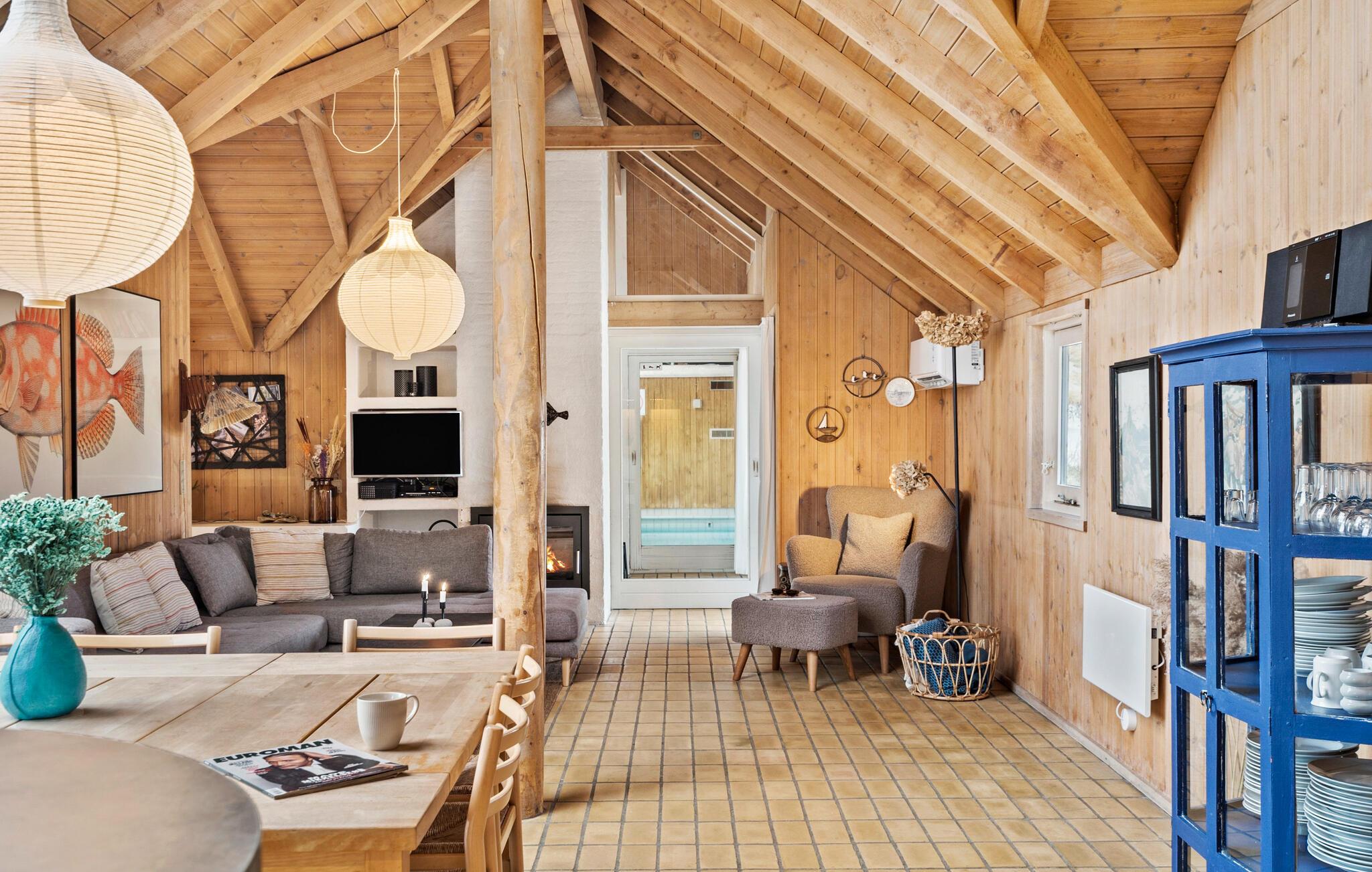 Ontsnap naar dit sfeervolle vakantiehuis bij Hvide Sande met privézwembad, sauna en prachtig uitzicht op de duinen.