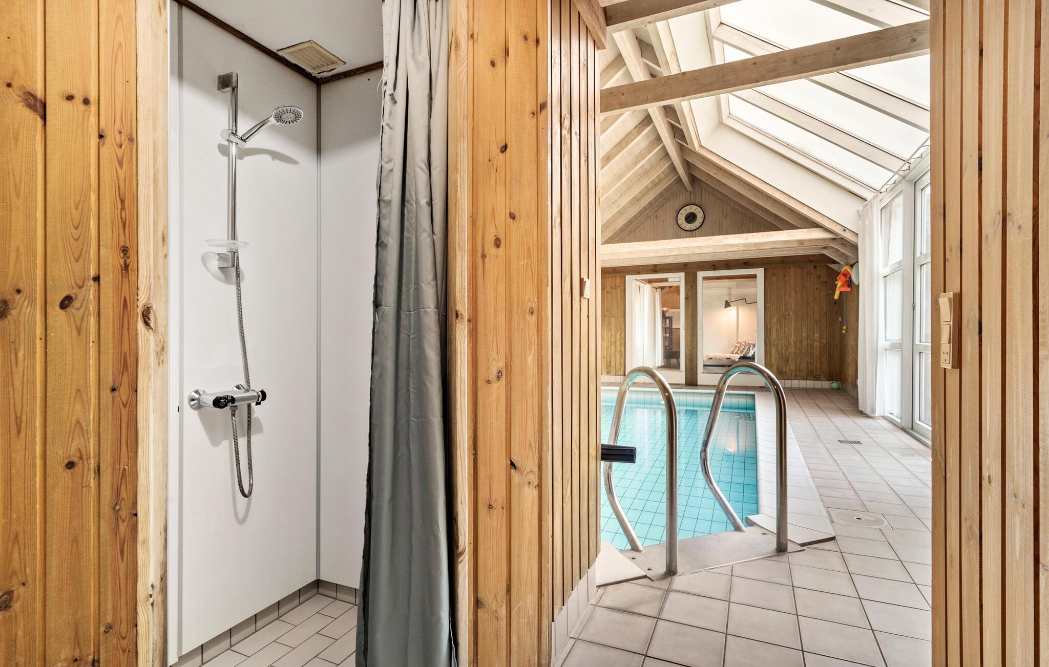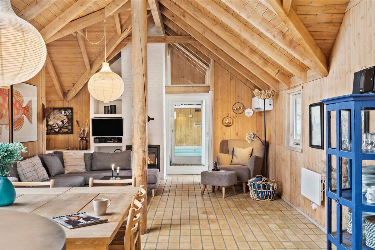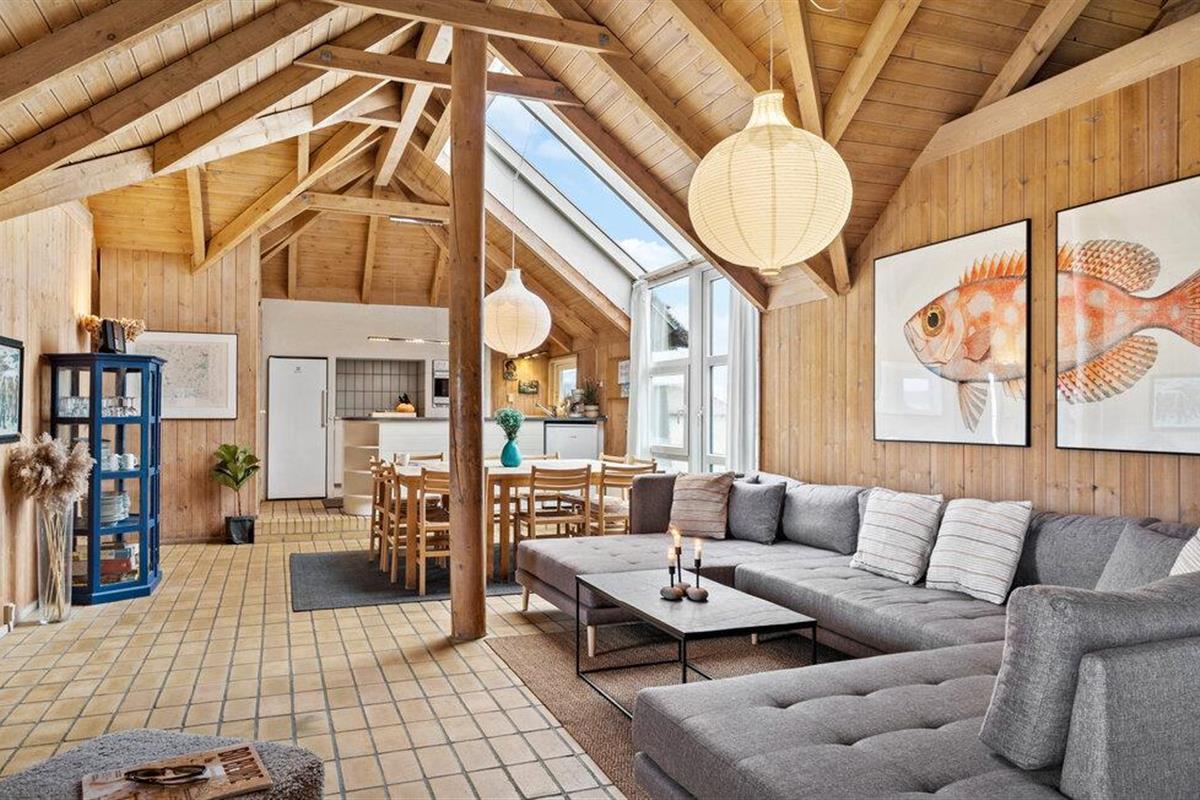 Welkom in je vakantiehuis in Haurvig, dat je een ontspannen vakantie biedt in de schilderachtige natuur van de Deense westkust. De rustige locatie, omgeven door duinen en dicht bij het strand, nodigt je uit om het leven van alledag achter je te laten. Het huis heeft een stijlvolle, open woonkamer met hoge houten plafonds en veel natuurlijk licht. De gezellige zithoek met houtkachel creëert een warme sfeer, ideaal voor ontspannen avonden met het gezin. In de aangrenzende keuken heb je alle gelegenheid om samen maaltijden te bereiden. Geniet ervan aan de eettafel, die voldoende ruimte biedt voor gezelligheid. Een bijzonder hoogtepunt is het privézwembad met grote glazen fronten, waar je bij elk weertype kunt zwemmen. De sauna in het huis zorgt voor extra ontspanning. Vier van de slaapgedeeltes in het huis bevinden zich op een slaapzolder, die vooral geschikt is voor kinderen.