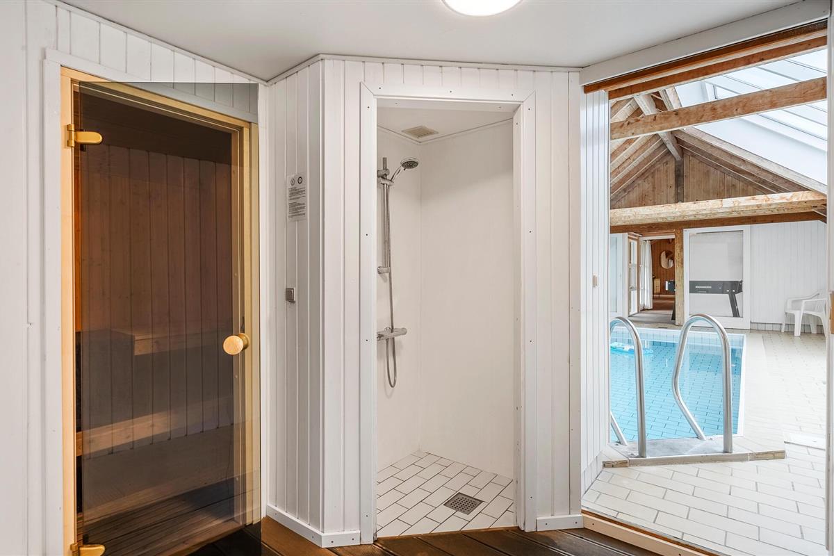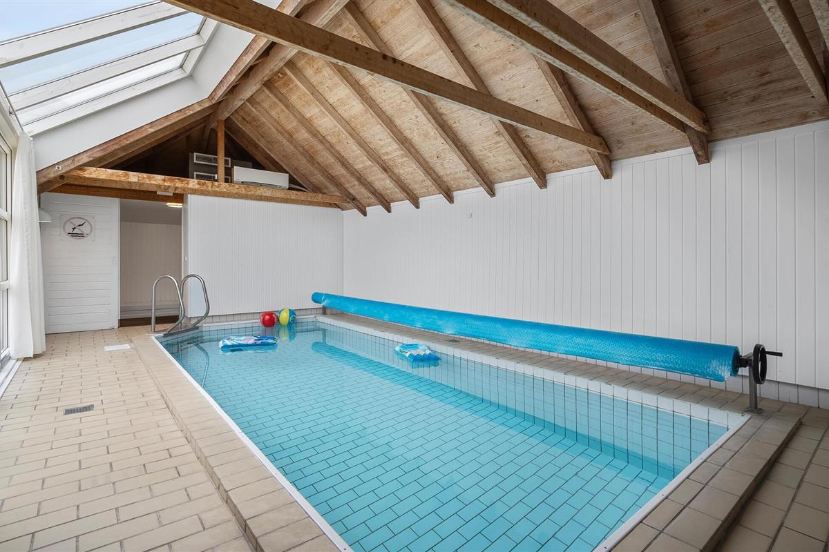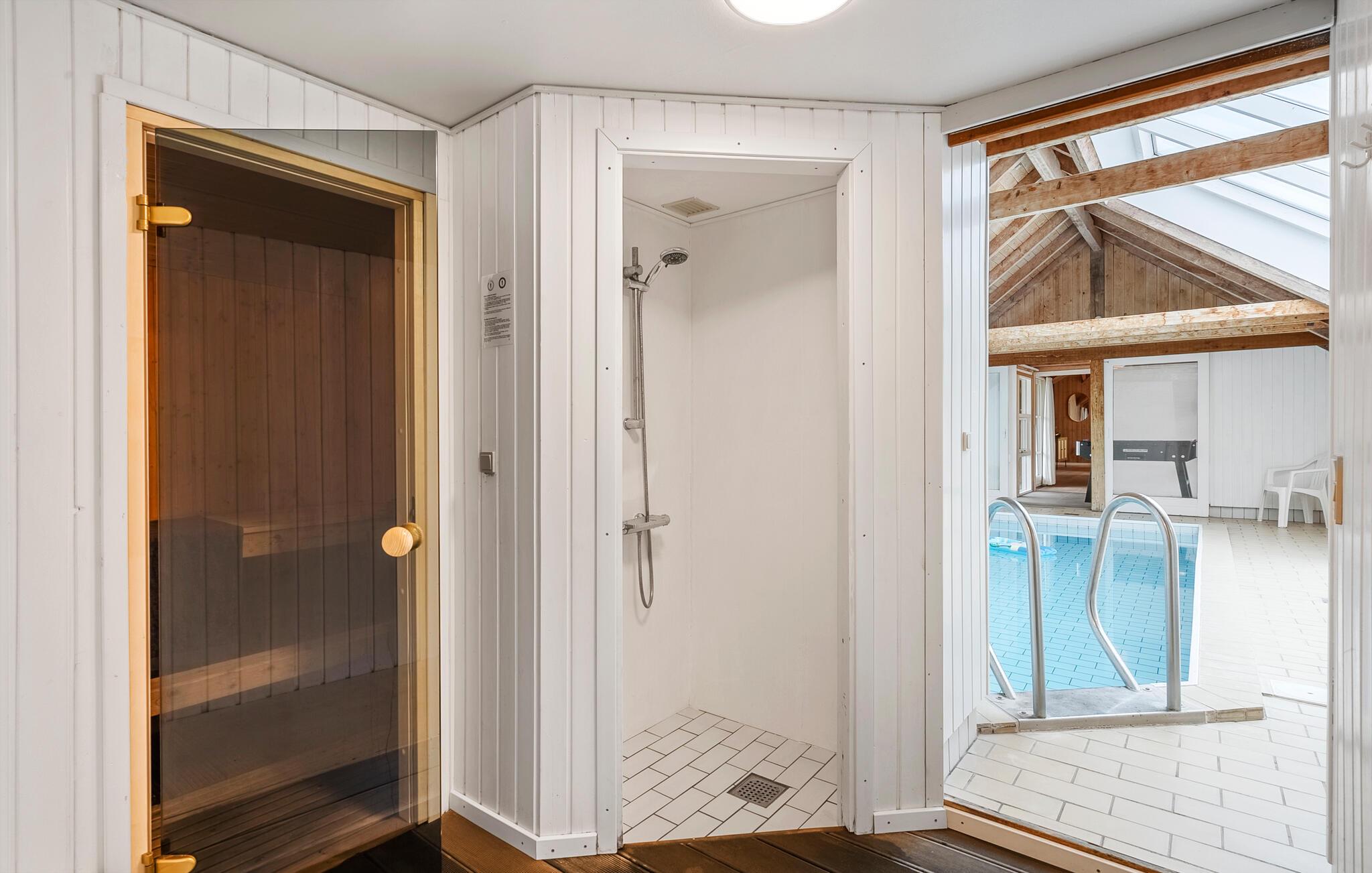 Geniet van een ruim houten vakantiehuis met zwembad en sauna aan de Noordzee, perfect voor meerdere gezinnen.