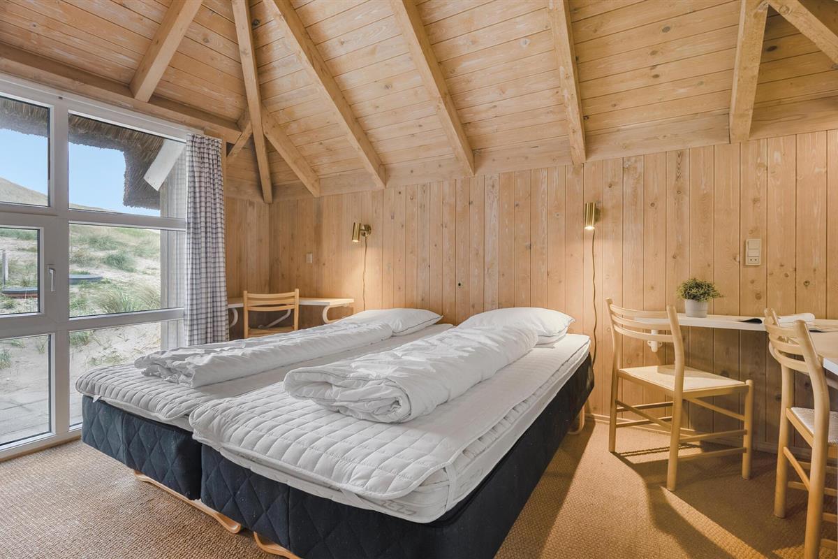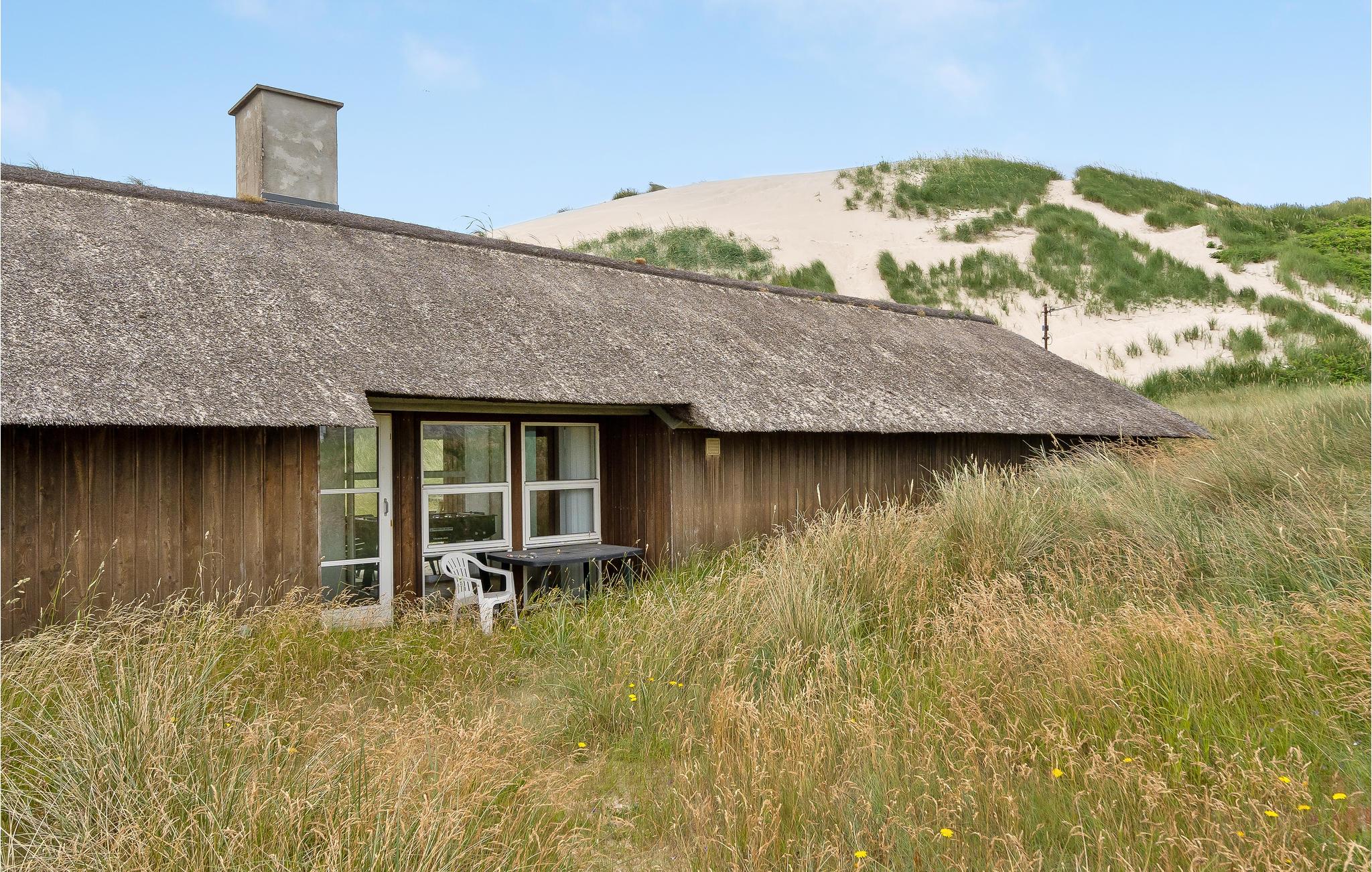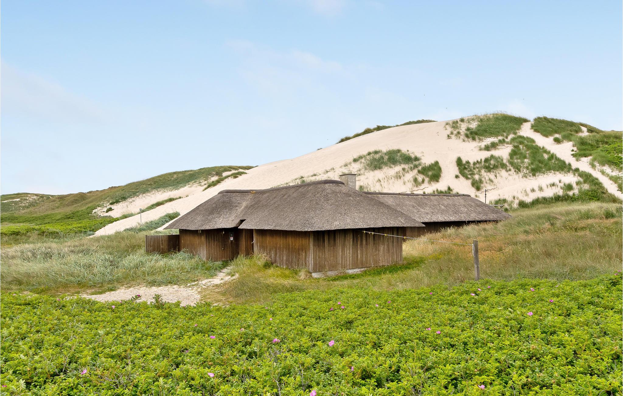 Dit grote houten huis met rieten dak ligt in de laatste duinketen aan de Noordzee. Het is verdeeld in twee delen, elk met twee slaapkamers en een eigen badkamer, en een slaapzolder met nog twee slaapplaatsen. Het is rustiek ingericht met zichtbare balken en stenen vloeren. Het huis heeft verschillende terrassen. Er is een grote manege op slechts ongeveer 500 m afstand. Na een mooie dag in de frisse Noordzeelucht kan het hele gezin ontspannen in het zwembad of de sauna. Een IP-telefoon voor binnenlandse gesprekken is beschikbaar. Dit grote luxe huis biedt ruimte en comfort voor meerdere gezinnen. Om elektriciteit te besparen is het huis uitgerust met een warmtepomp. Draadloze telefoon en Wi-Fi.