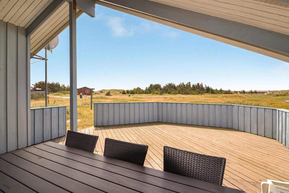 Verzorgd en gezellig vakantiehuis op een natuurgrondstuk. Het is licht en vriendelijk ingericht en heeft een woonkamer als ontmoetingsplaats voor gezellige uurtjes. Vanaf het gedeeltelijk overdekte zuidterras heeft u uitzicht op de manege en de duinen, vanaf het oostterras ziet u de fjord. Het prachtige strand en het natuurbeschermde duingebied kunnen te voet of met de fiets worden verkend, en de dag in de frisse Noordzeelucht is een prima afsluiting in de whirlpool of sauna.