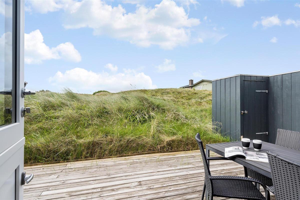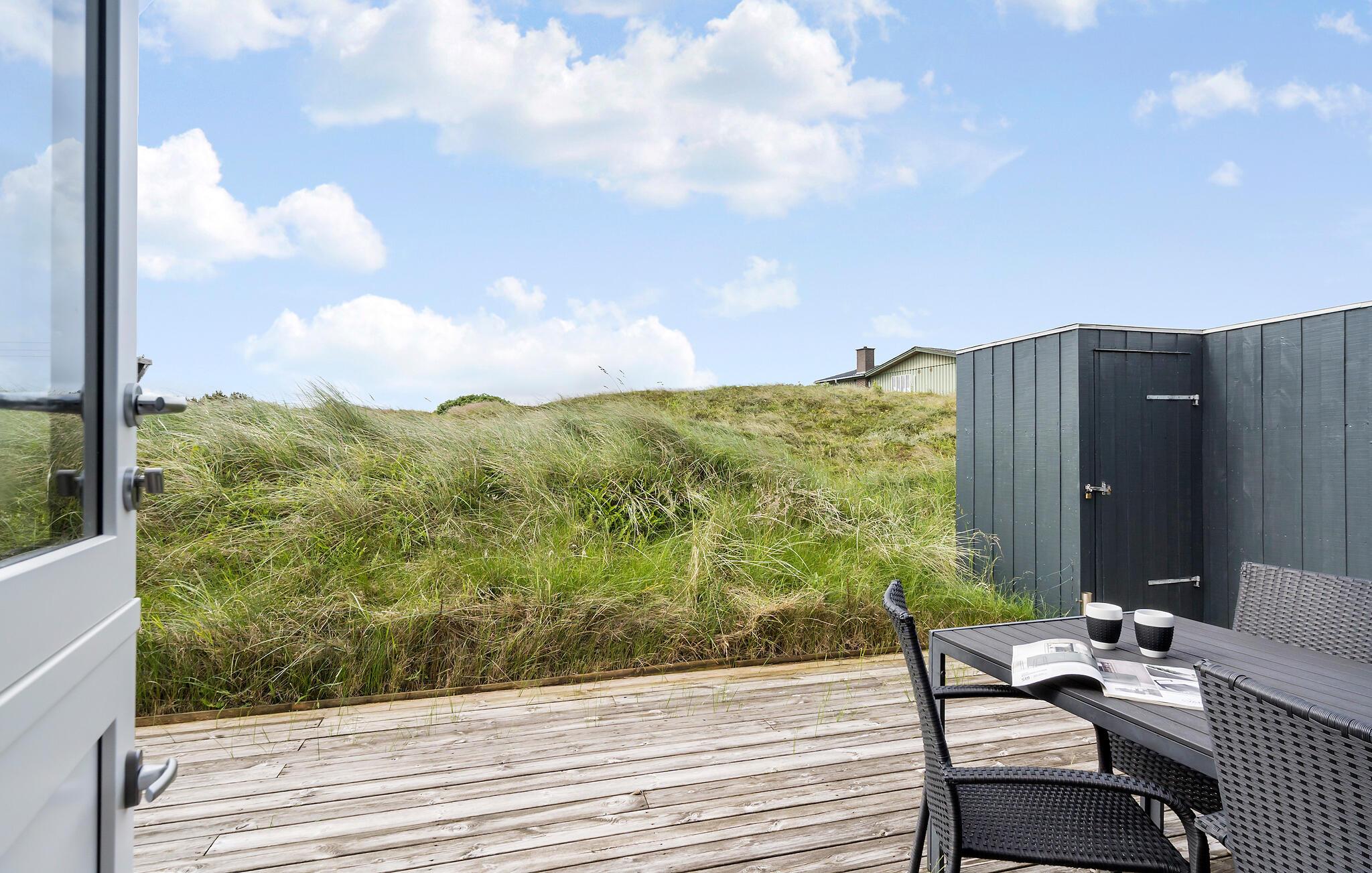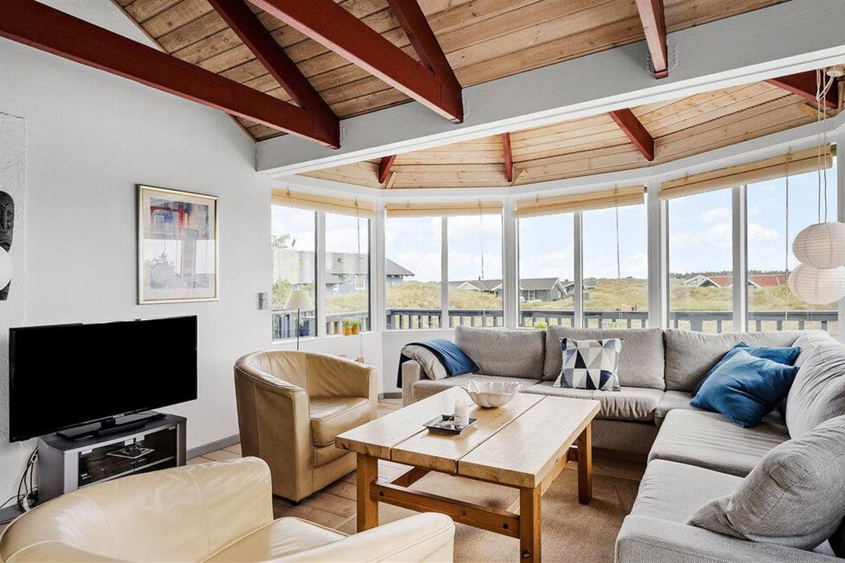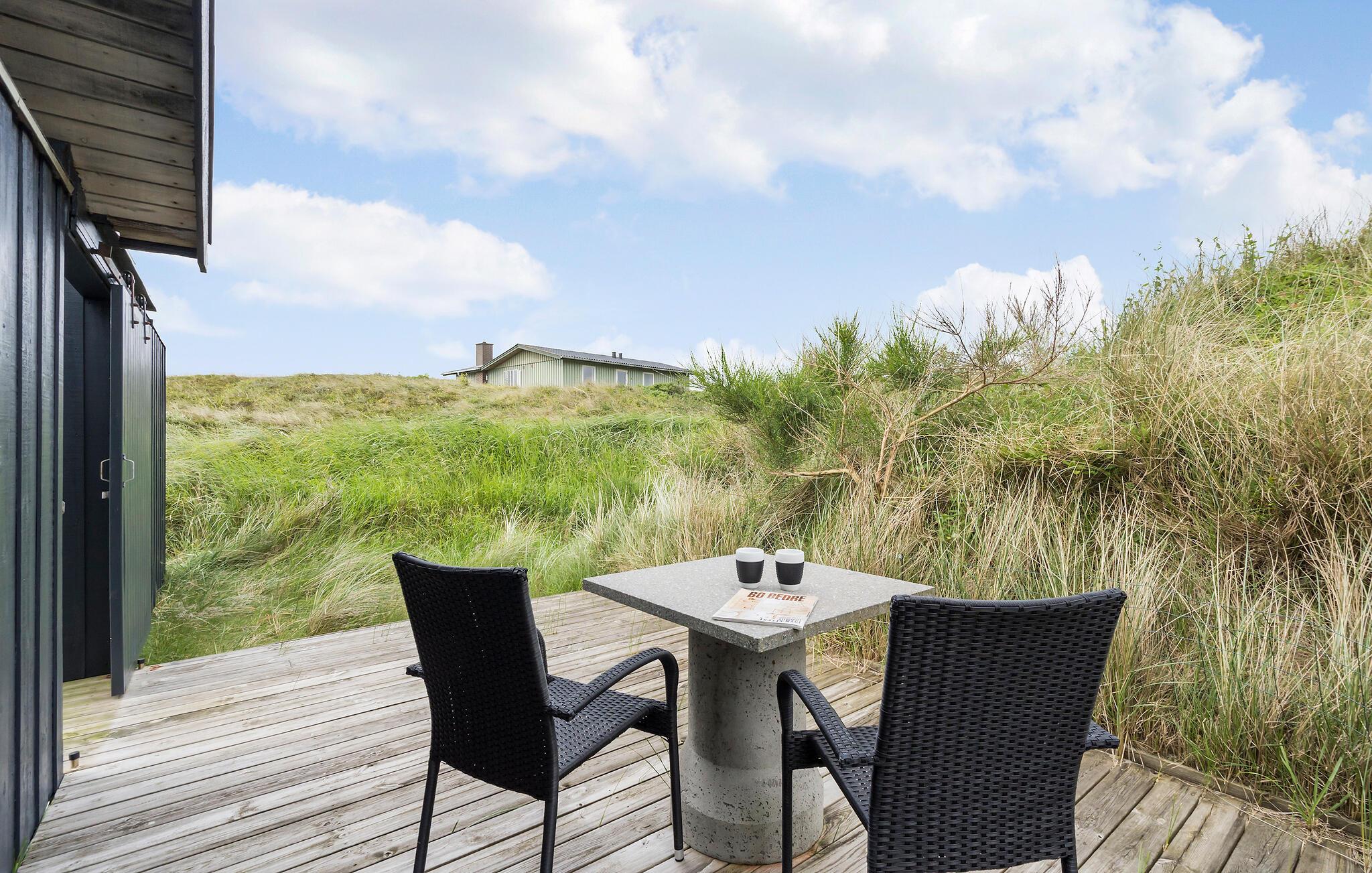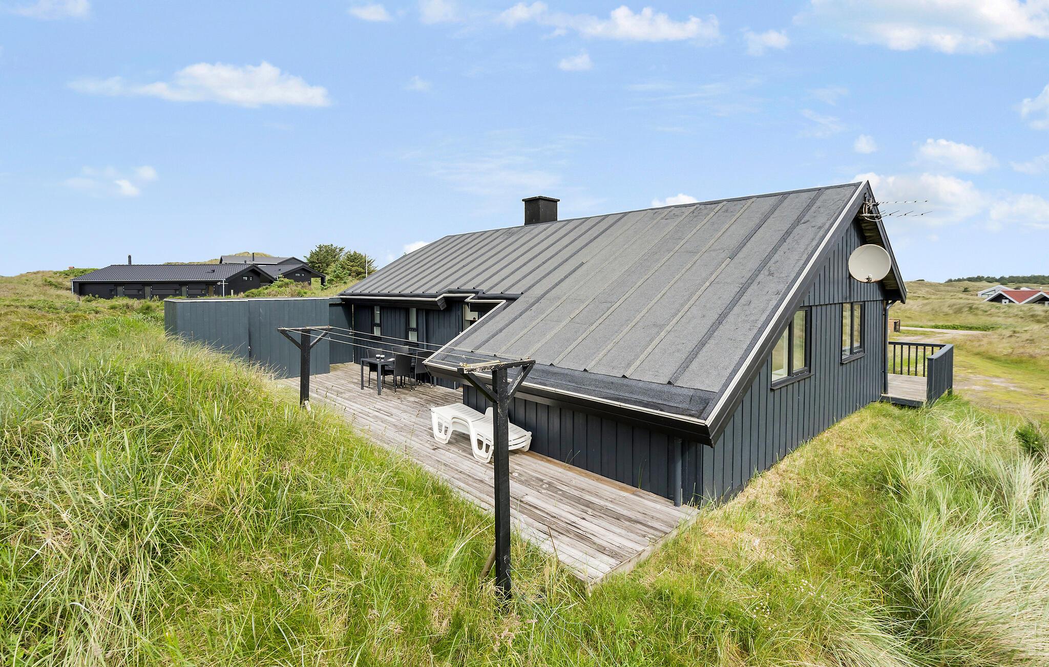 Dit gezellige en persoonlijk ingerichte vakantiehuis ligt op een groot heuvelachtig duingrondstuk, niet ver van de golven van de Noordzee, de hoge duinen en het bijna eindeloze witte zandstrand.