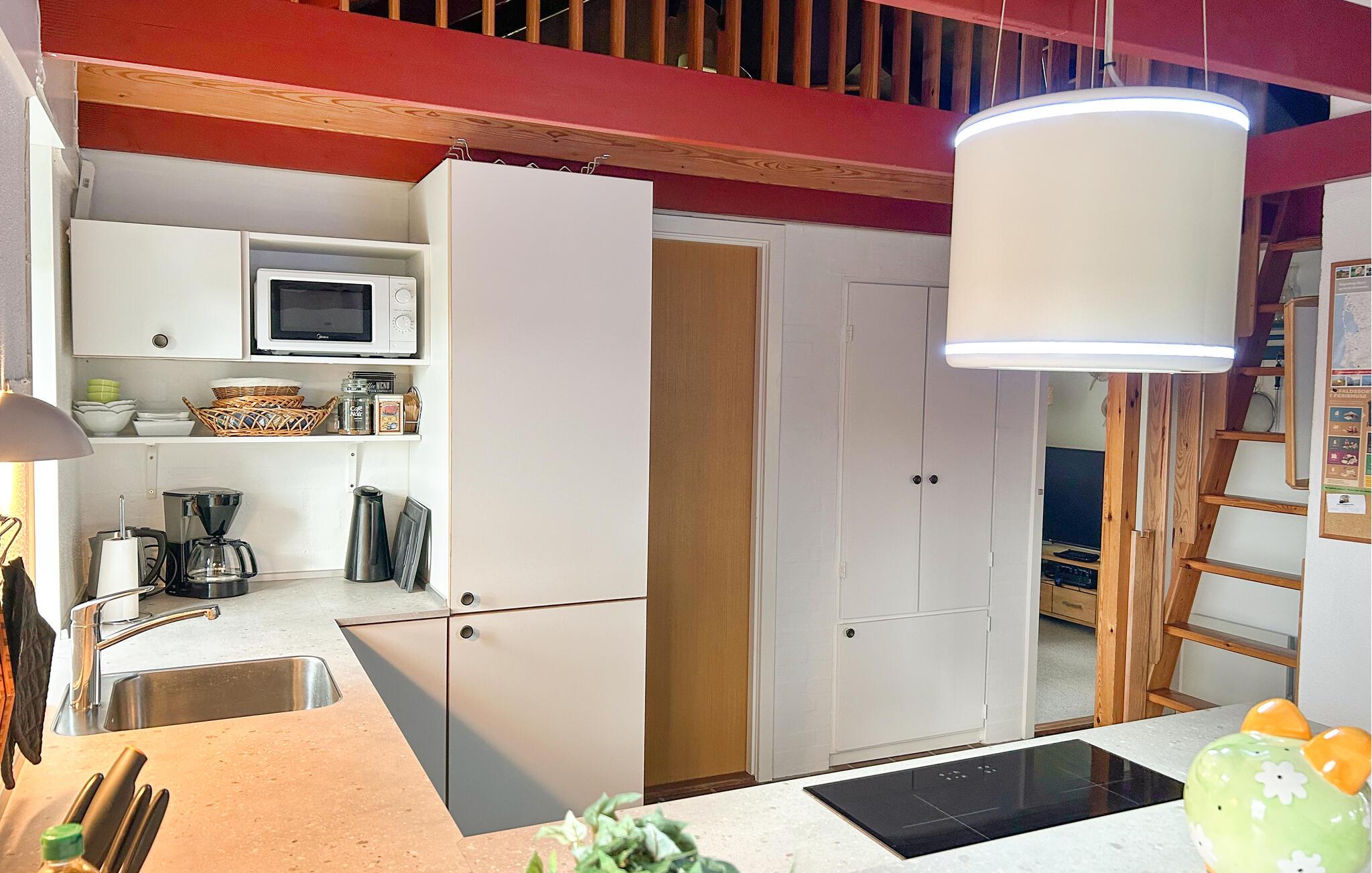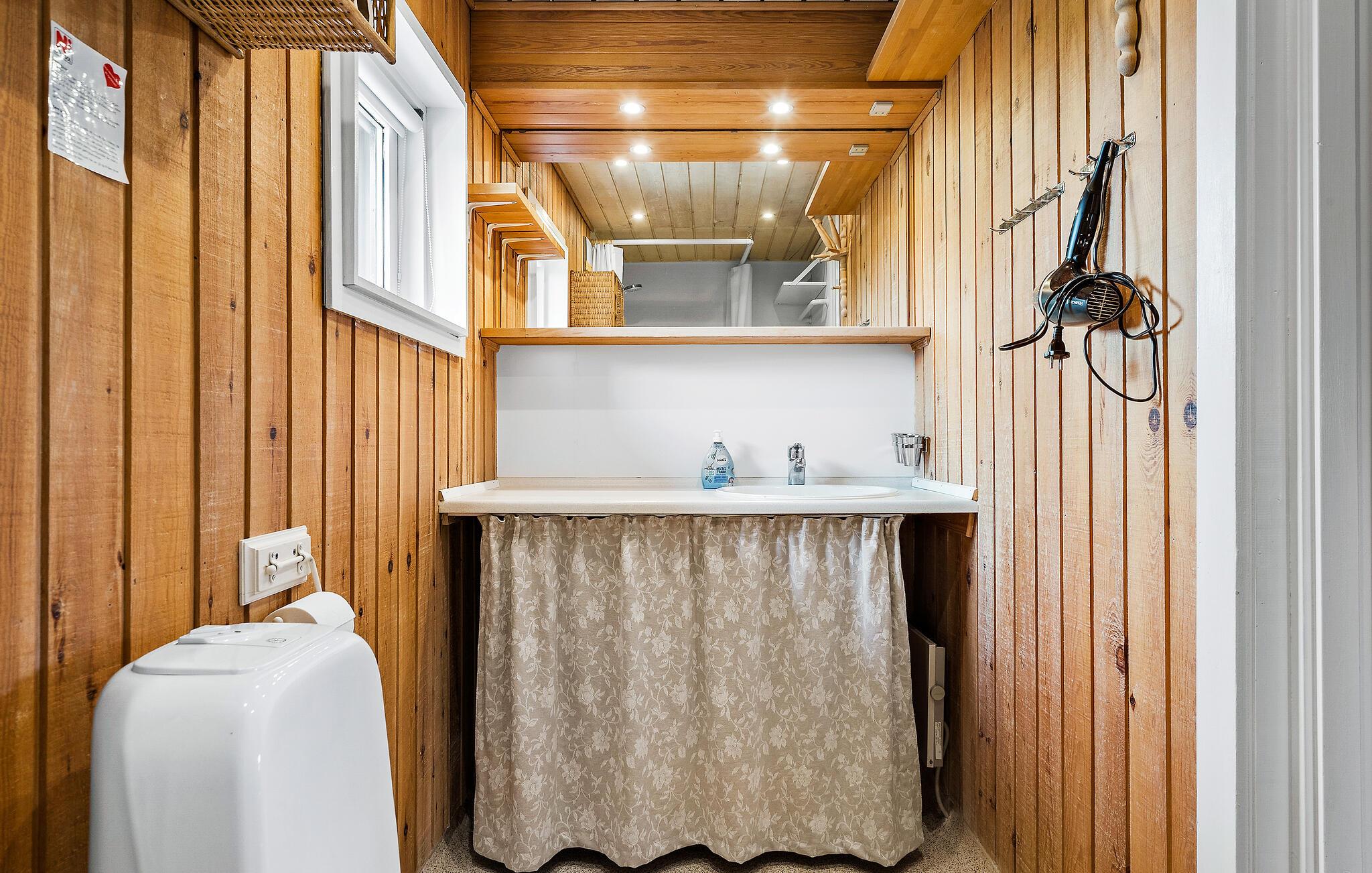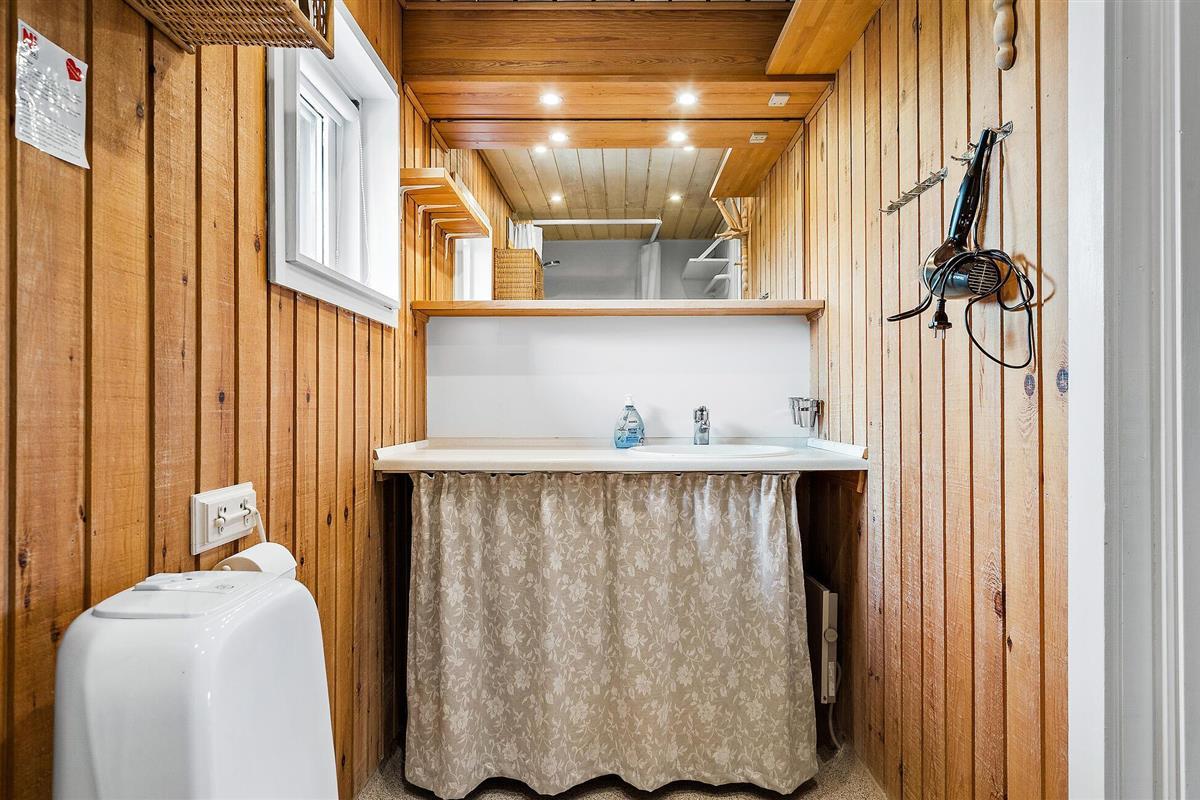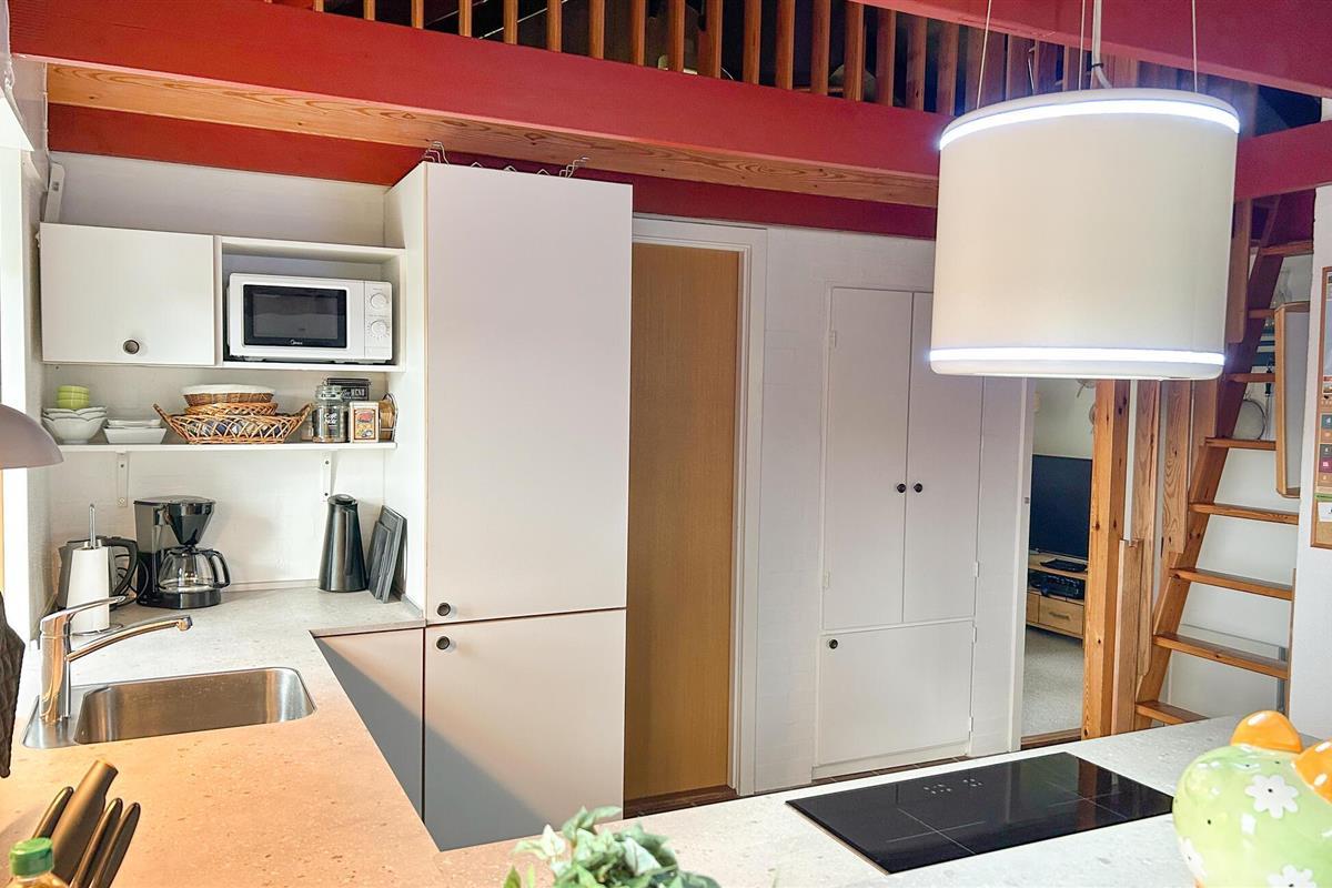 Vanuit de keuken is er directe toegang tot een prachtig terras op het zuiden, waar u kunt zonnen, uw dutjes kunt doen of gewoon naar de wolkenformaties kunt kijken. Omdat het huis op een hellend perceel is gebouwd, heeft u vanuit de lichte woonkamer en vanaf de veranda aan de noordkant van het huis een goed uitzicht op de omgeving. Er is een klein terras op het westen, zodat u de hele dag kunt genieten van de zon rond het huis, en er is altijd de mogelijkheid om een plekje te vinden. Sluit uw avonden af met vers gegrild eten en een glas wijn, terwijl uw kinderen zich nog vermaken in de zandbak. De woonkamer van dit huis maakt vooral indruk door zijn ruimtelijkheid, comfort en huiselijke sfeer. Hier vindt u persoonlijke decoraties, rustieke en gezellige meubels, evenals een open haard die zorgt voor een aangenaam achtergrondgeluid.