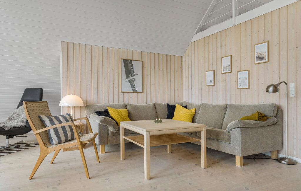 Het huis is licht en vriendelijk ingericht en heeft een schuin plafond. De woonkamer, die gecombineerd is met de keuken, biedt veel ruimte voor alle gasten. Het huis is goed uitgerust met onder andere een soundbar waarmee u uw eigen apparaten via Bluetooth kunt aansluiten. Er is een grote panoramische glazen ruimte op het westen, zodat u vanaf de gezellige bankhoek kunt genieten van de zonsondergang.