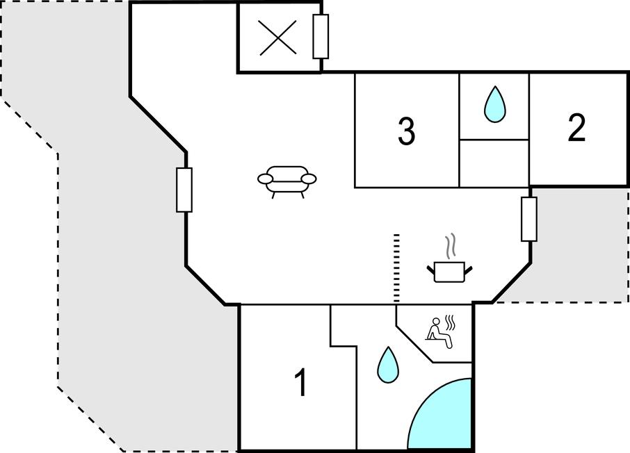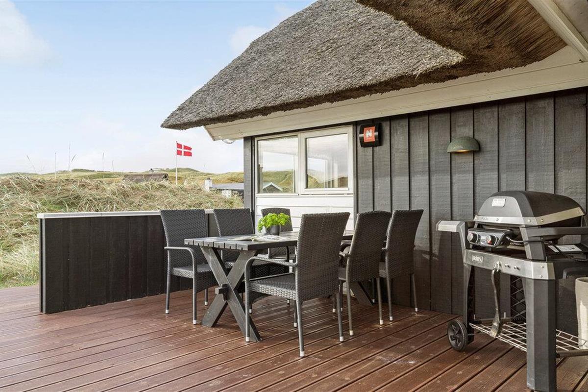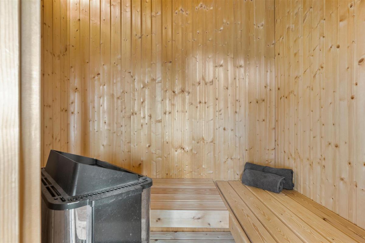 Vanuit de woonkamer heeft u direct toegang tot het grote, op het westen gelegen en gedeeltelijk overdekte terras. Het terras loopt bijna rondom het huis, zowel naar het westen als naar het zuiden en oosten, zodat het altijd mogelijk is om een hoekje met zon en beschutting te vinden. In het wellnessgedeelte van het huis kunt u zich na een strandwandeling ontspannen in de sauna of in de whirlpool.