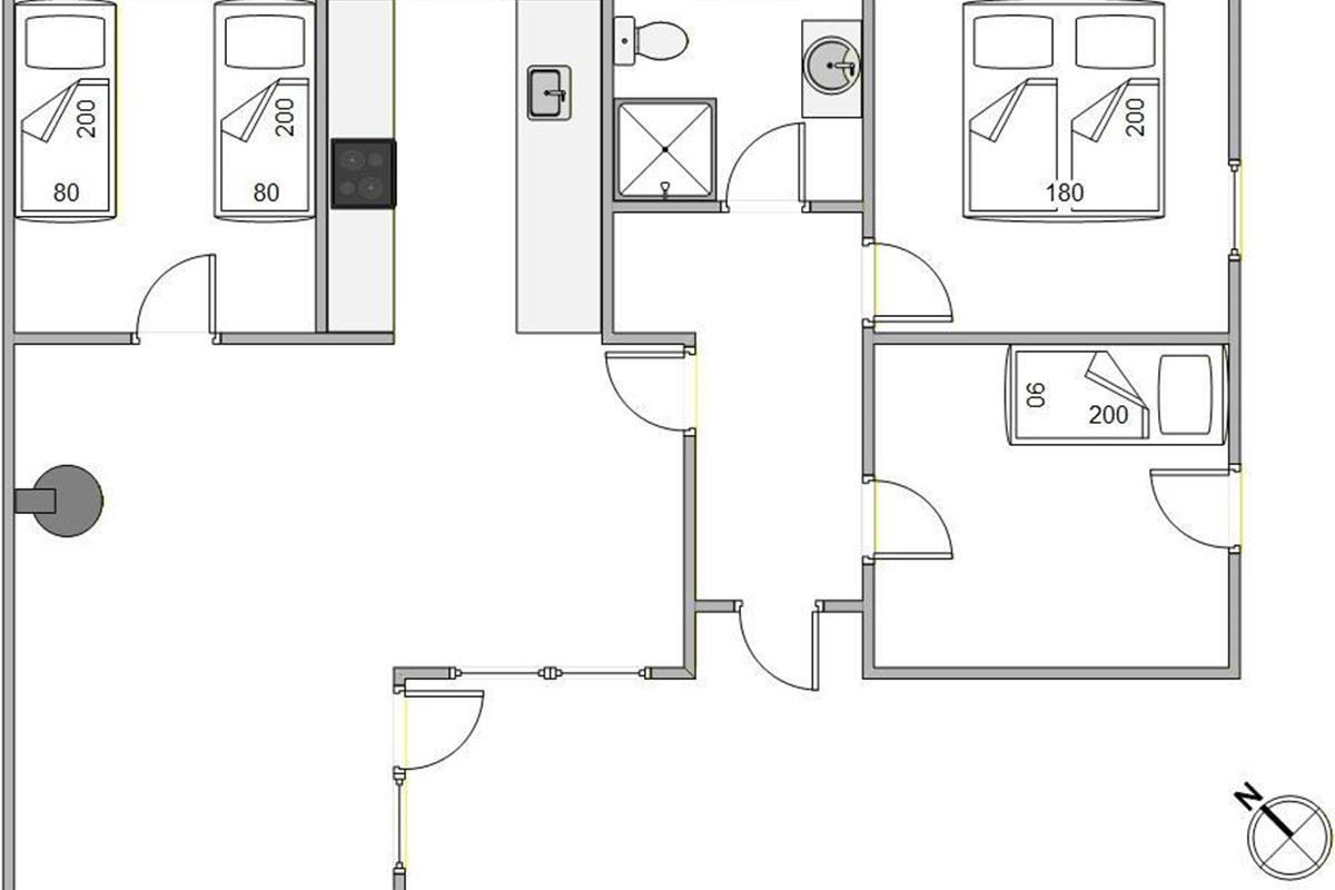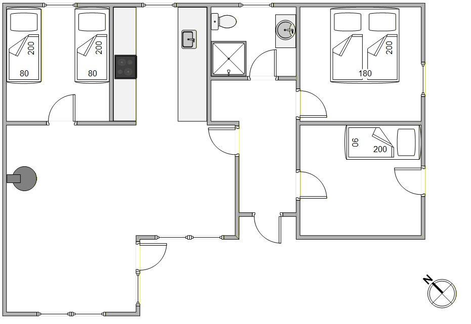 The holiday home at Skodbjergevej 6 is a charming retreat that combines practicality and comfort. With a spacious living area of 66 m², you’ll find 3 bedrooms: one with a double bed (140x200), one with 2 single beds (80x200), and the last with 1 single bed (80x200). There is also a roomy bathroom – naturally with underfloor heating.
